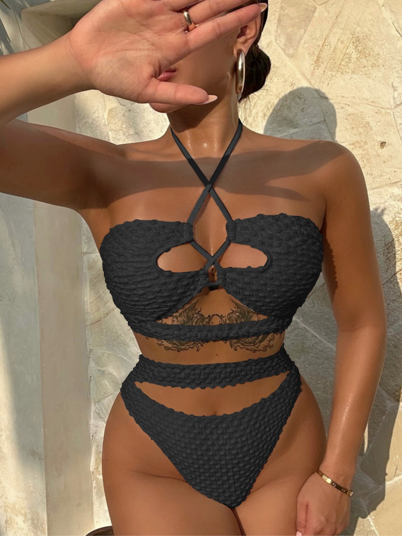 Luoguo Bikini Beige Sexy Swimsuit Women Split Drawstring Swimsuit