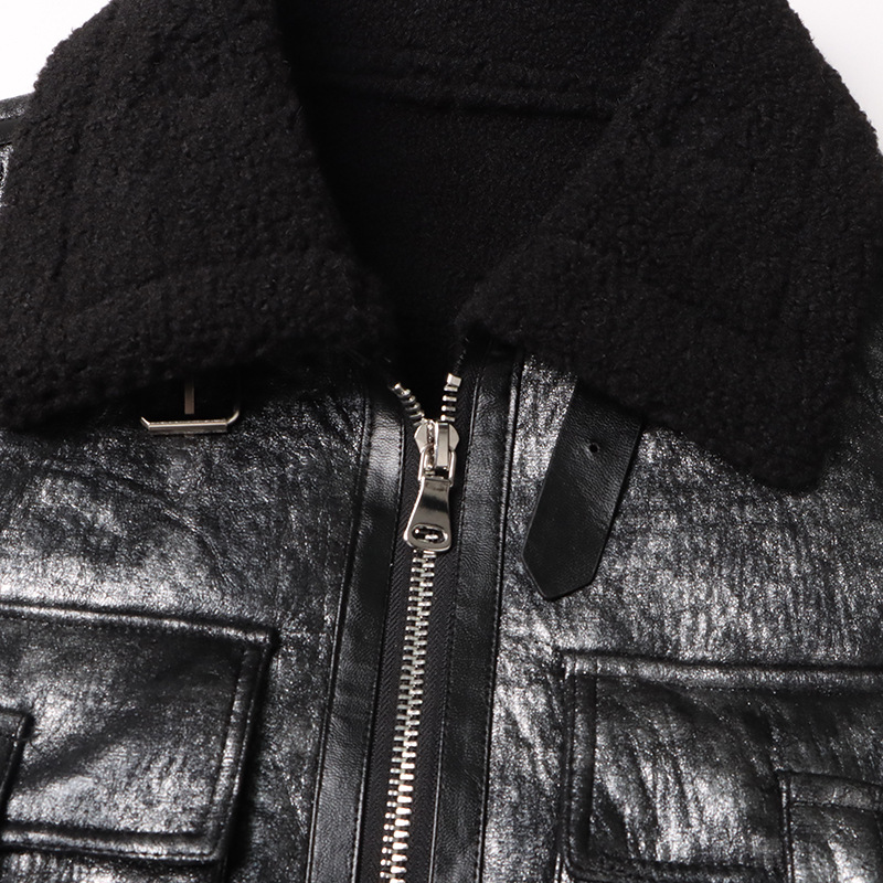 Maillard Faux Shearling Jacket Short Coat Autumn Retro Design Stitching Leather Coat