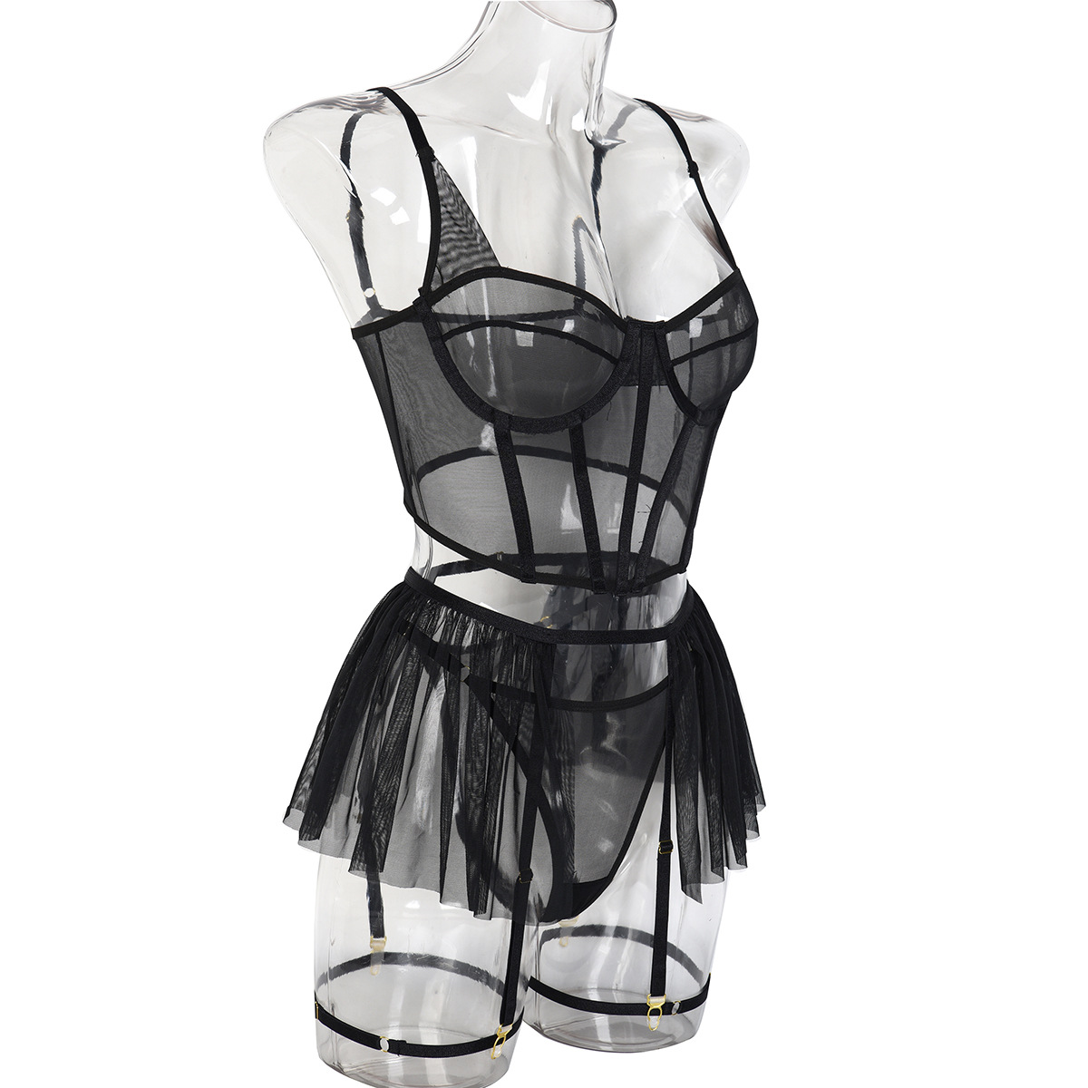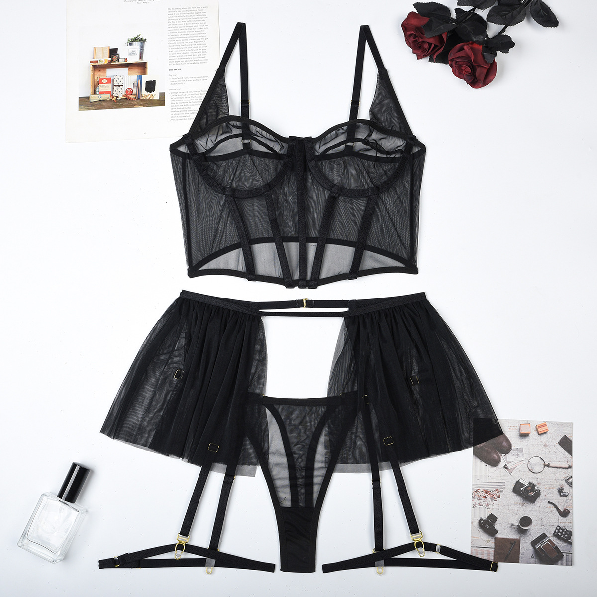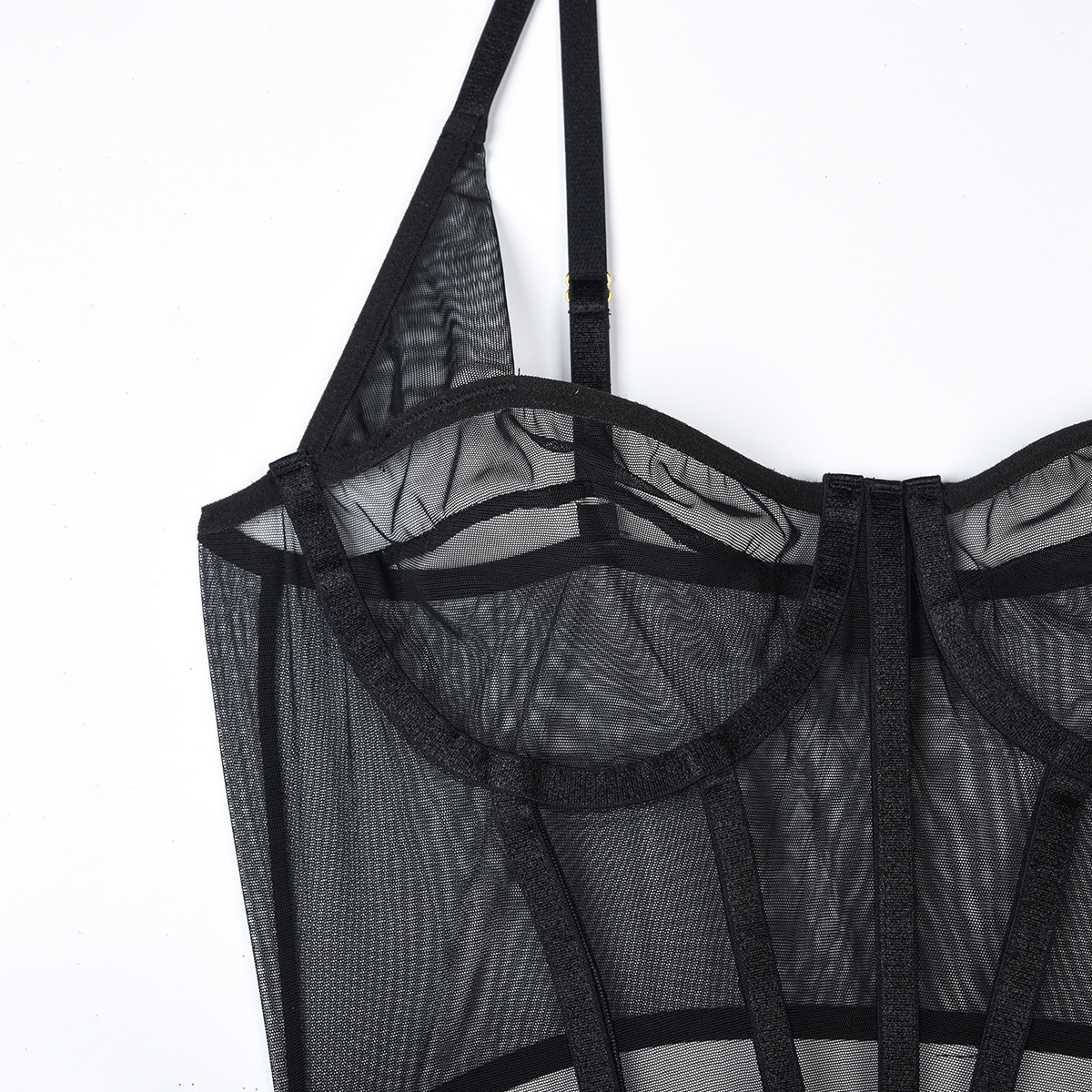Mesh Slimming See through Comfortable Sexy Suit Simple Three Piece Set Women