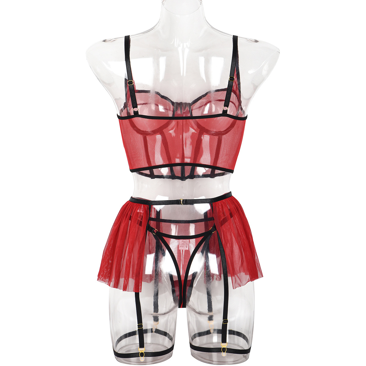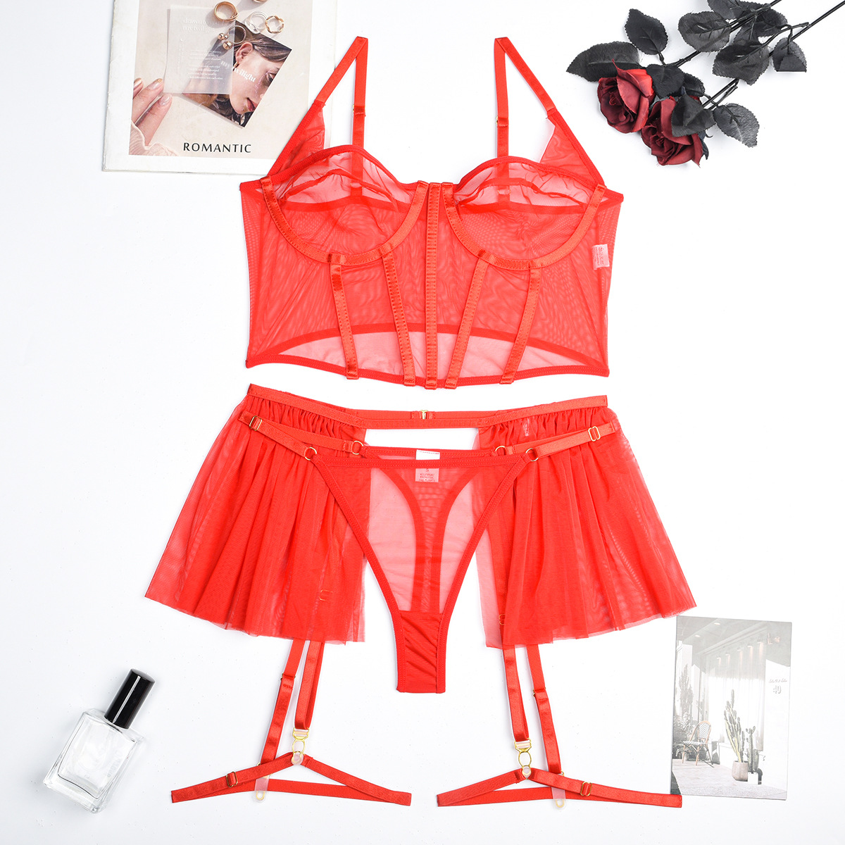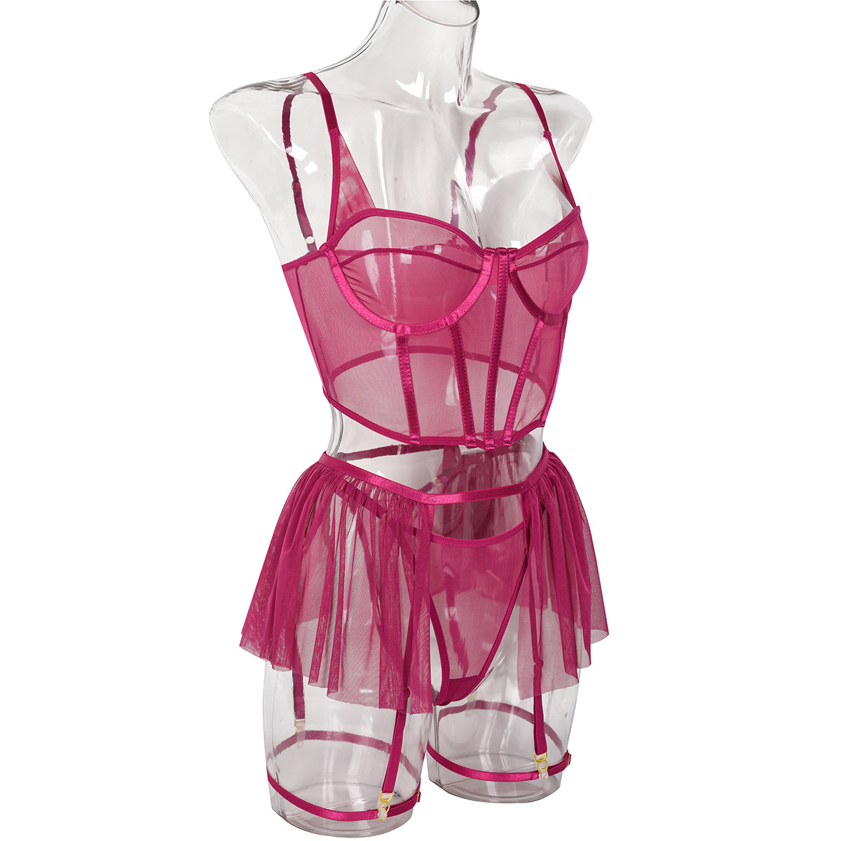 Mesh Slimming See through Comfortable Sexy Suit Simple Three Piece Set Women