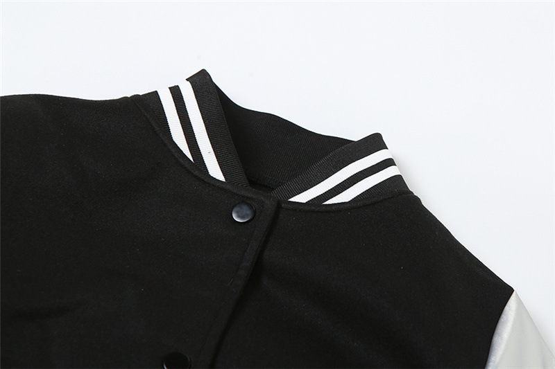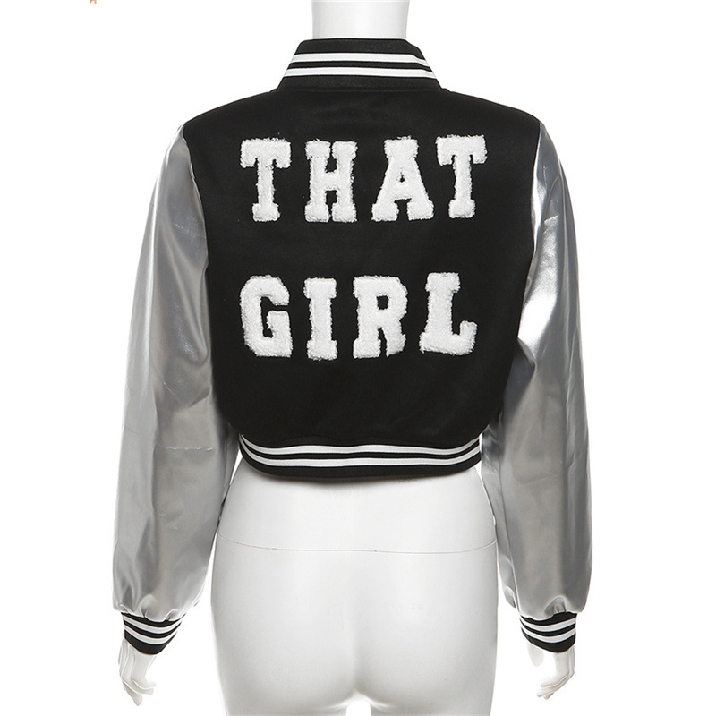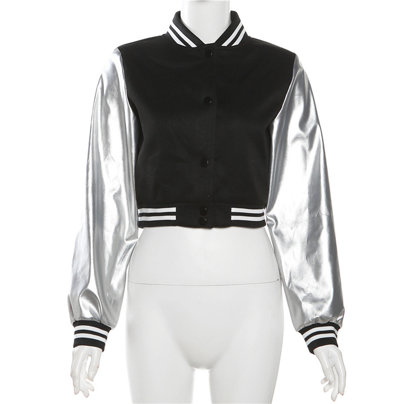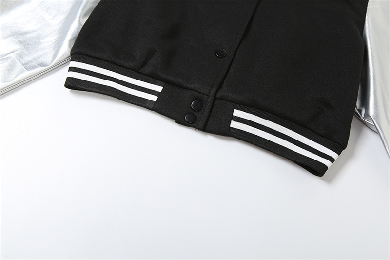 Metallic Coated Fabric Fall Women Clothing Embroidery Stitching Slim Jacket Varsity Jacket Jacket