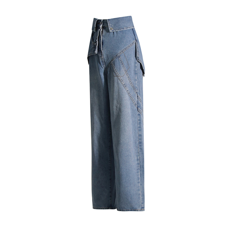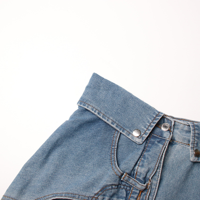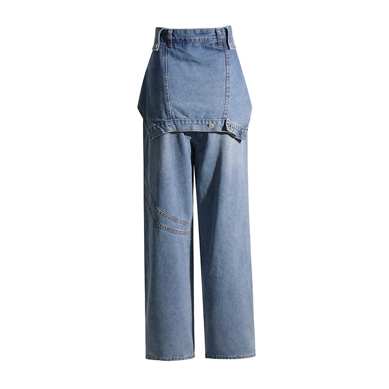 Niche Design Women Jeans Casual Cool Stitching Flanging Faux Skirt All Match Denim Trousers Women