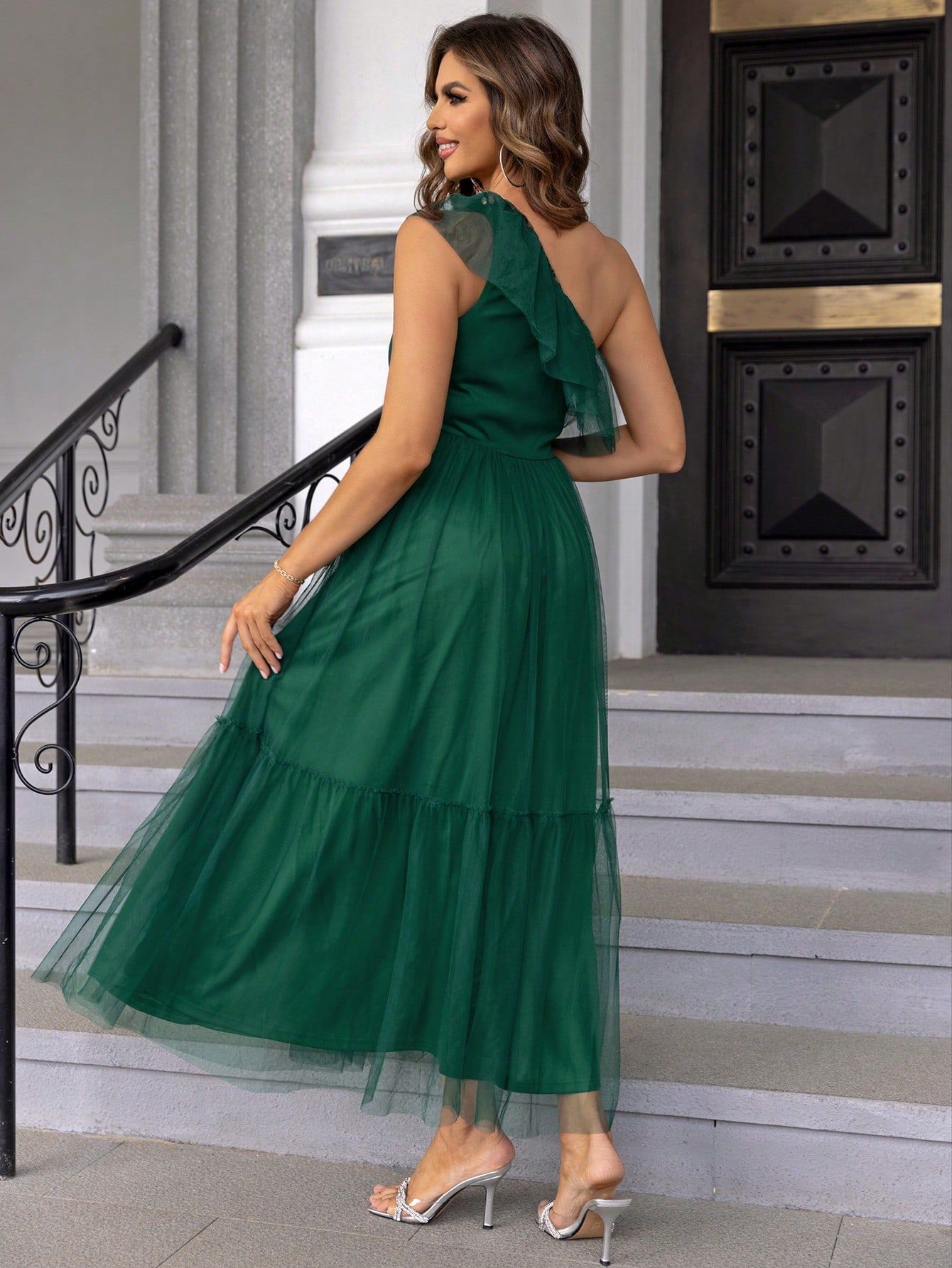 Off Shoulder Ruffled Ruffled Mesh Dress