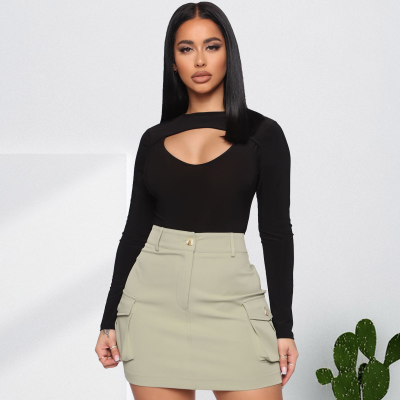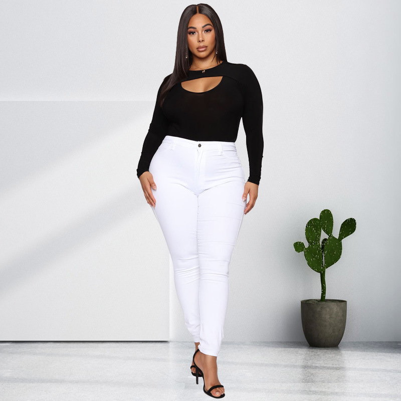 Plus Size Autumn Black Tight Sexy Hollow Out Cutout Jumpsuit Women Clothes