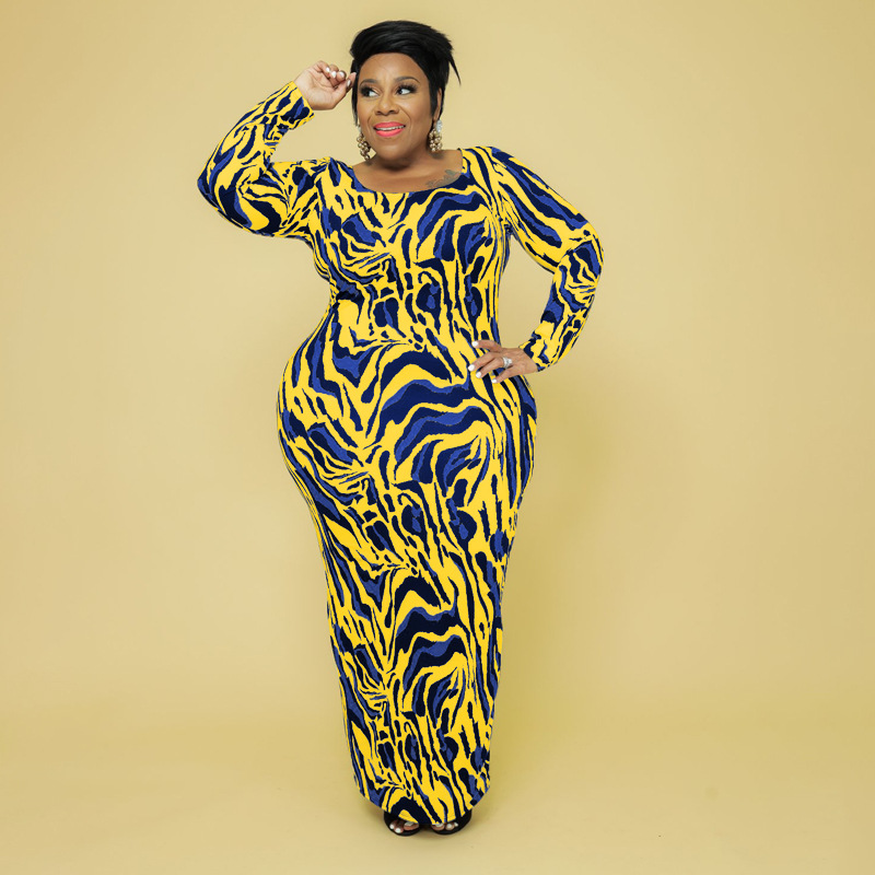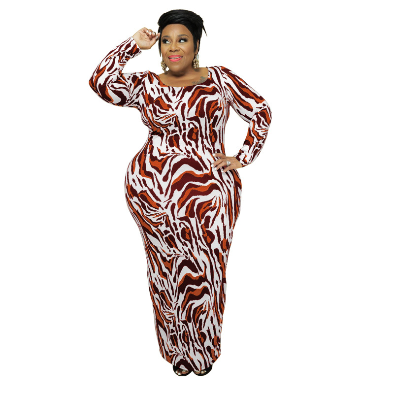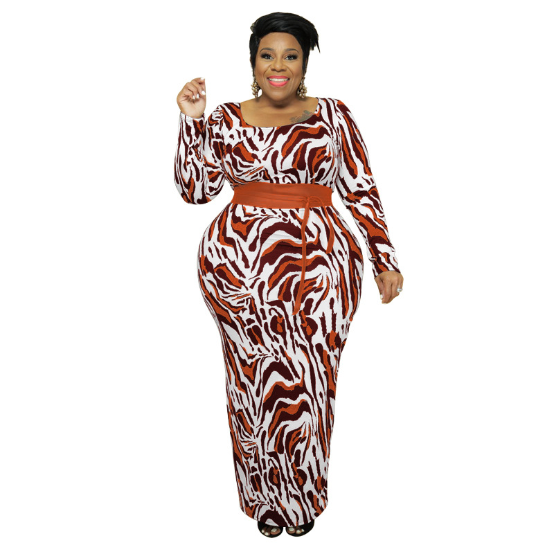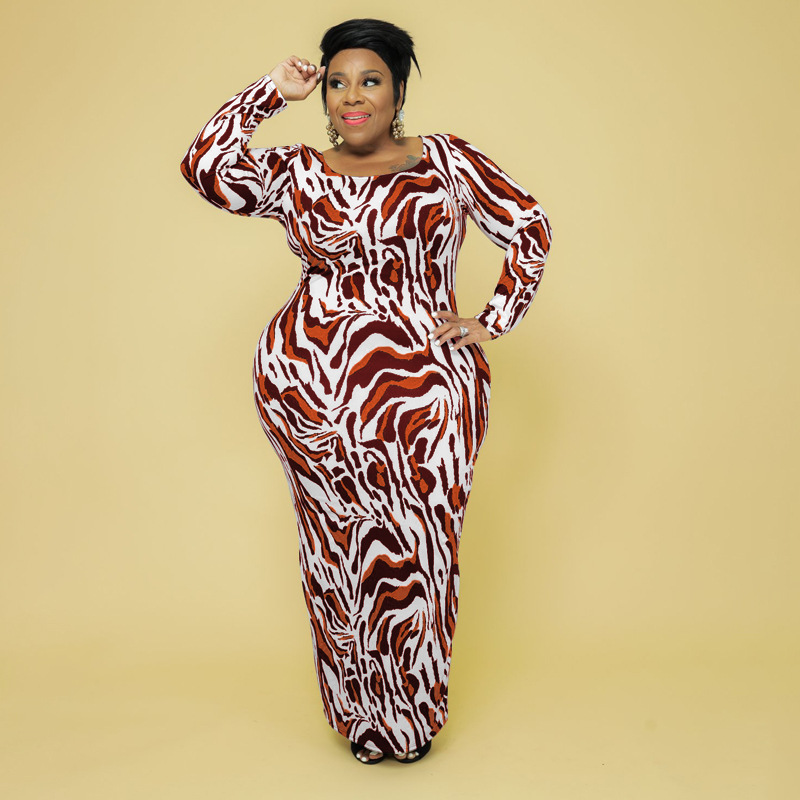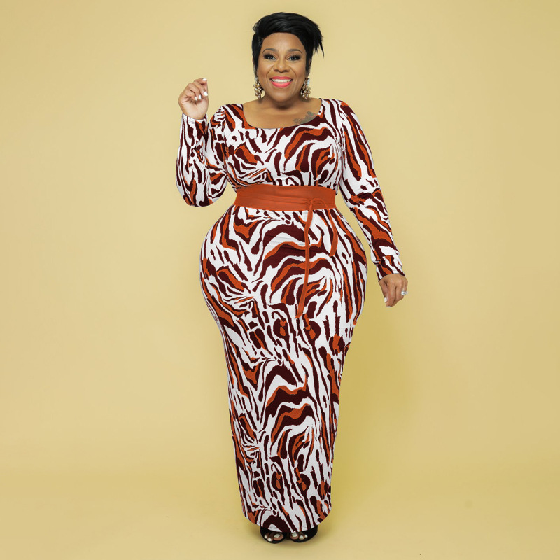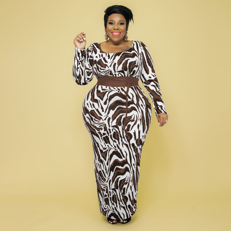 Plus Size Autumn Winter Leopard Print Slim Fit Women Dress