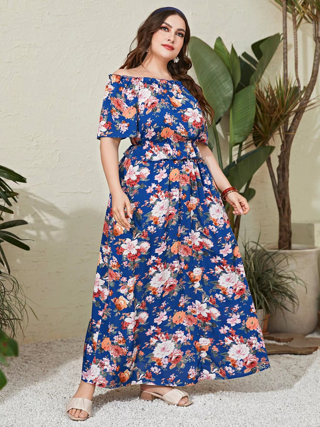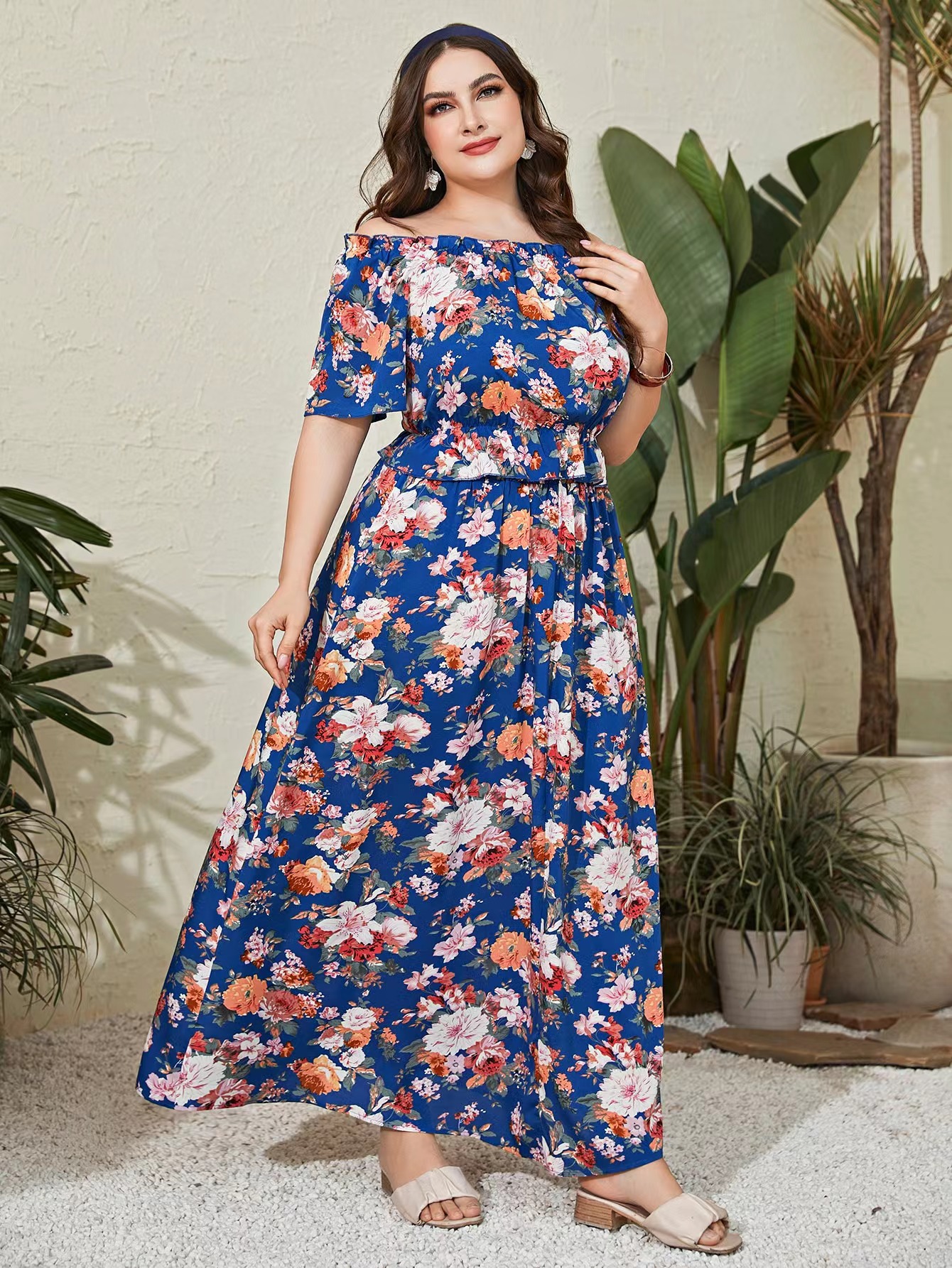 Plus Size Bohemian Elastic Waist Printing Suit Dress Women