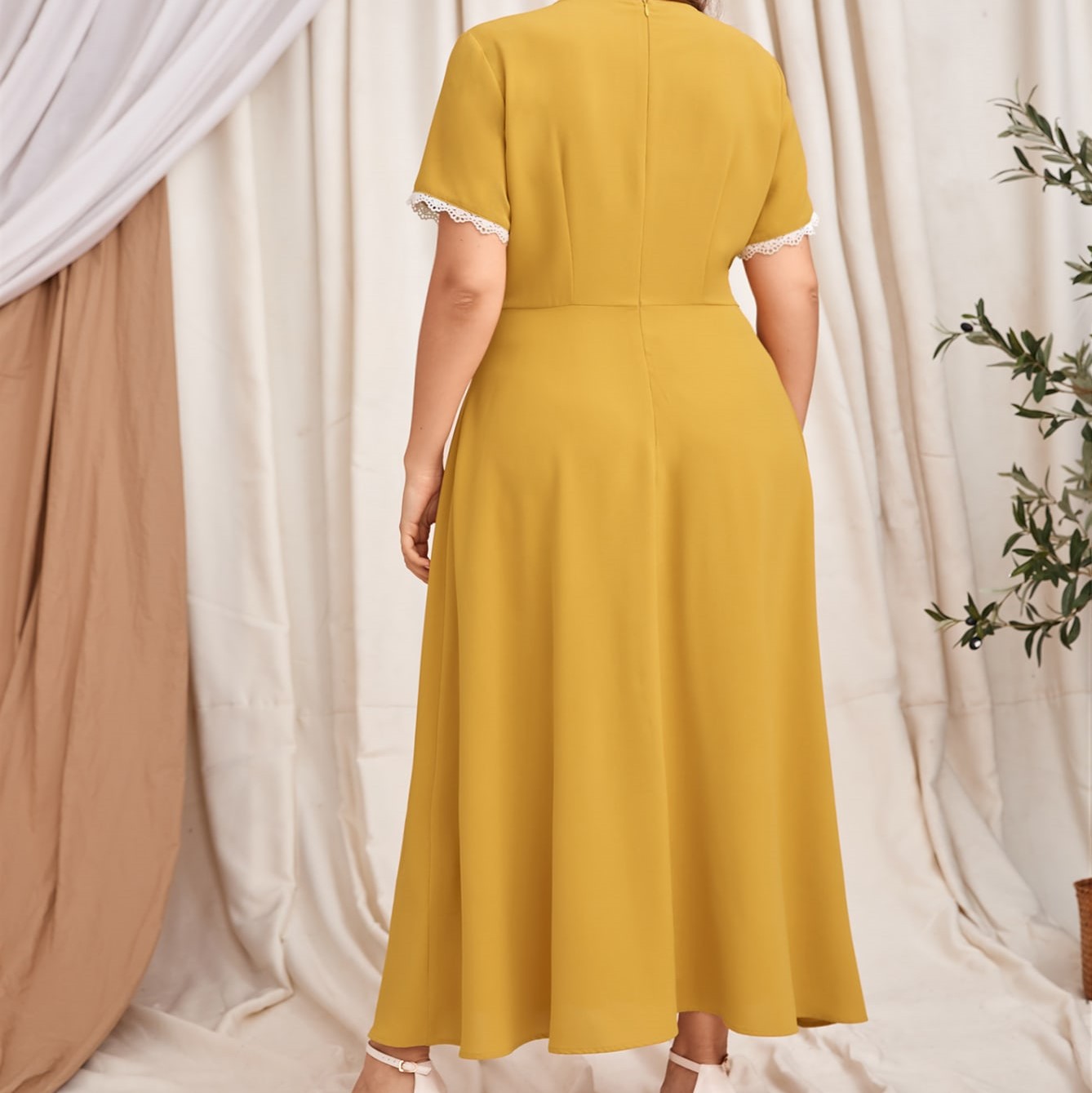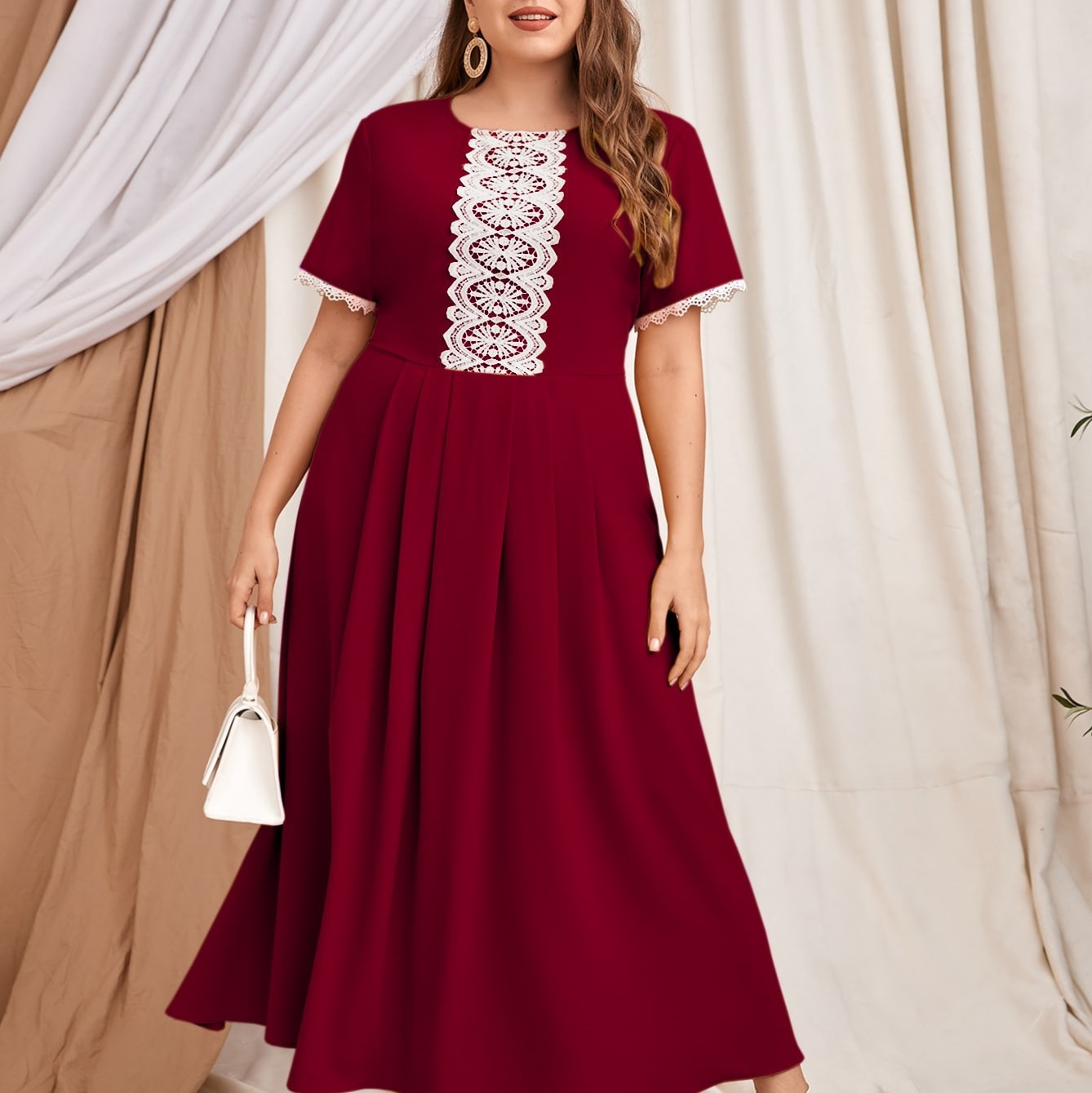 Plus Size Color Matching Women Dress Office Color Matching Women
