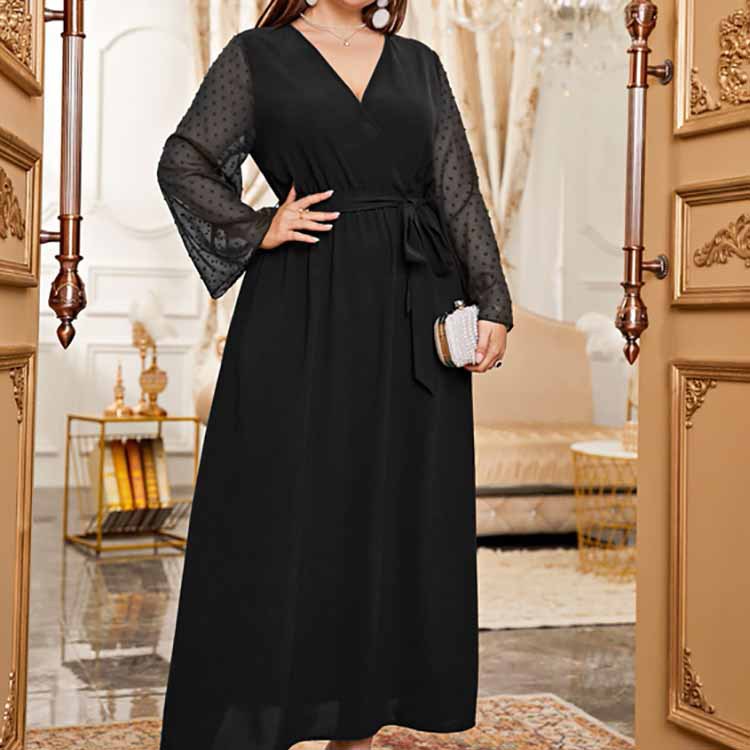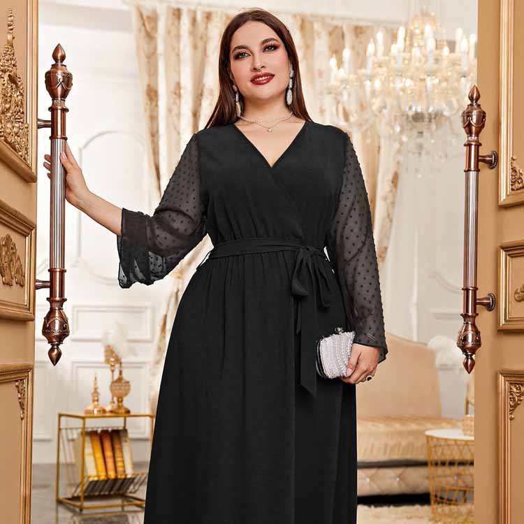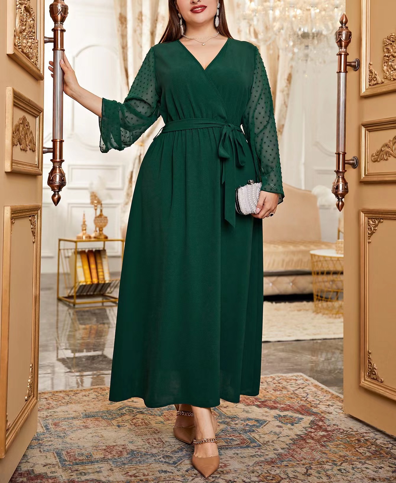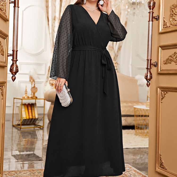 Plus Size High Waist Color Stitching Polka Dot Elastic Waist Printed Dress Women