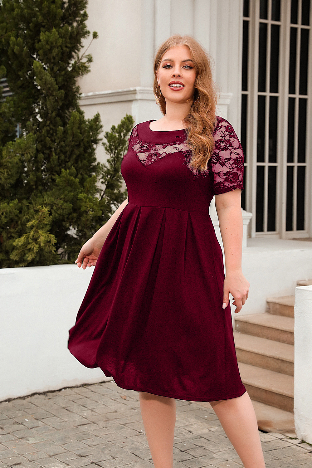 Plus Size Hollow Out Cutout Lace Casual Loose Dress Holiday Office Dress Women Clothing