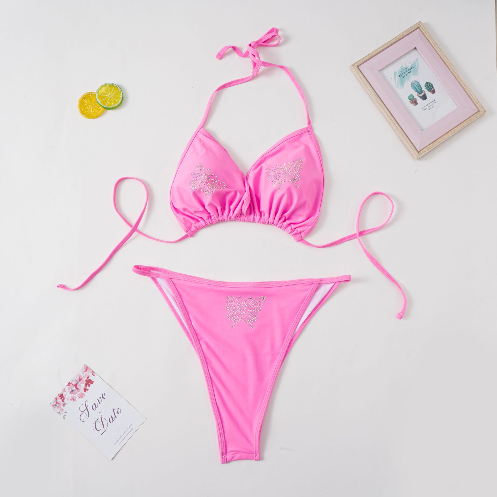 Plus Size Rhinestone Bandage Swimsuit Solid Color