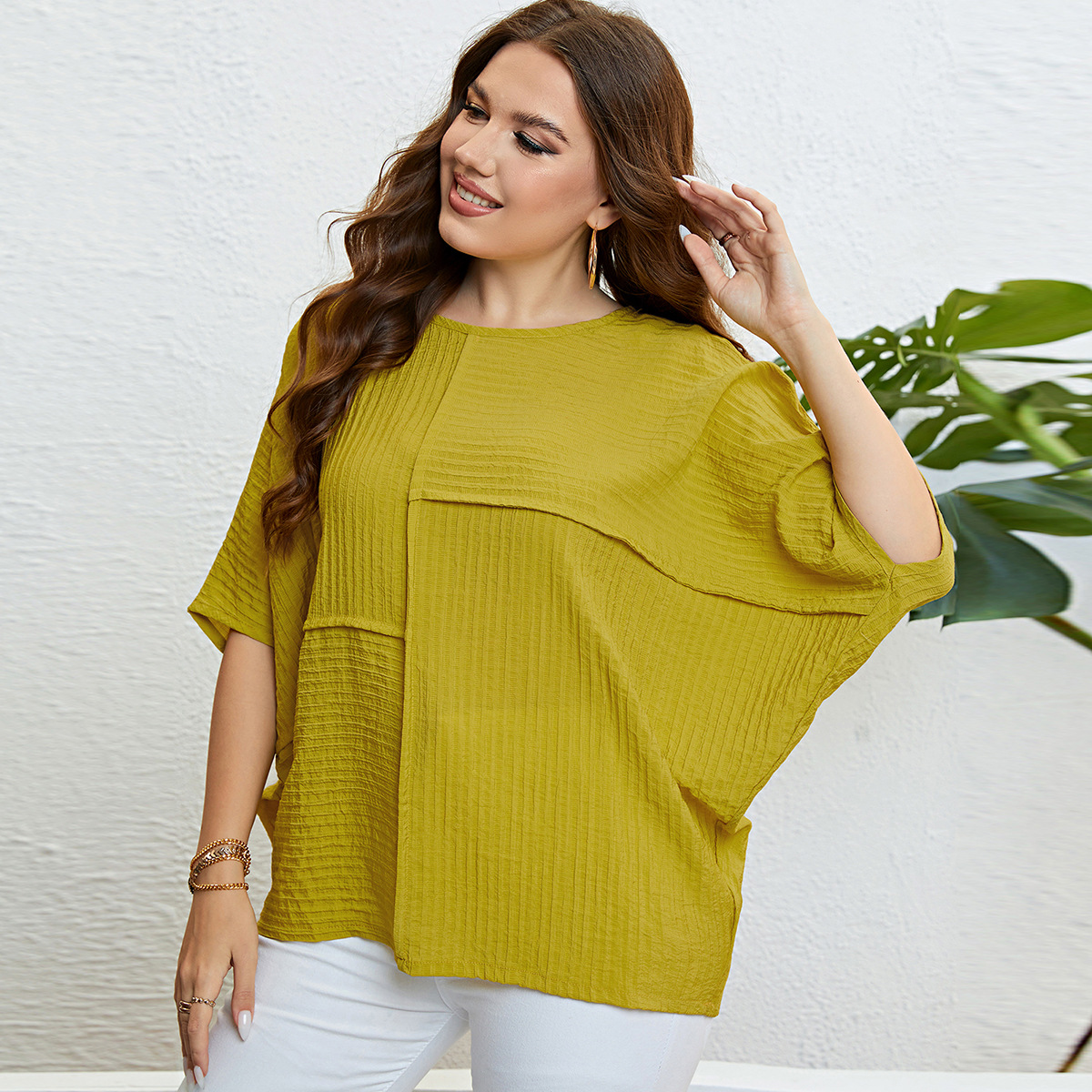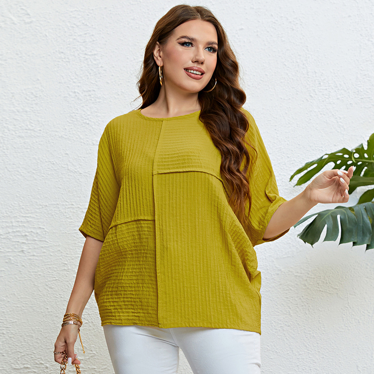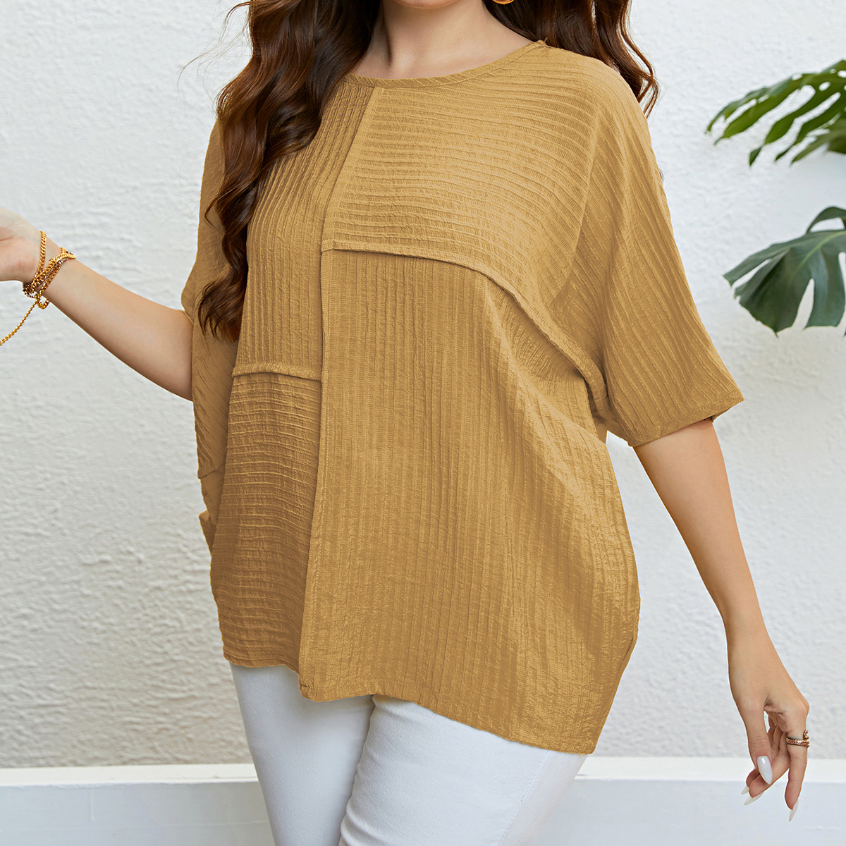 Plus Size Solid Color Top Patchwork Top Women Summer Women Clothing Top