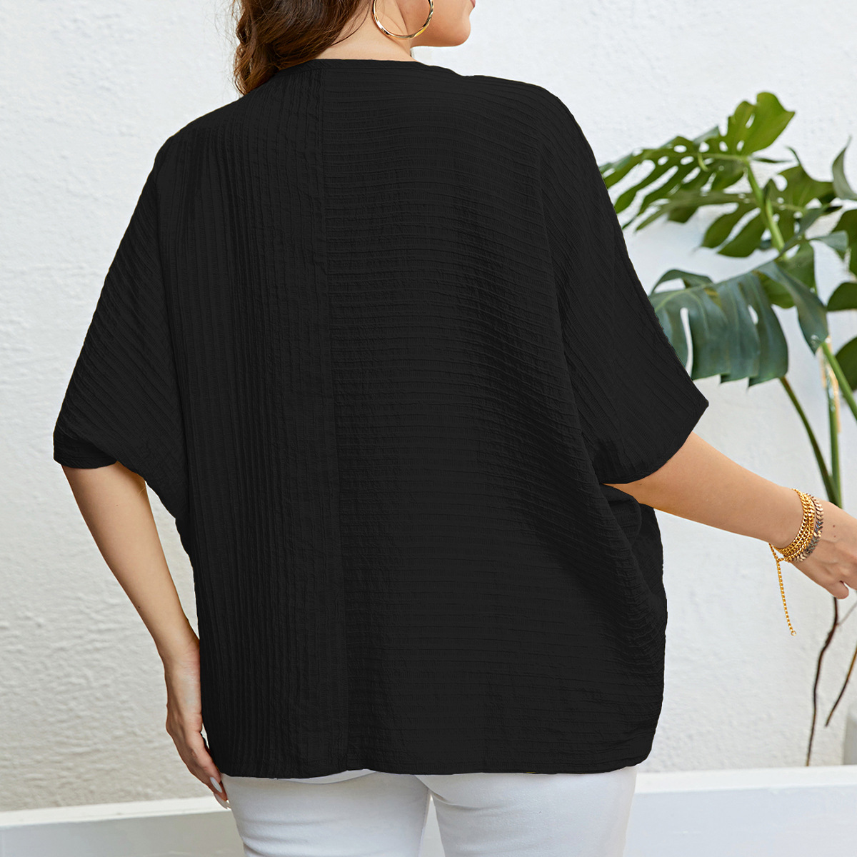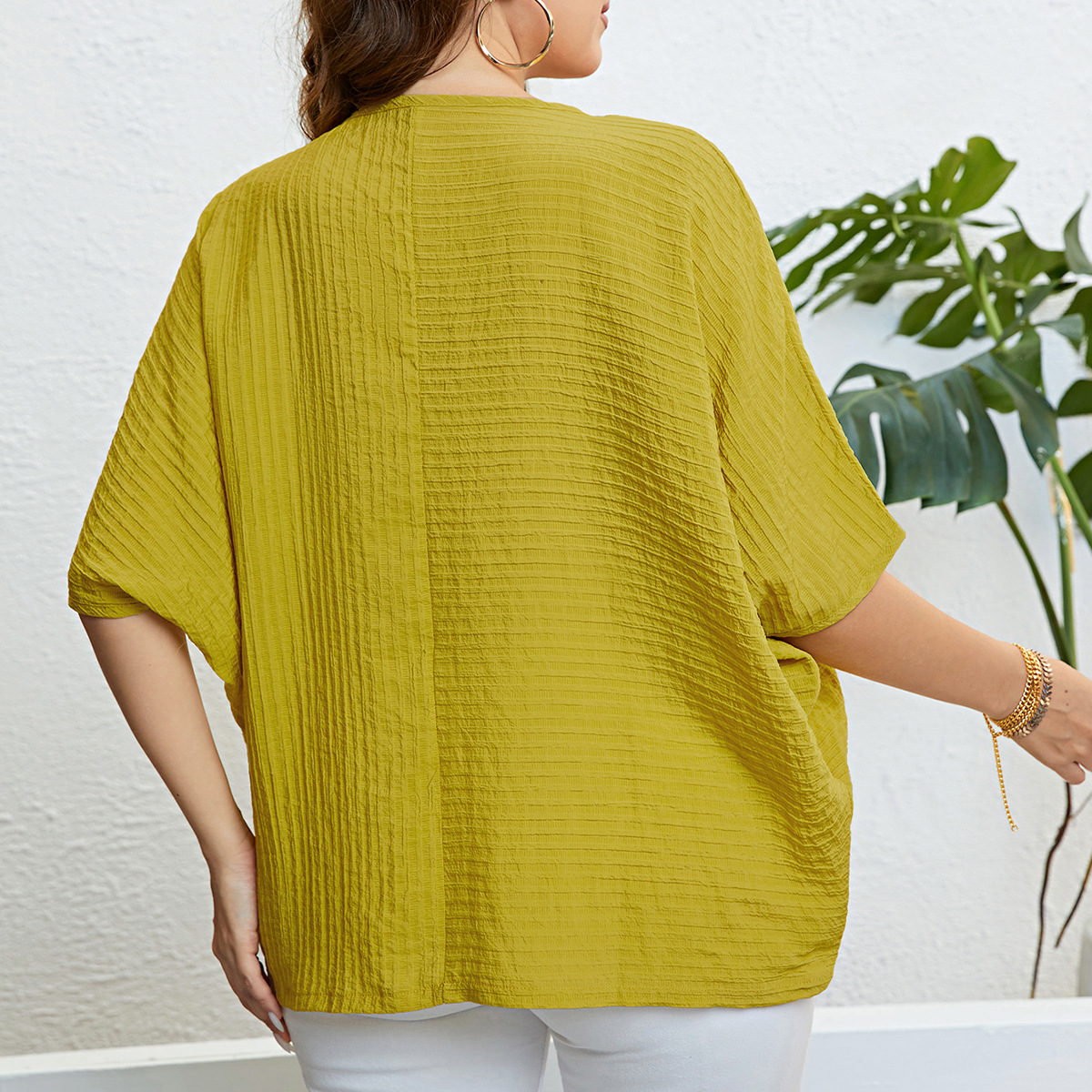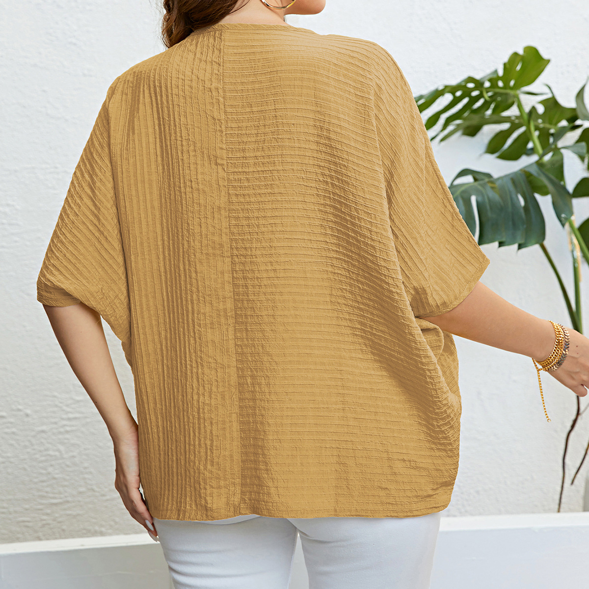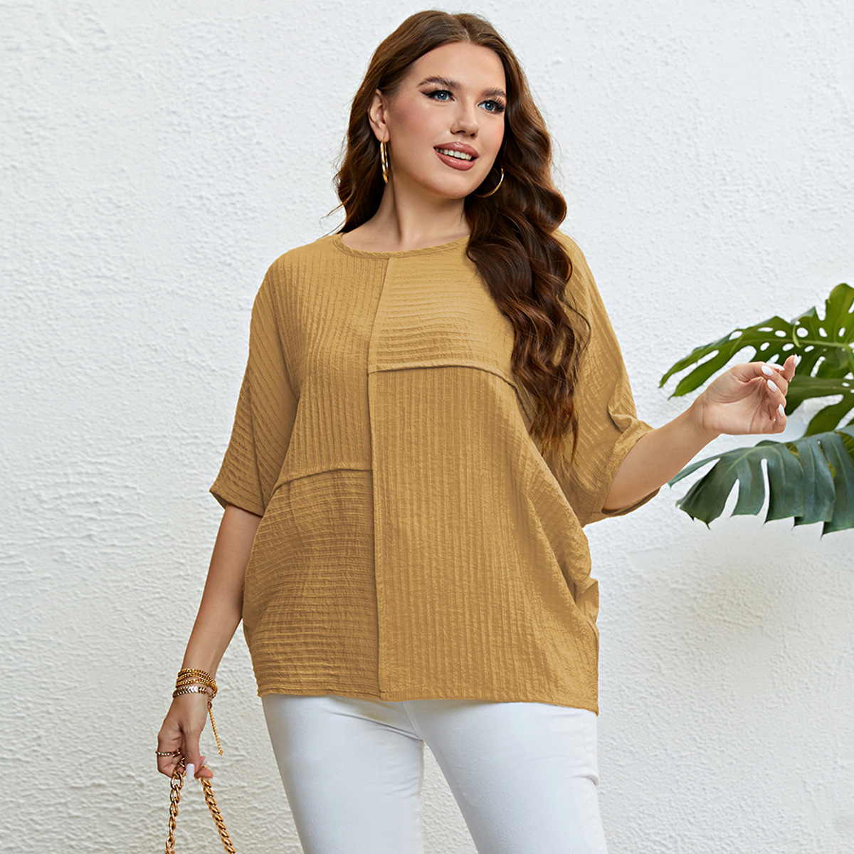 Plus Size Solid Color Top Patchwork Top Women Summer Women Clothing Top