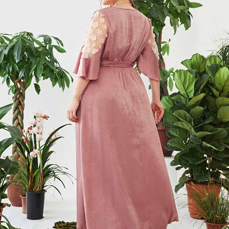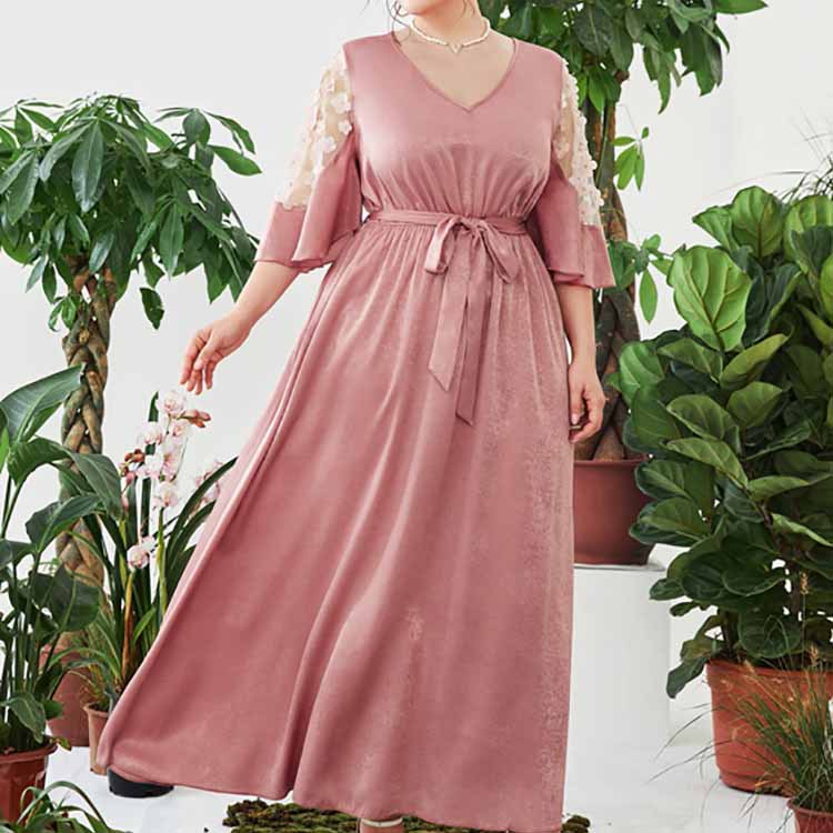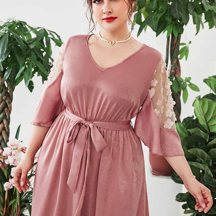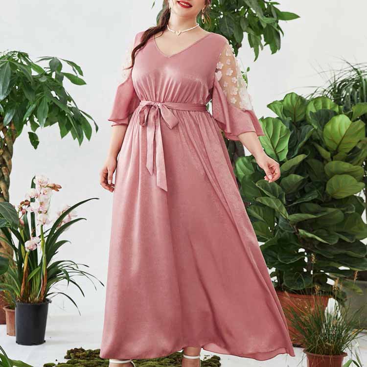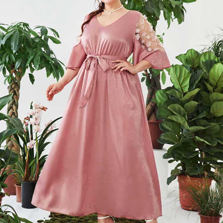 Plus Size Spring Summer Printed Dress Elastic Waist Dress Belted