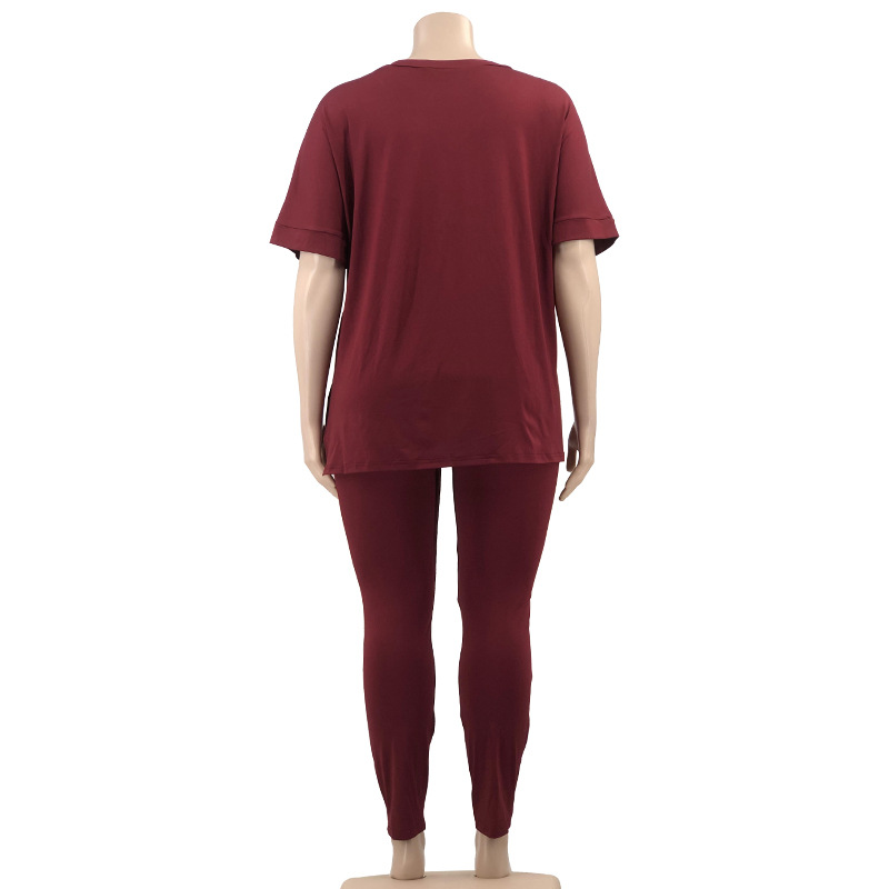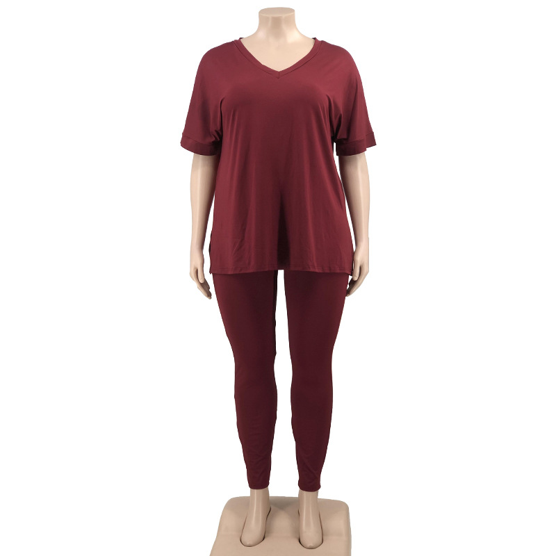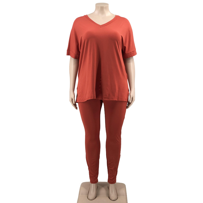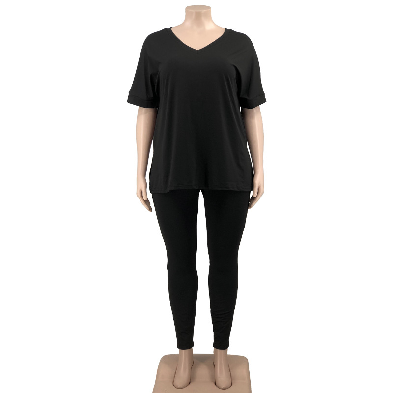 Plus Size Summer V Neck Loose Split Daily Basic Women Suit