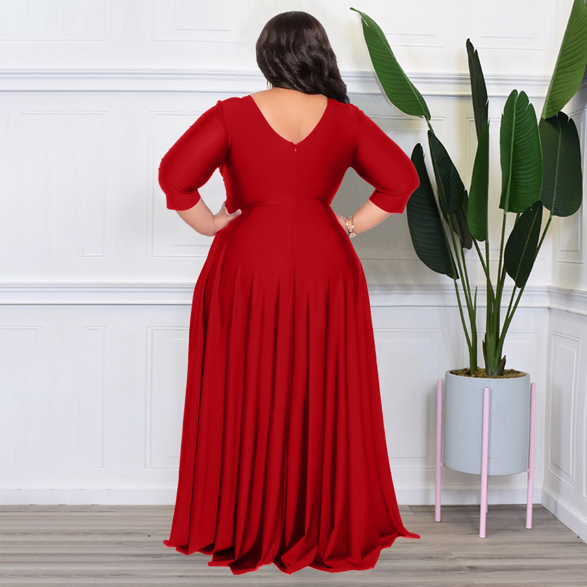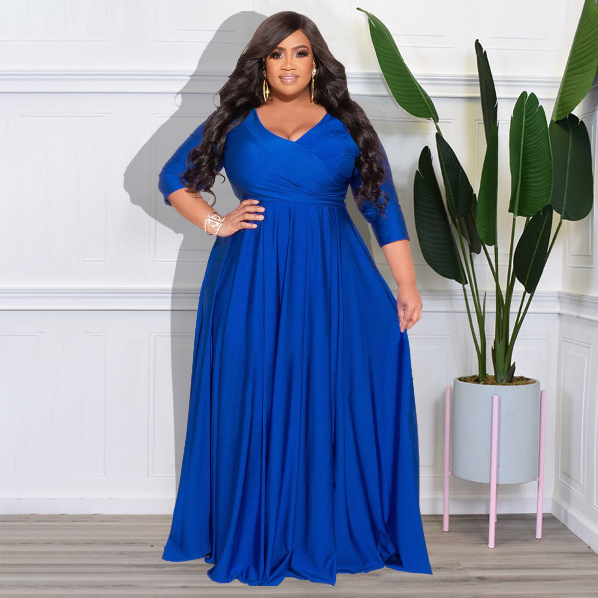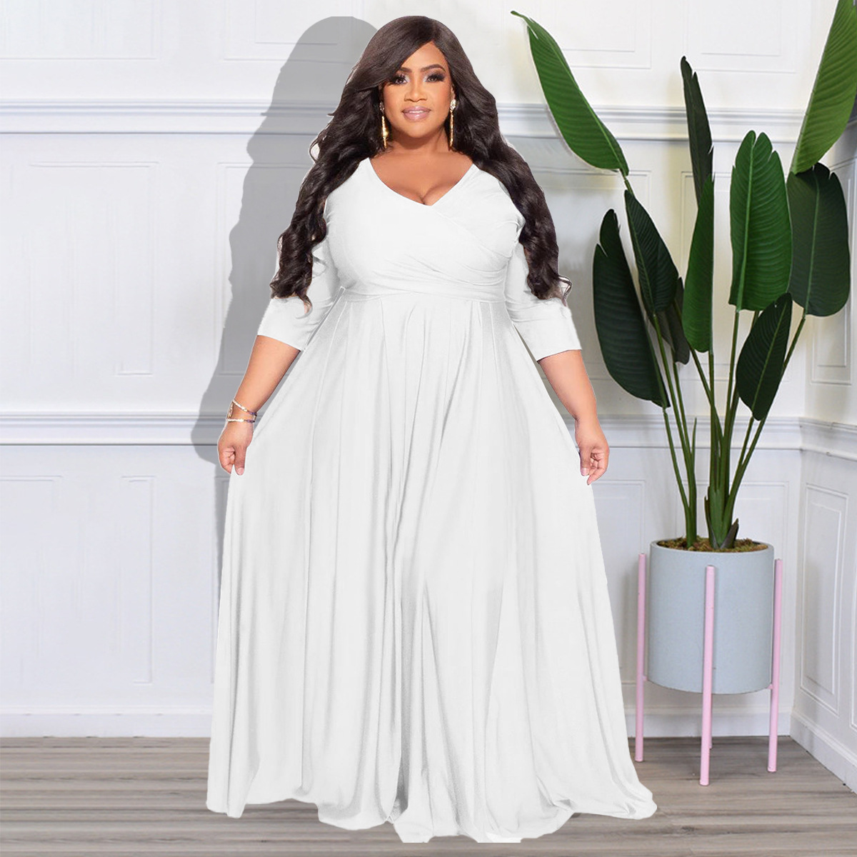 Plus Size Woman Women Clothing Solid Color V Neck Sexy Wedding Clothes Dress
