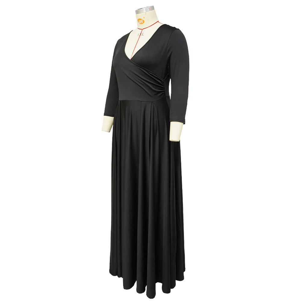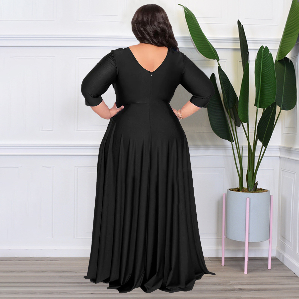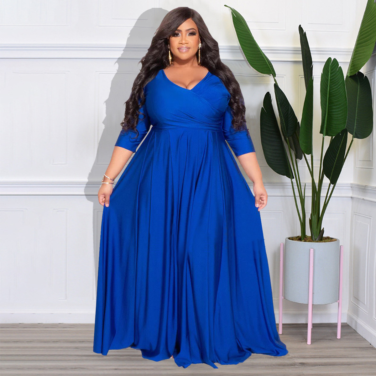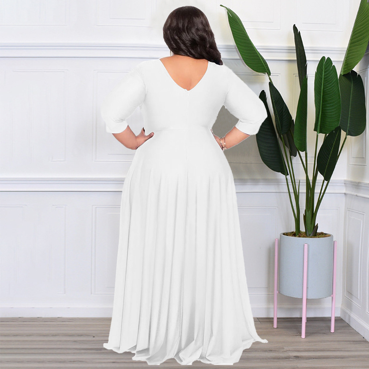 Plus Size Woman Women Clothing Solid Color V Neck Sexy Wedding Clothes Dress