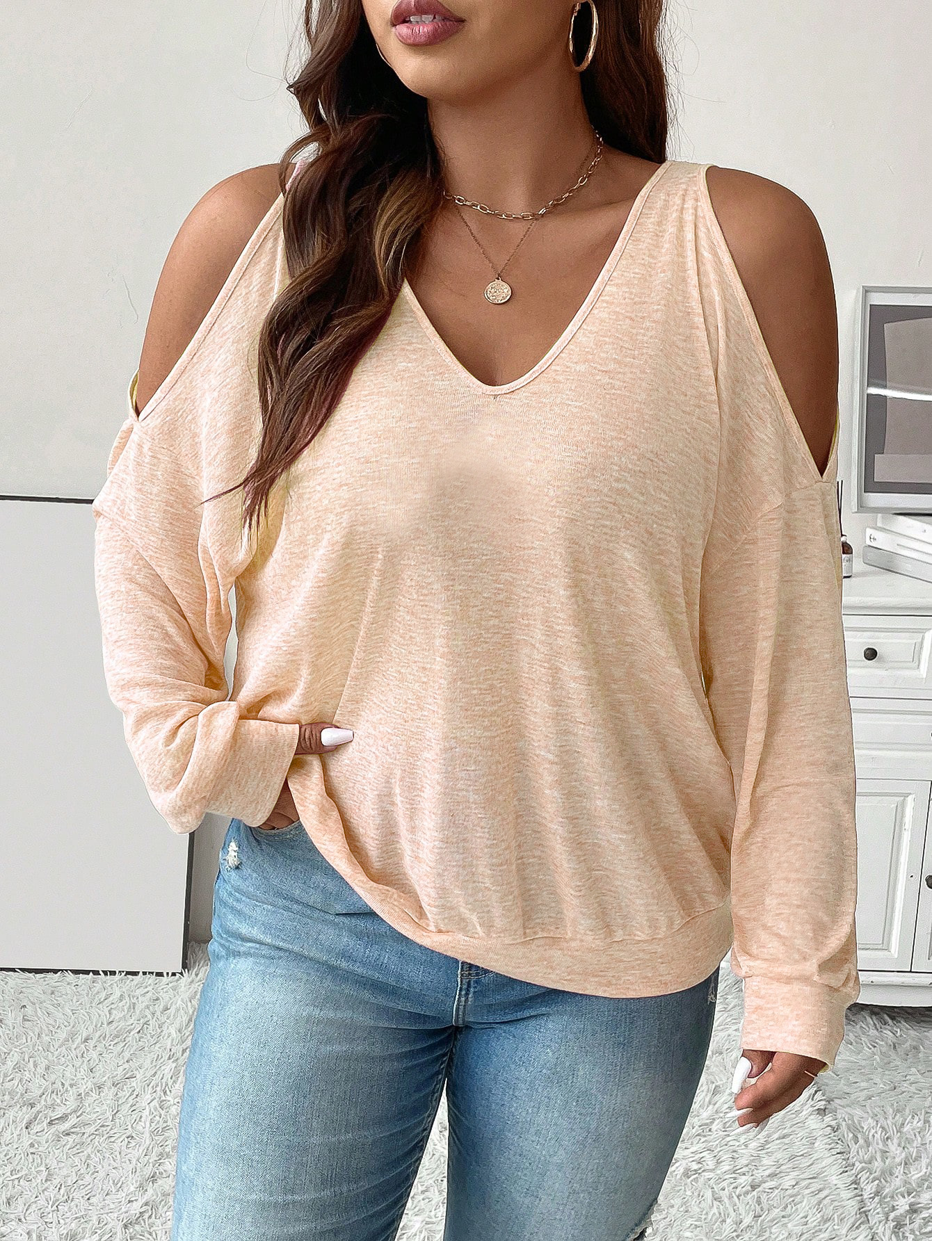Plus Size Women Clothes Autumn Winter Sexy Off The Shoulder V Neck Loose Casual Solid Color Long Sleeved T shirt Top