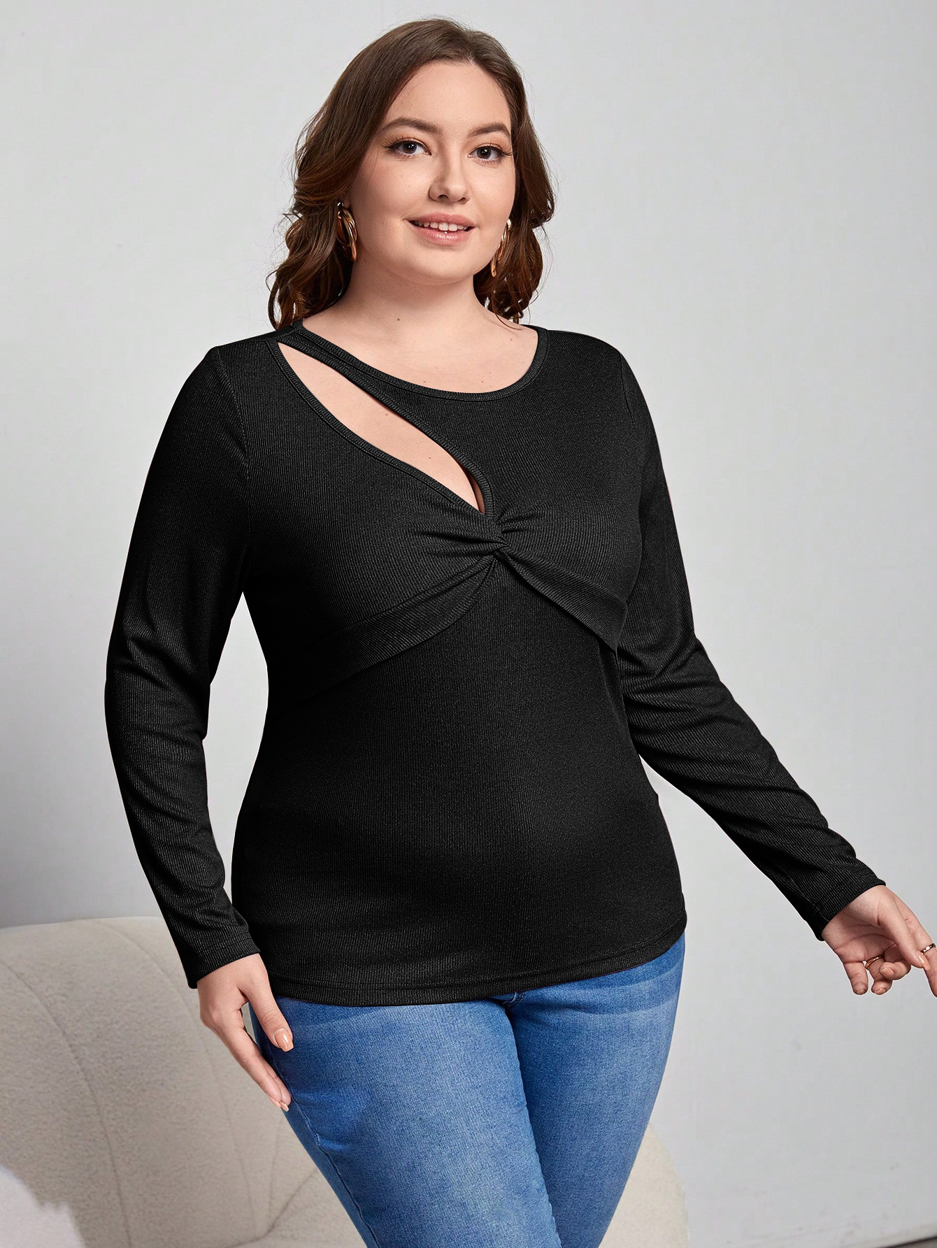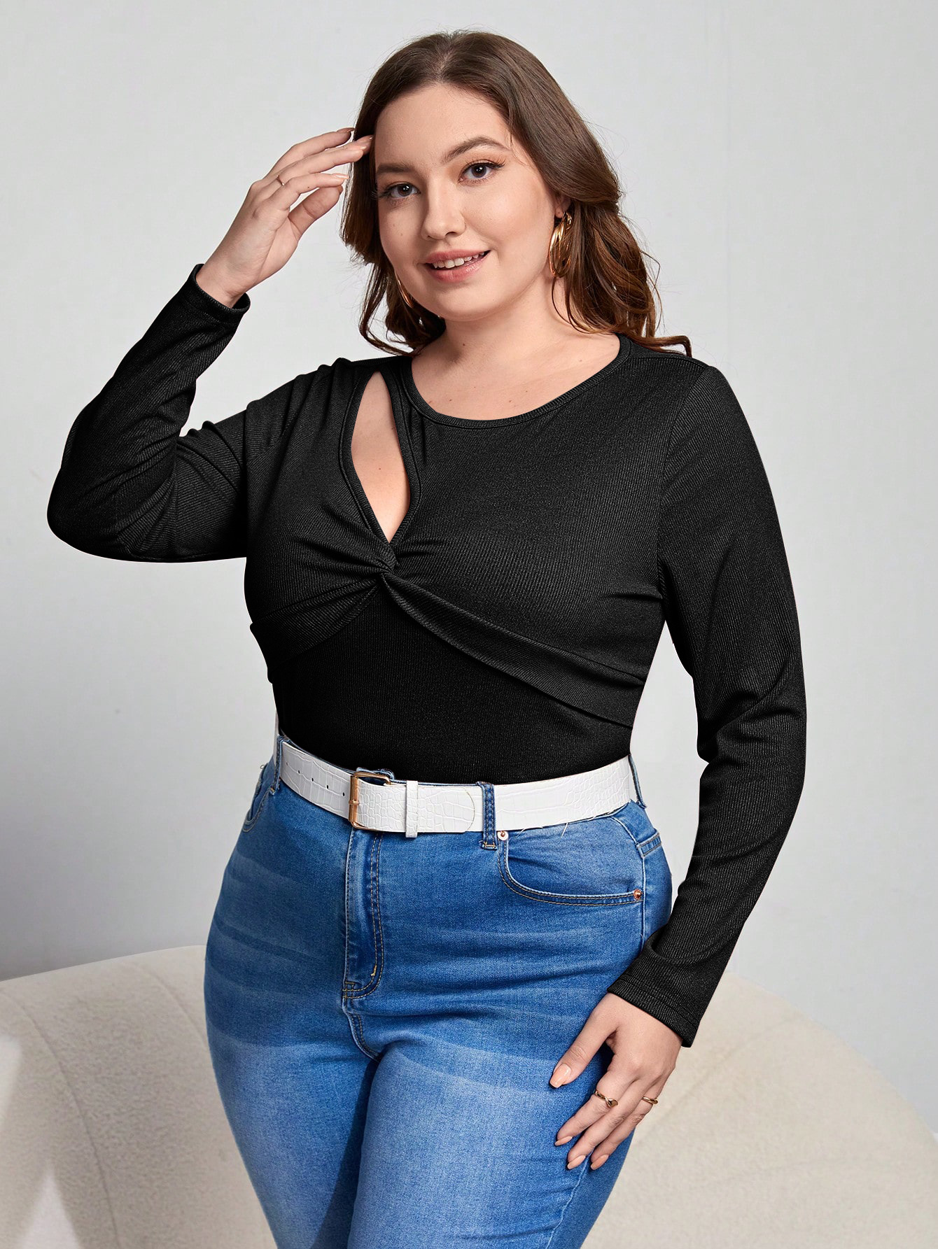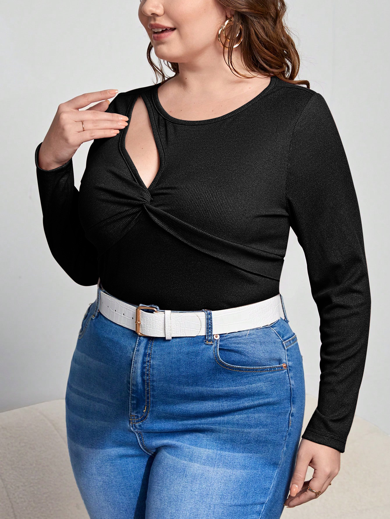 Plus Size Women Clothes Autumn Winter Slim Solid Color Long Sleeve T shirt pirational Design Stylish Sexy Cutout Top