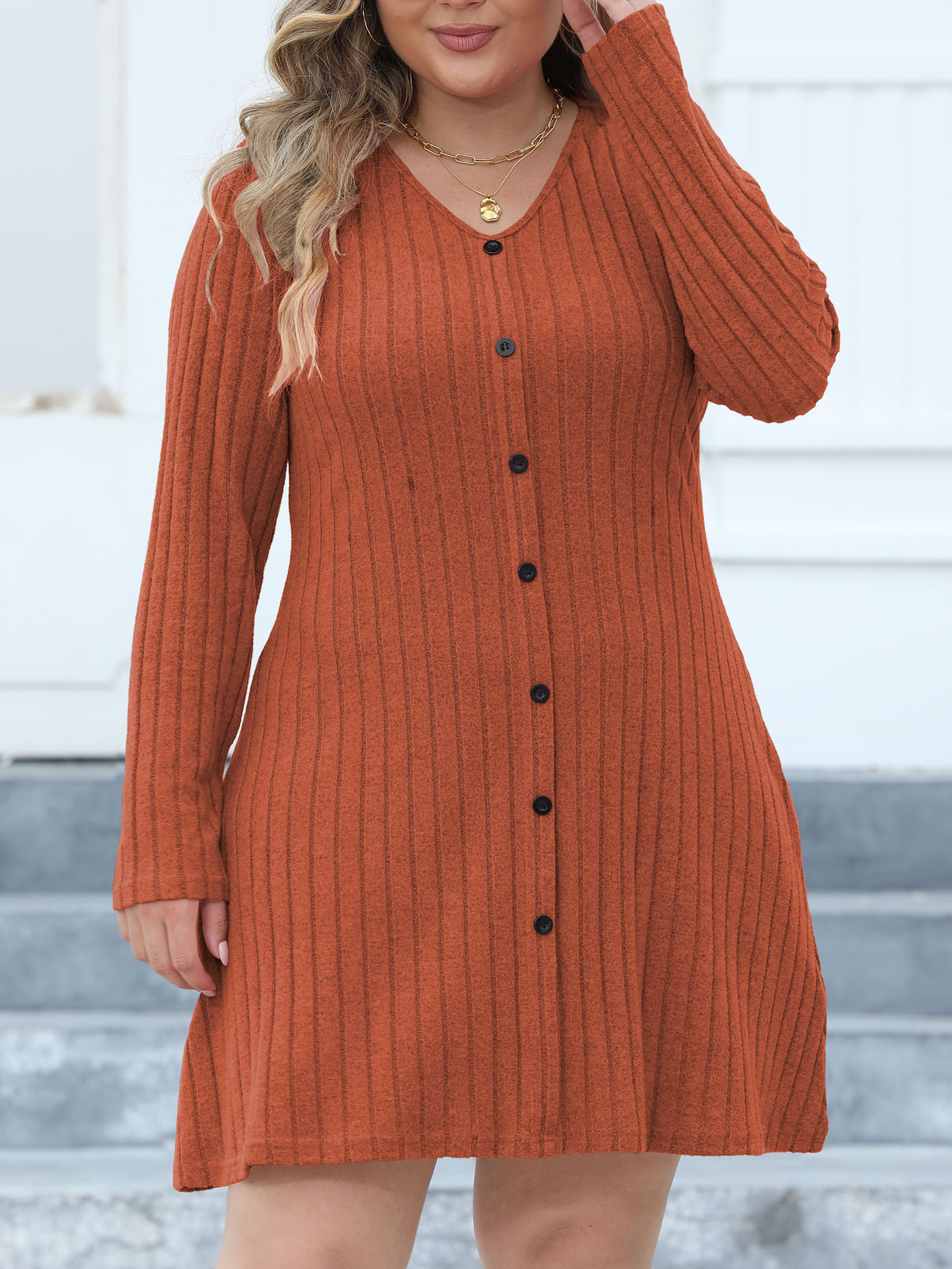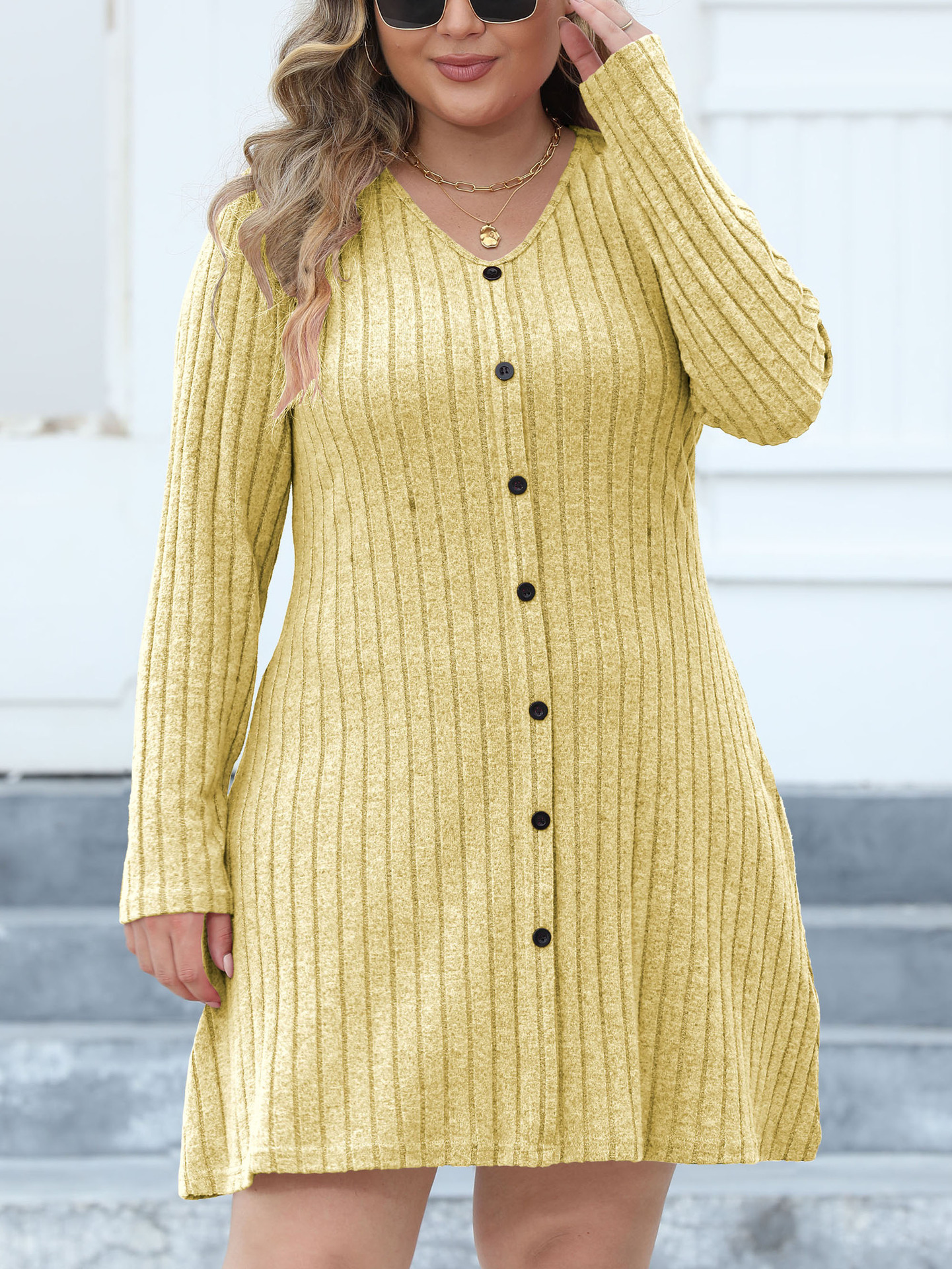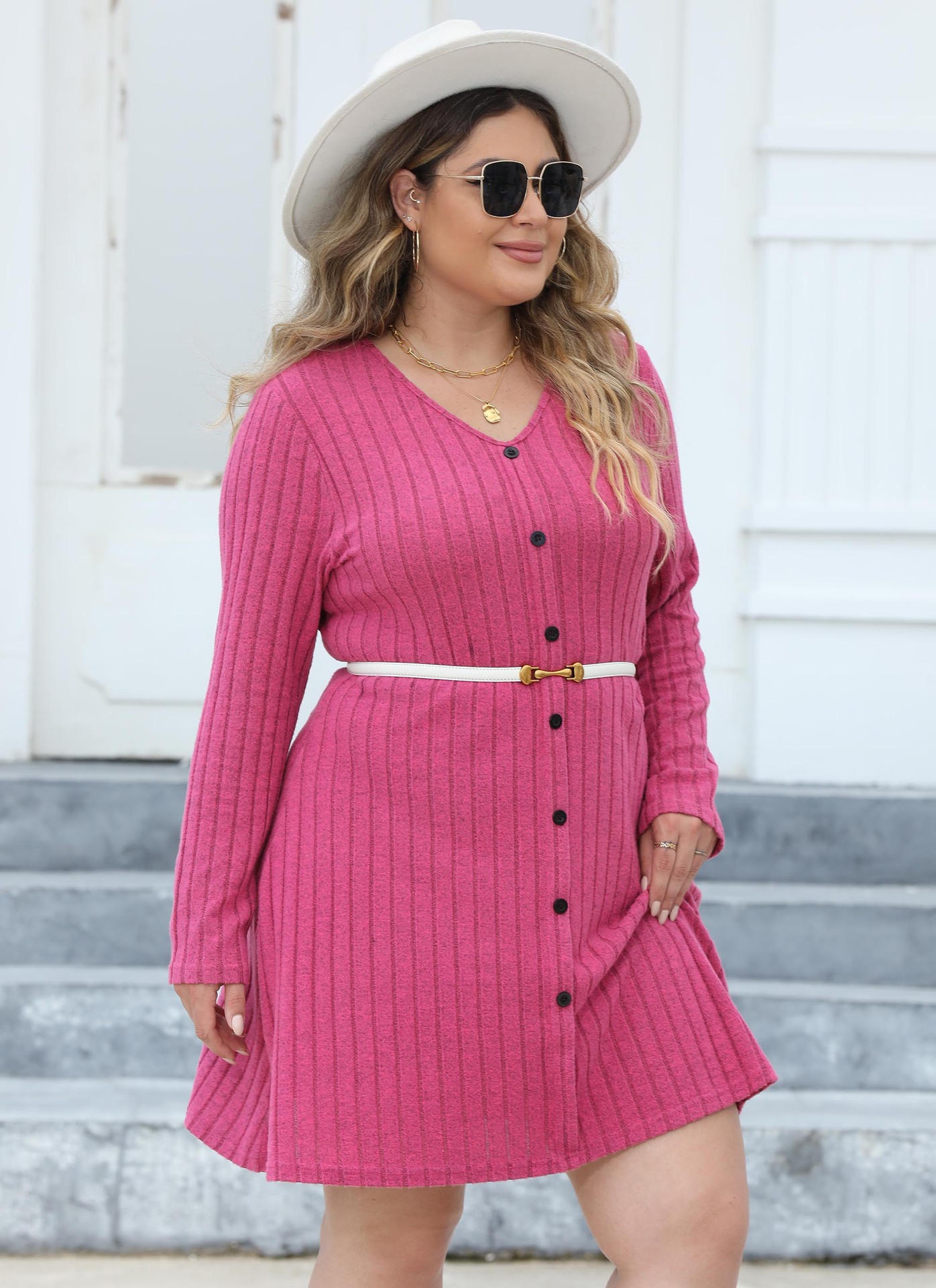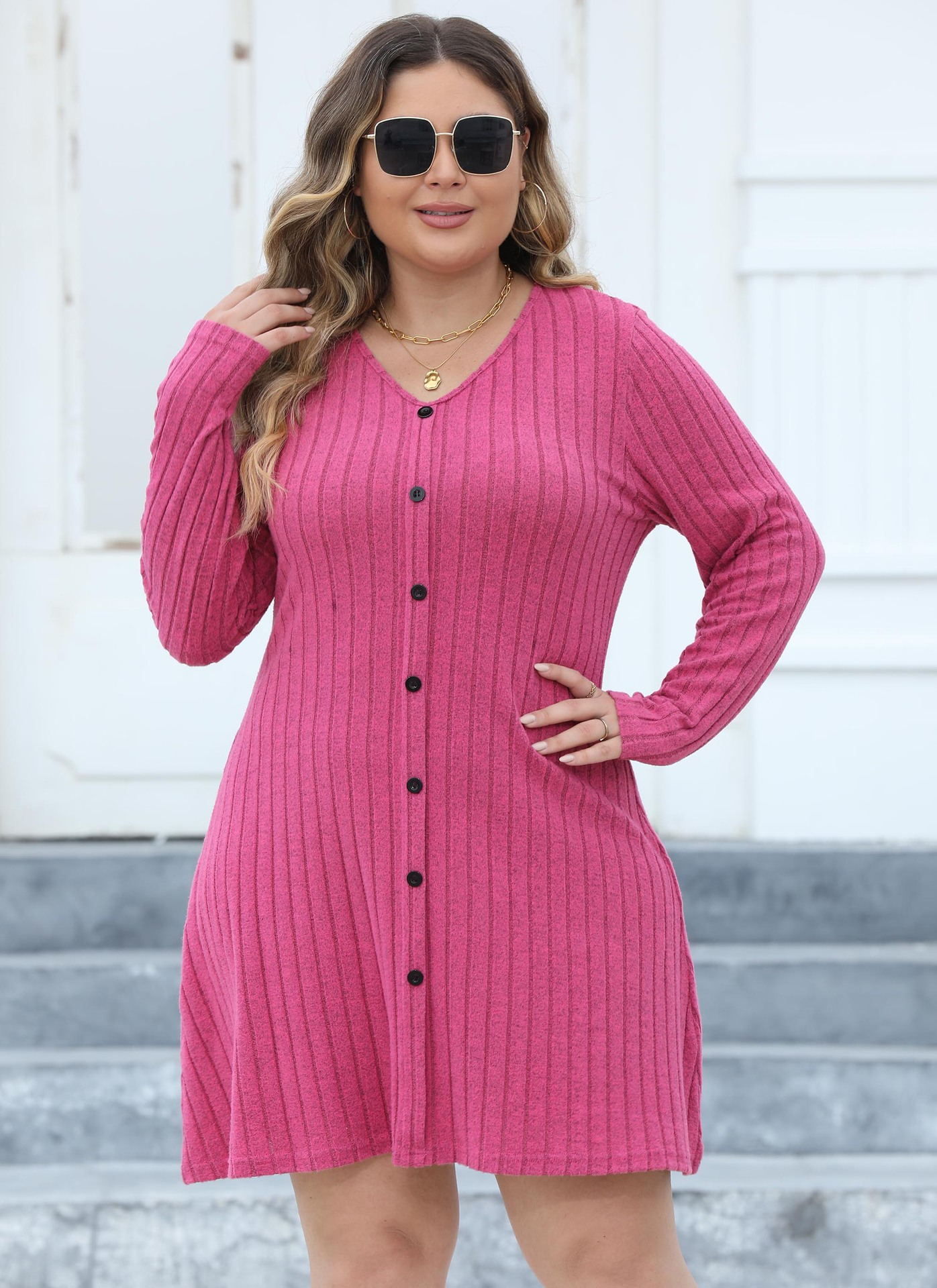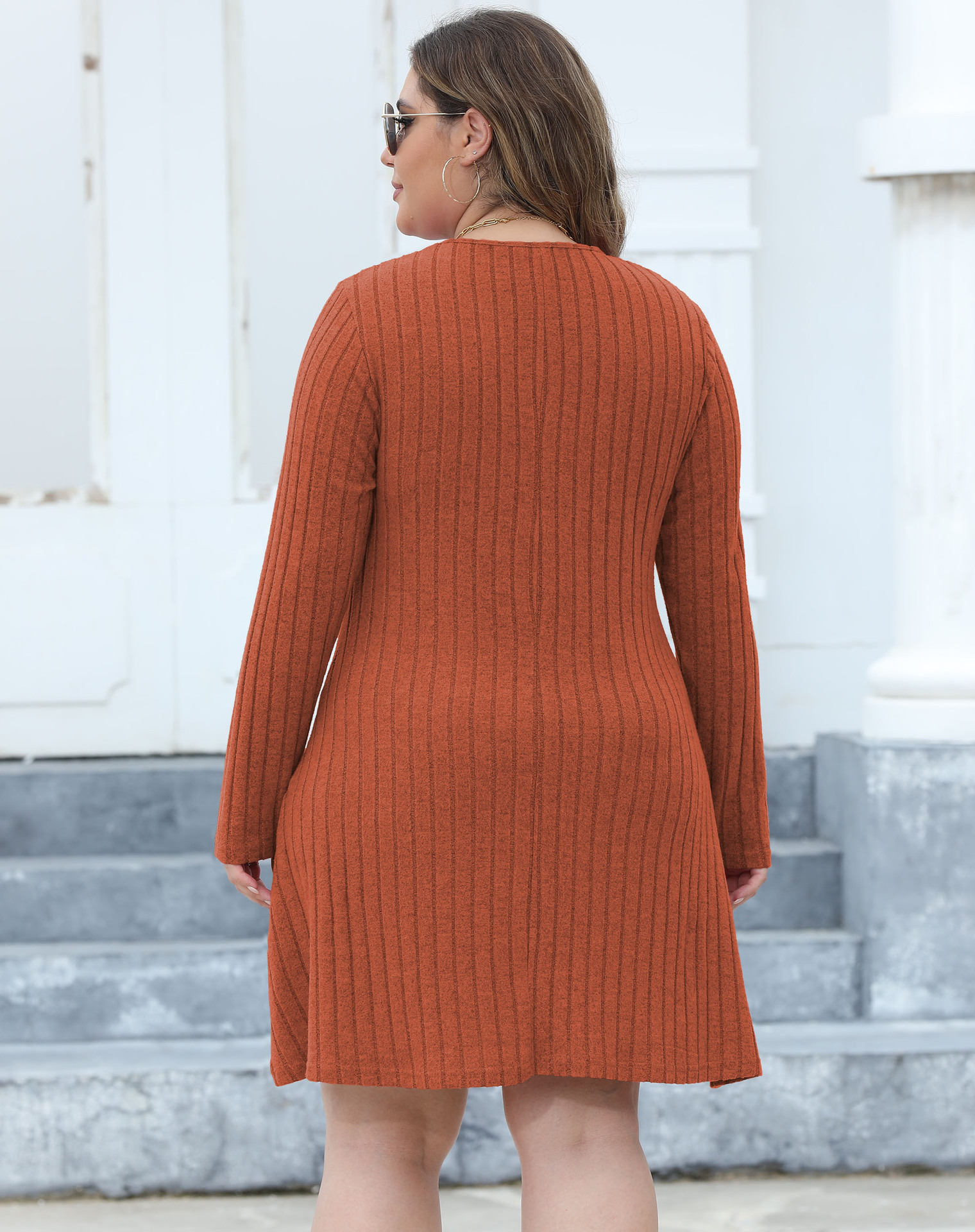 Plus Size Women Clothes Fastener Decoration A Line Dress Deep V Plunge Pit Striped Base Dress No Belt