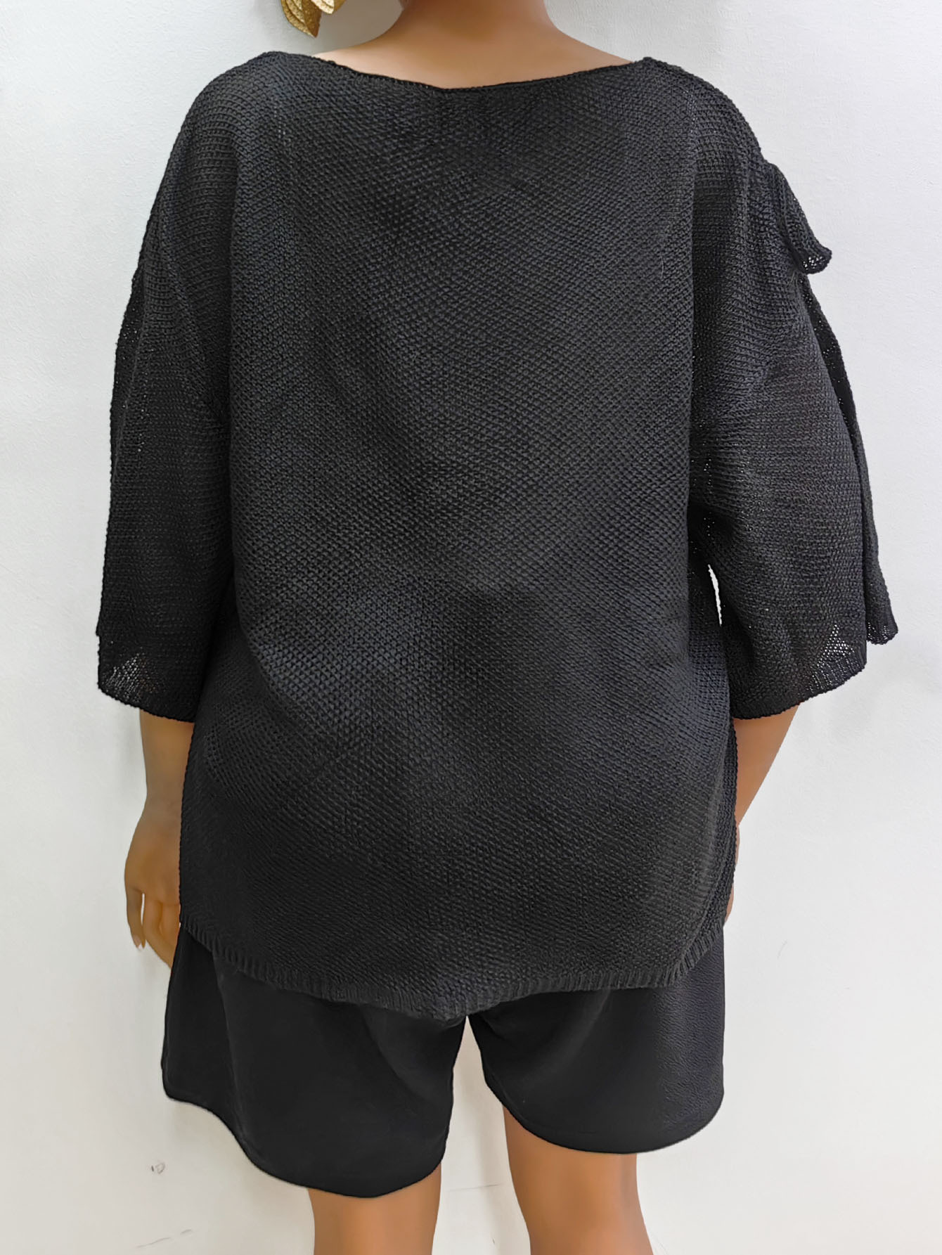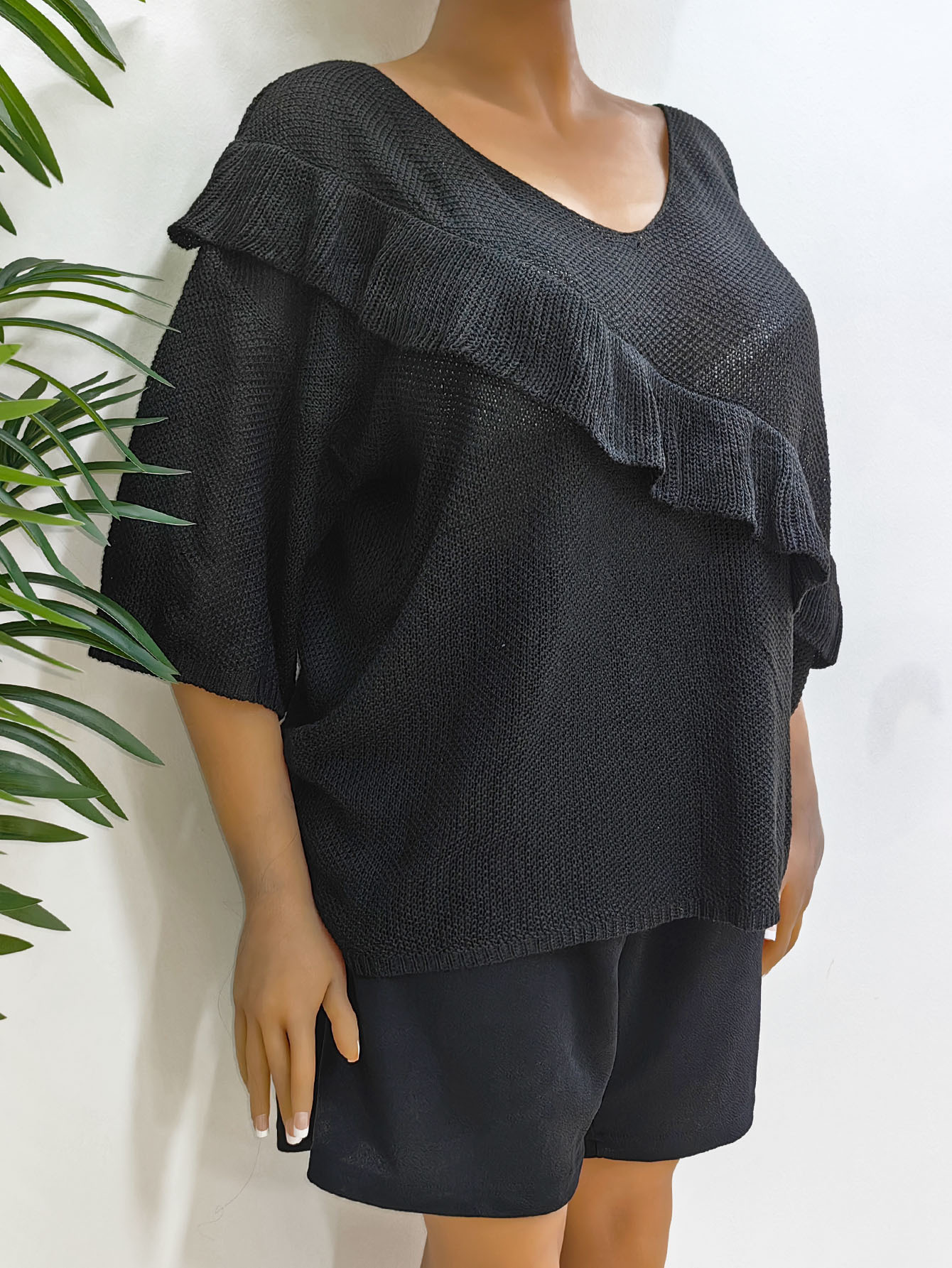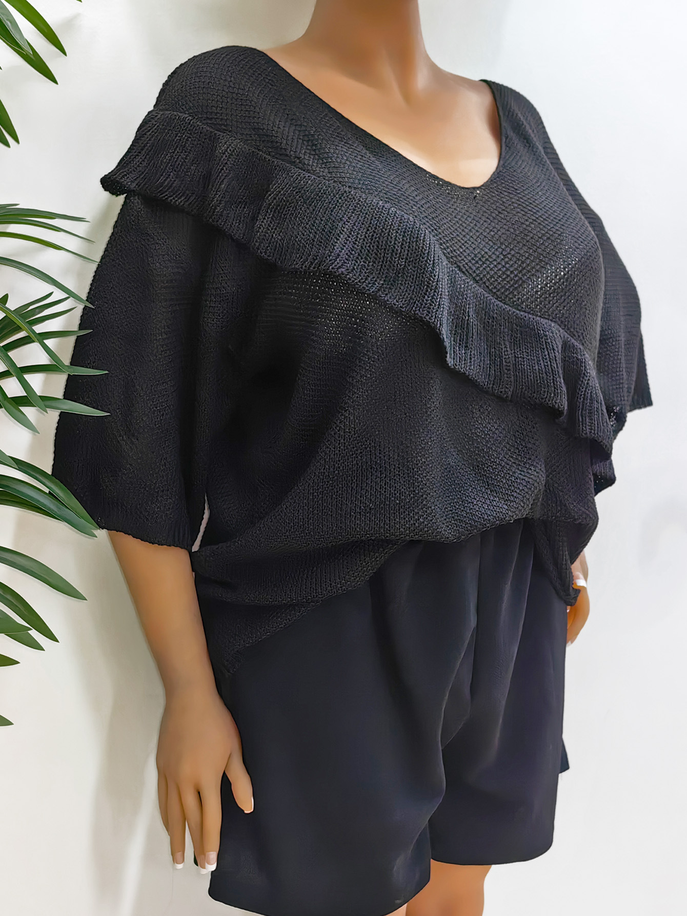 Plus Size Women Clothes Flounced Stitching Woven Sweater Pullover Loose Sweater