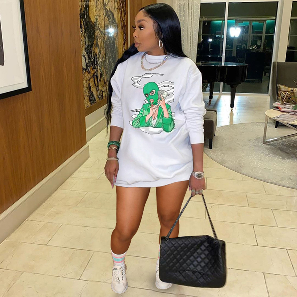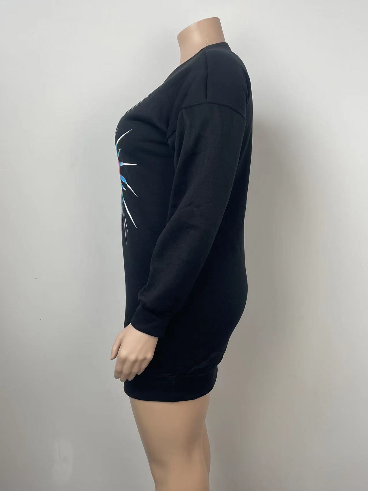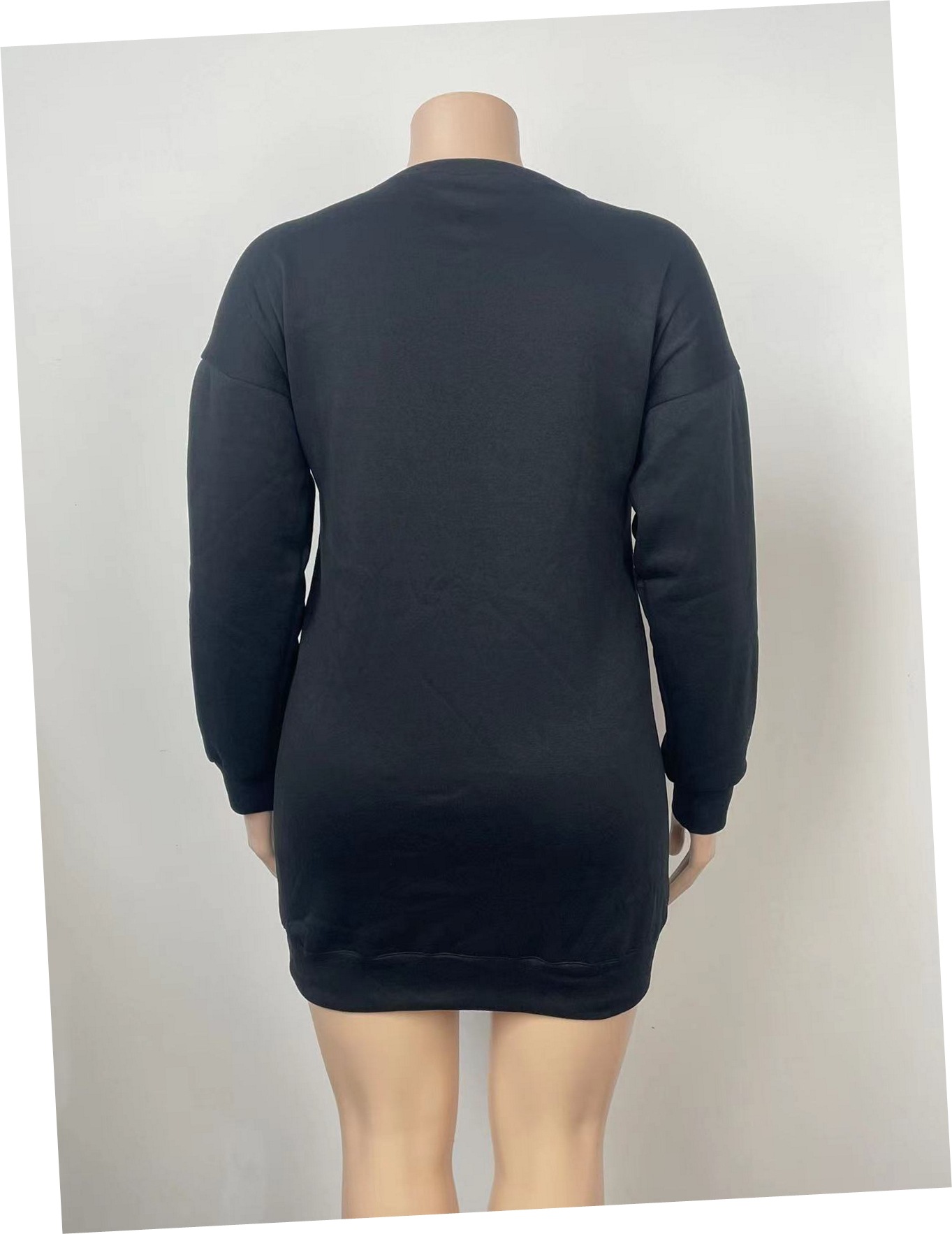 Plus Size Women Clothing Autumn Winter Casual Printing Sweater Dress