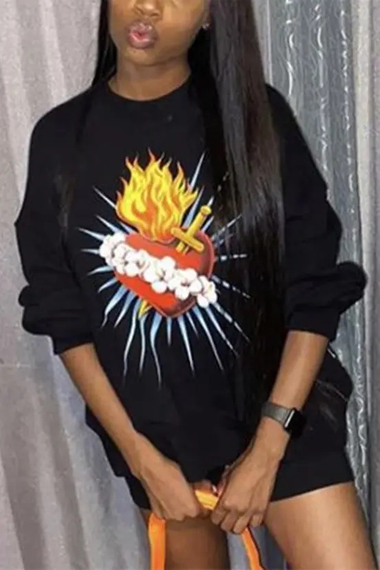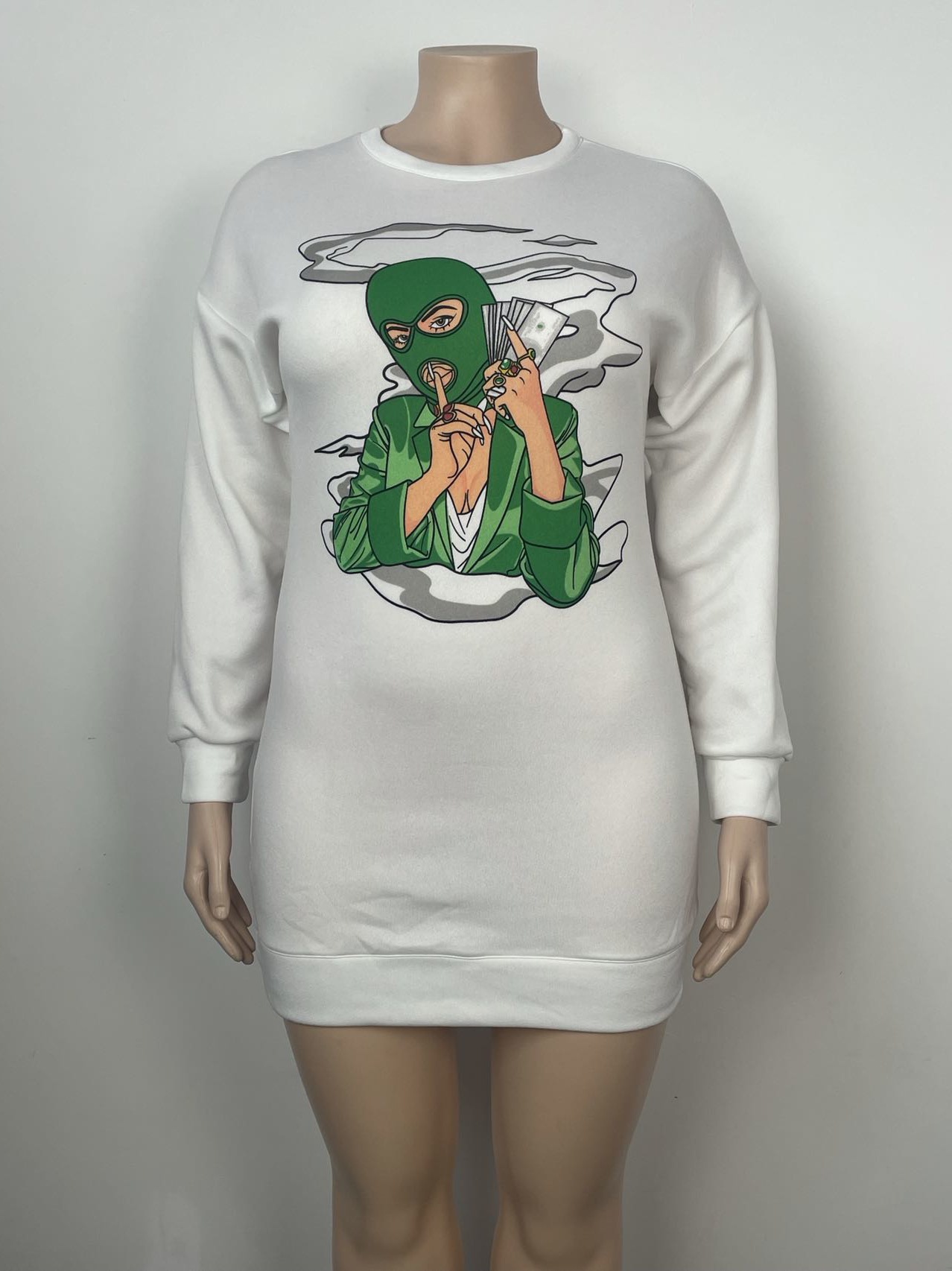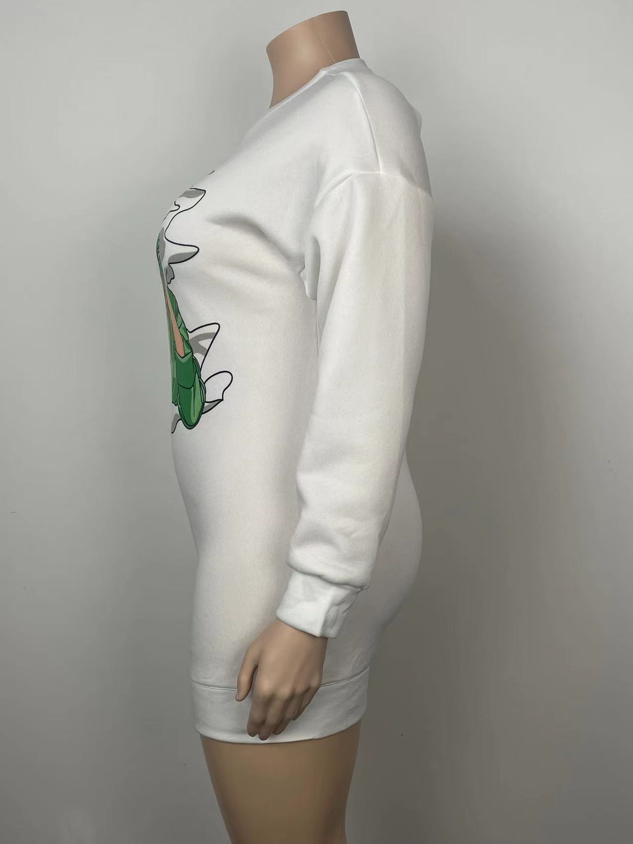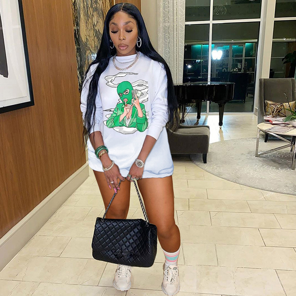 Plus Size Women Clothing Autumn Winter Casual Printing Sweater Dress
