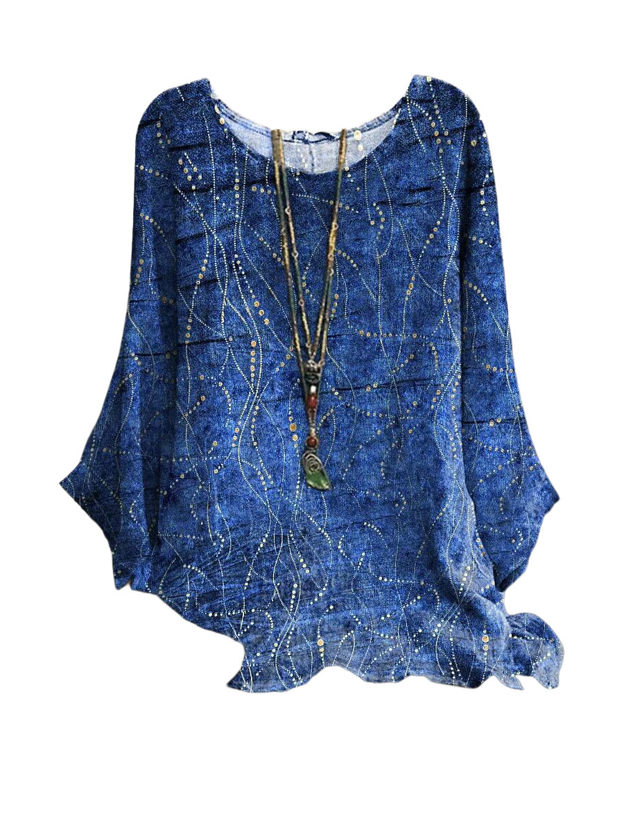 Plus Size Women Clothing Autumn Winter Printed Rhinestones Loose Fitting Casual T shirt Top