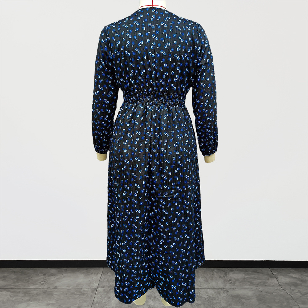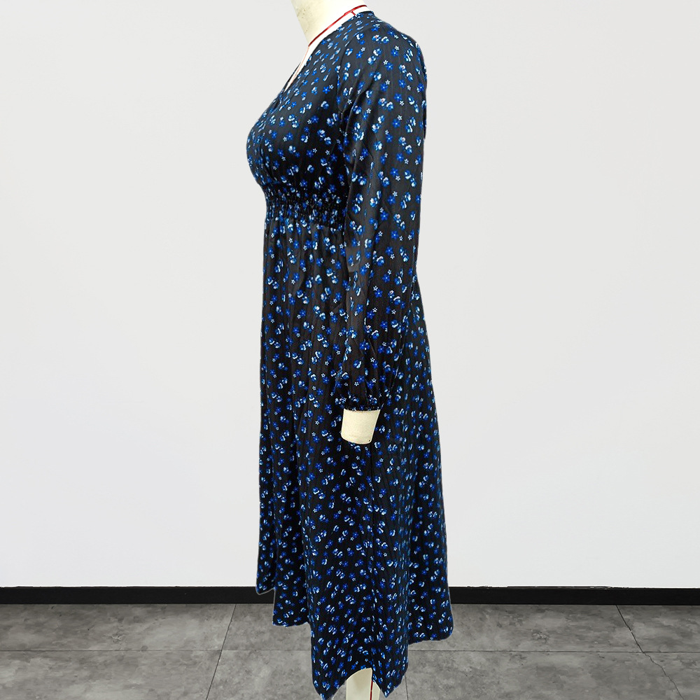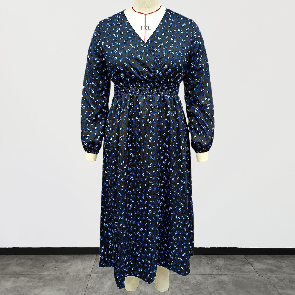 Plus Size Women Clothing Autumn Winter V neck Covering Belly Thin Printed Fashionable Elegant Dress Women