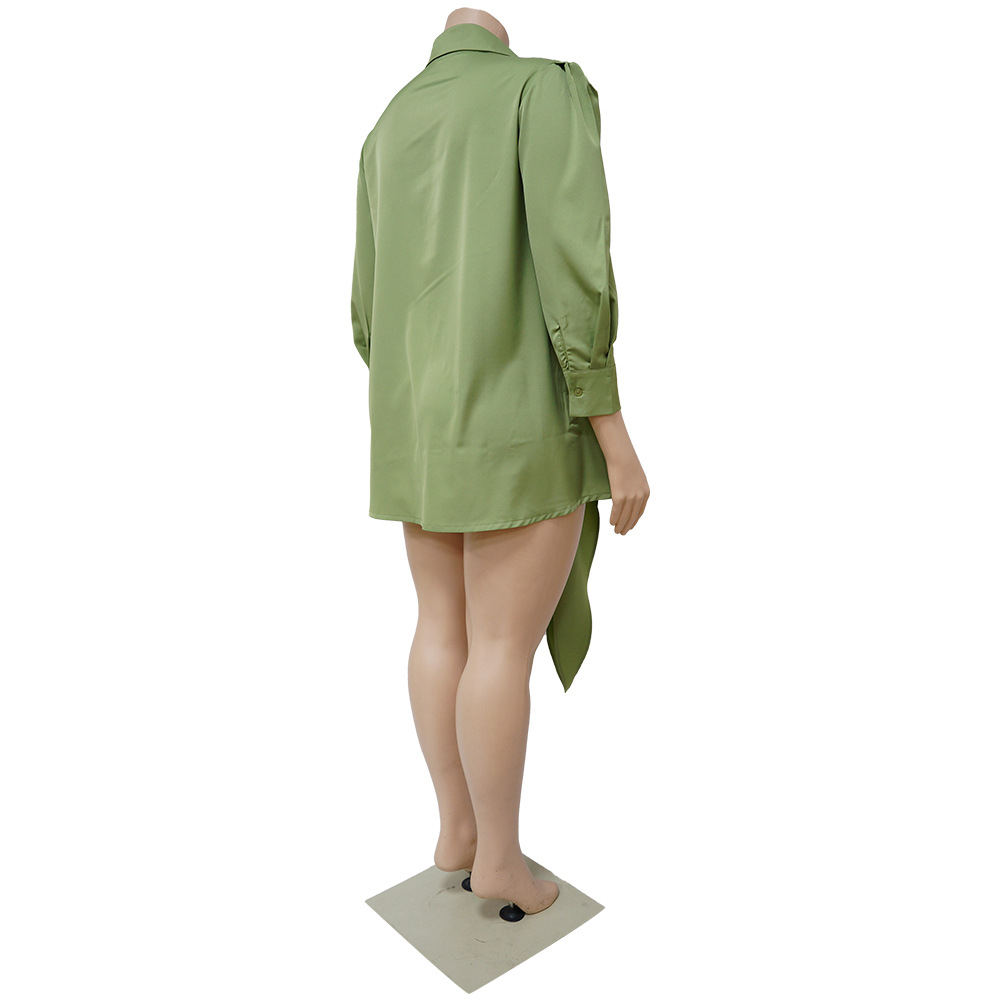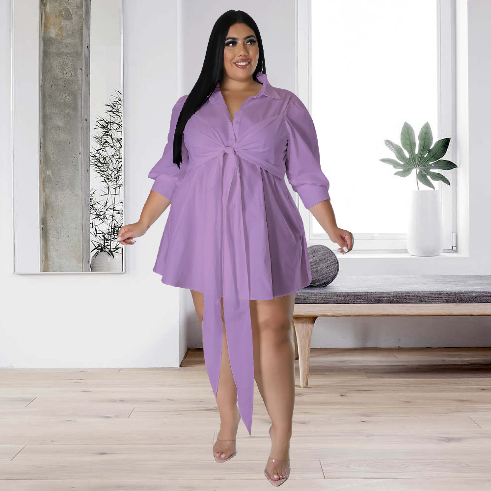 Plus Size Women Sexy Solid Color Tied Shirt Mini Dress