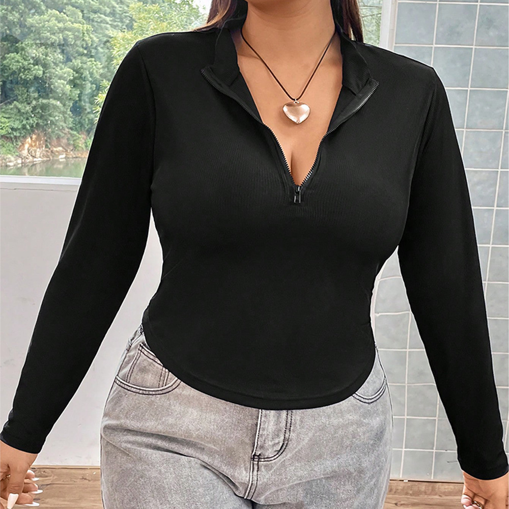 Plus Size Women Solid Color Bottoming Shirt Long Sleeve Zipper T shirt Women Autumn Winter Sexy Sexy Slim Top
