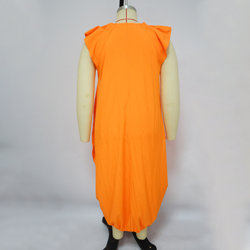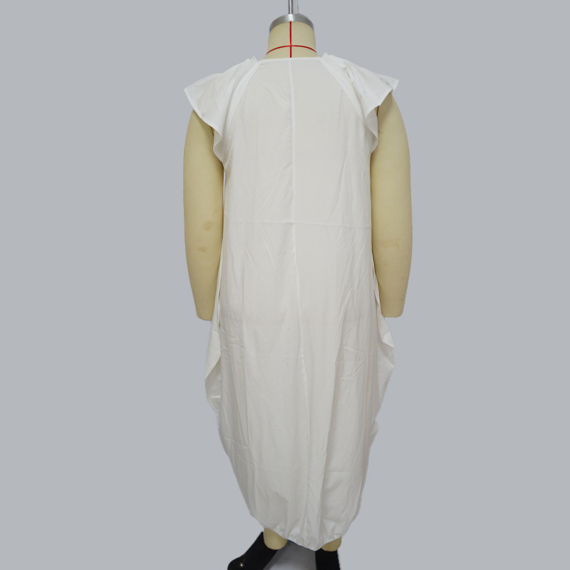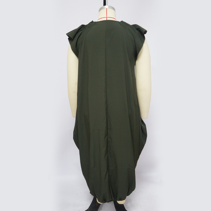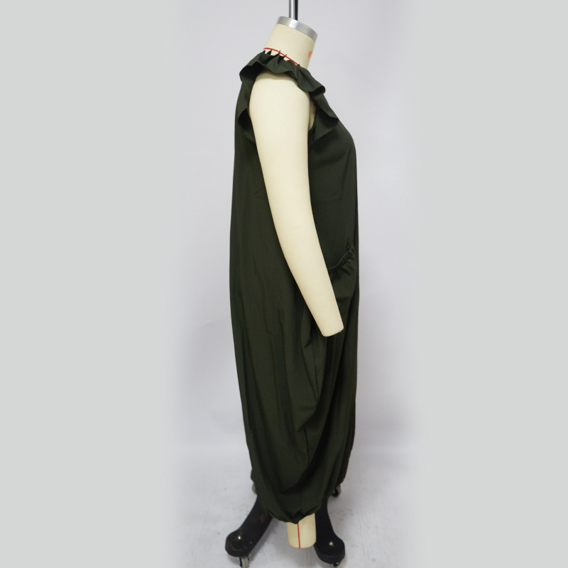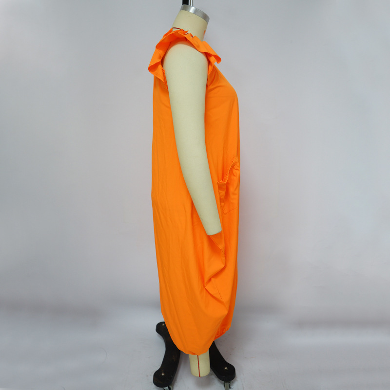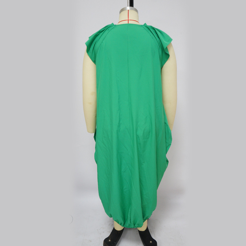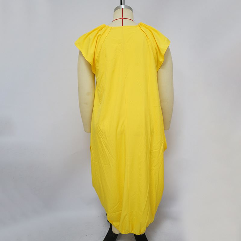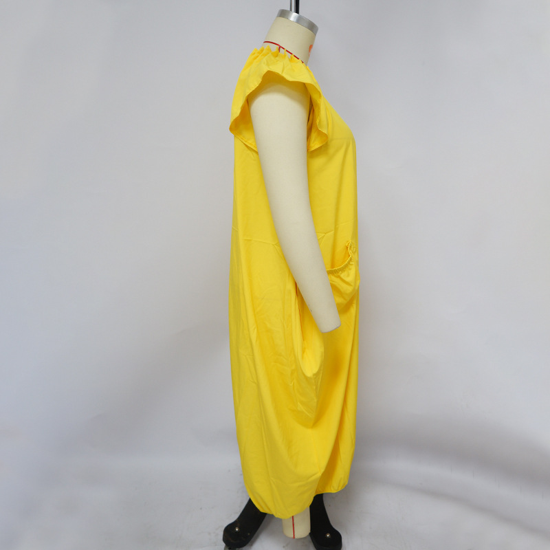 Plus Size Women Solid Color Double Pocket Loose Dress