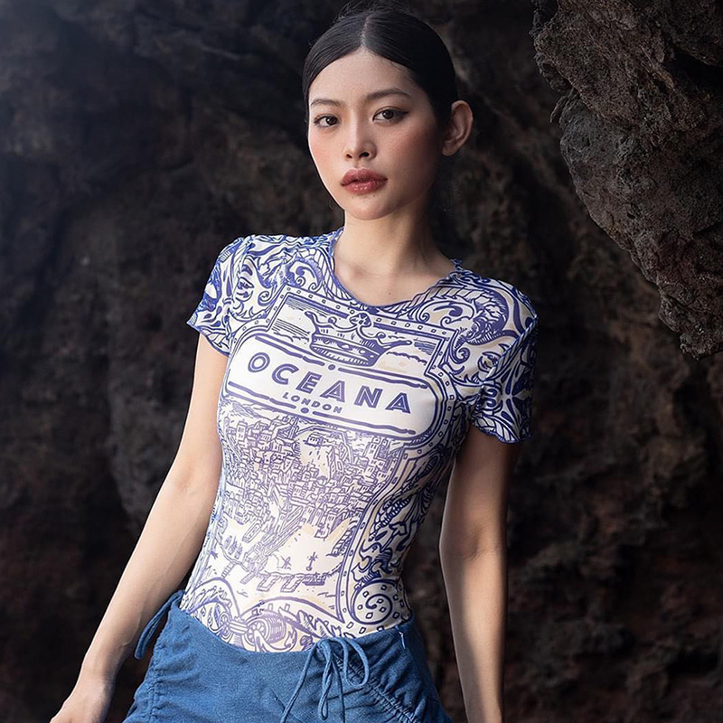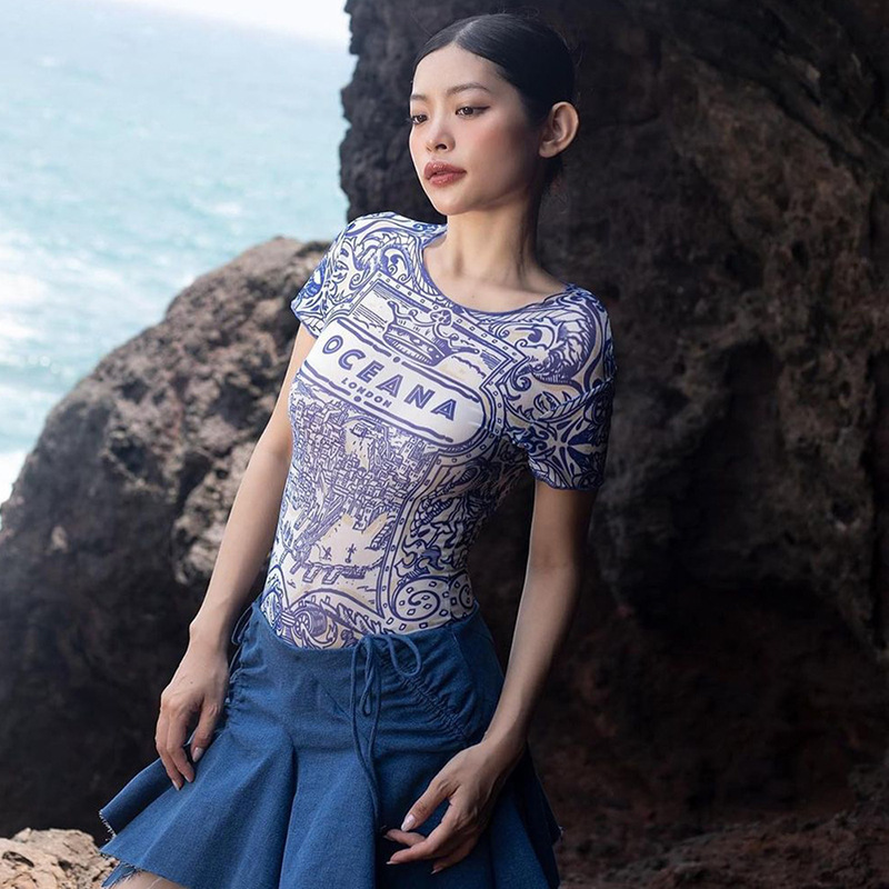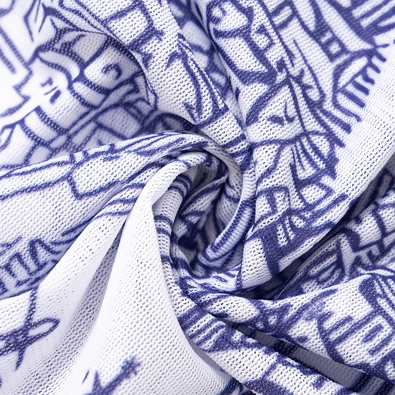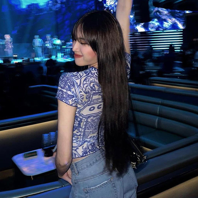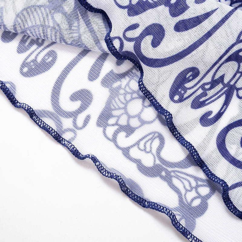 Retro Pattern Printed Mesh Top Women Sexy Sexy Wear Match Summer