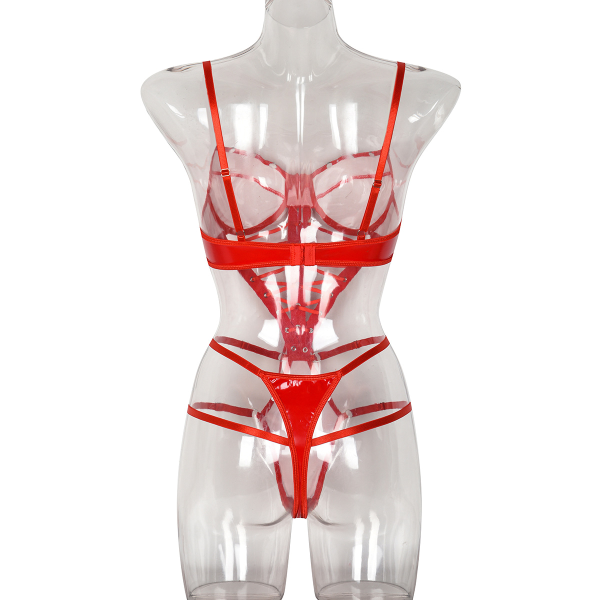 Sexy Jumpsuit Faux Leather Light Diamond Stitching Cross Strap Women Jumpsuit