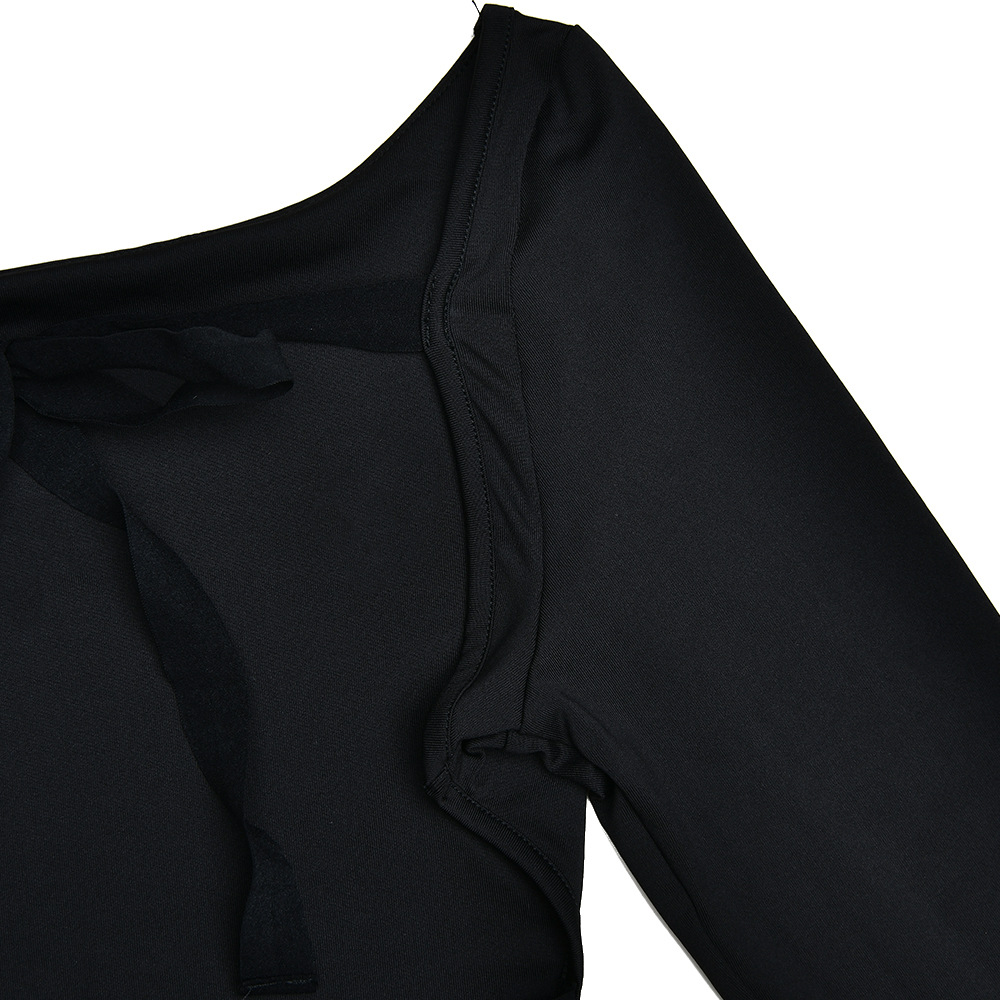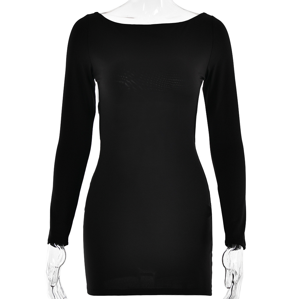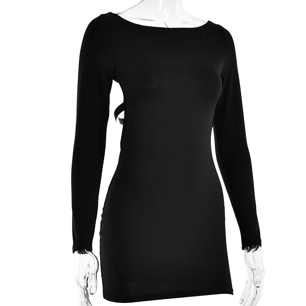 Sexy Lace up round Neck Long Sleeve Backless Stitching Hip Dress