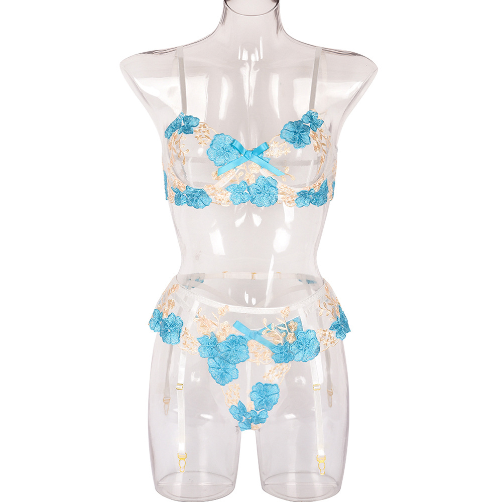 Sexy Lingerie Three-Piece Set Quality Embroidered Underwear