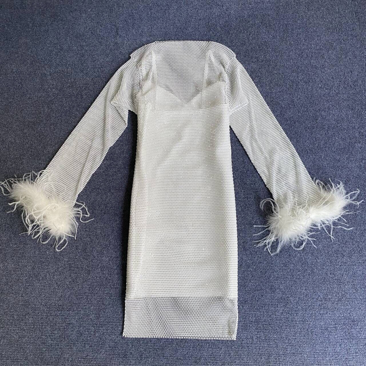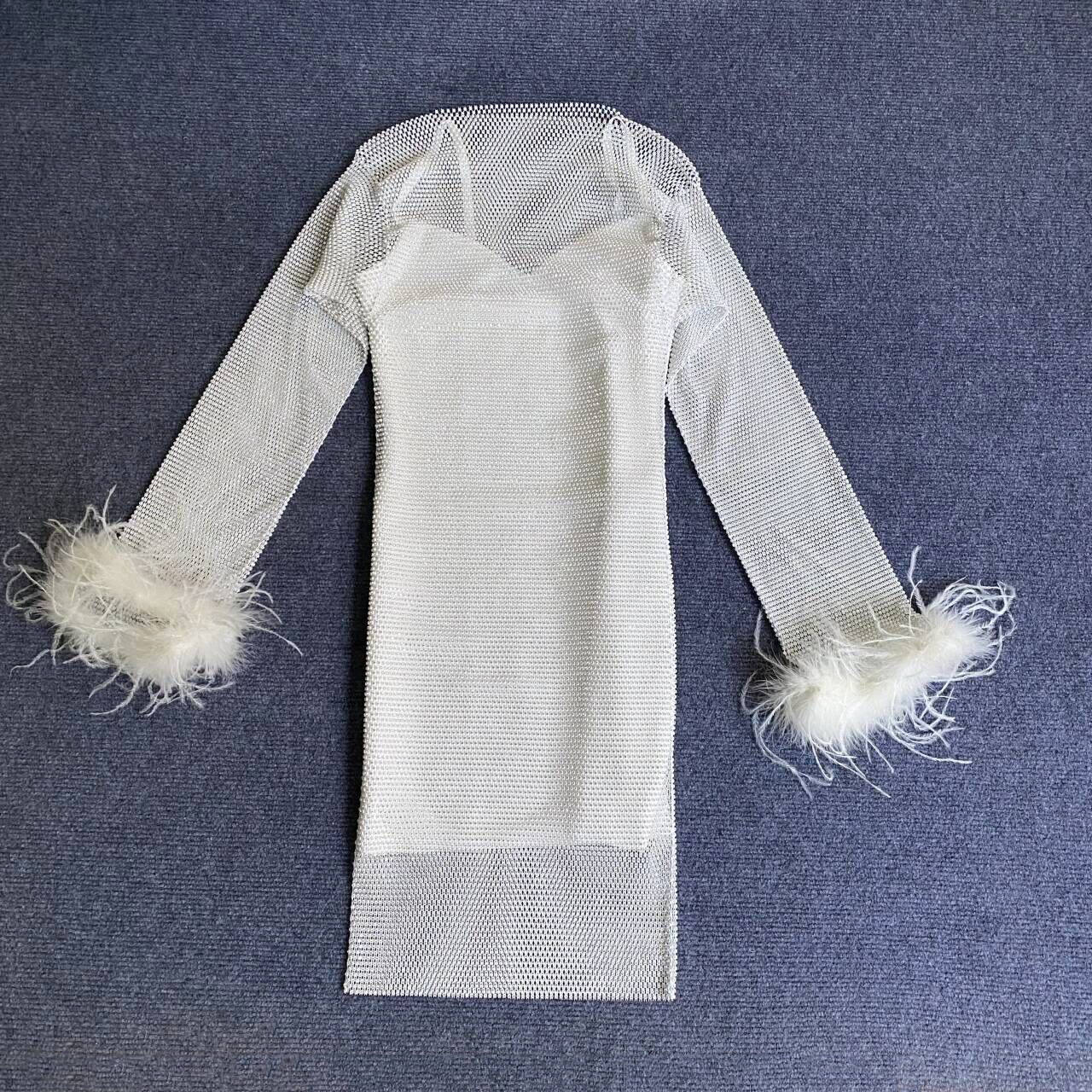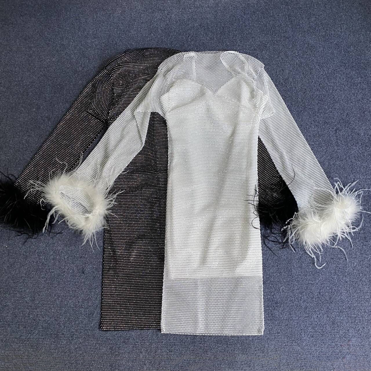 Sexy Long Sleeve Net Drill Feather Sling Bandage Dress Ladies Party Cocktail Dress Dress