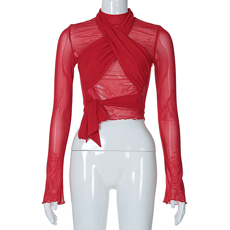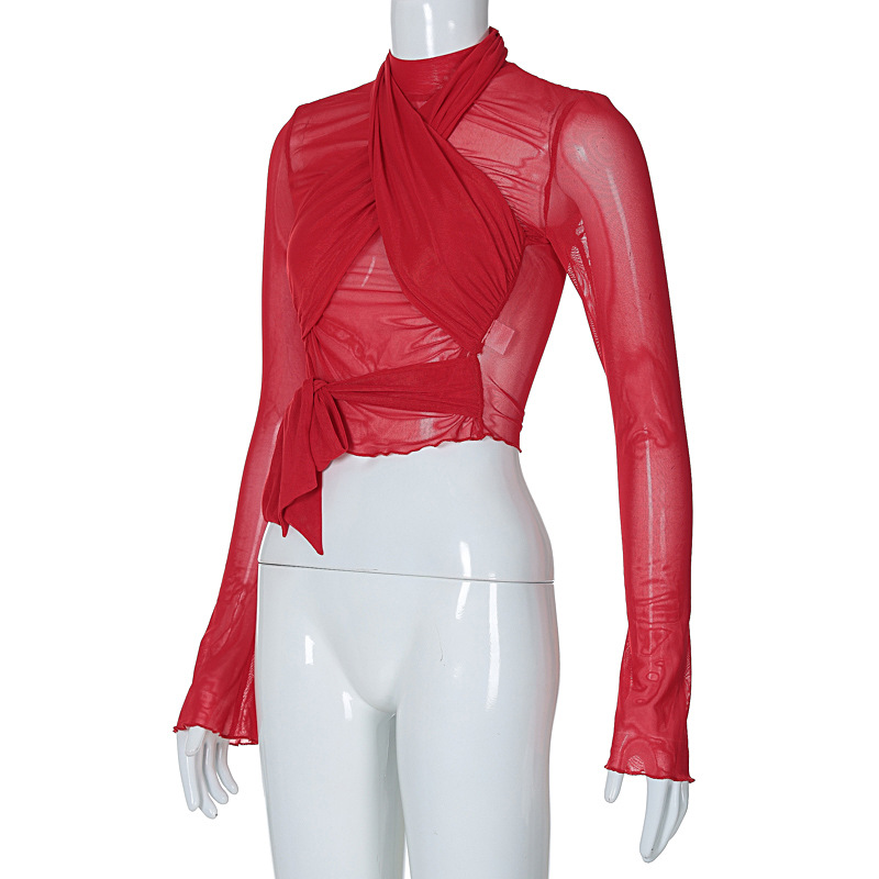 Sexy Tight Long Sleeve Tied Stitching Design Top Niche Street All Match Jumpsuit for Women