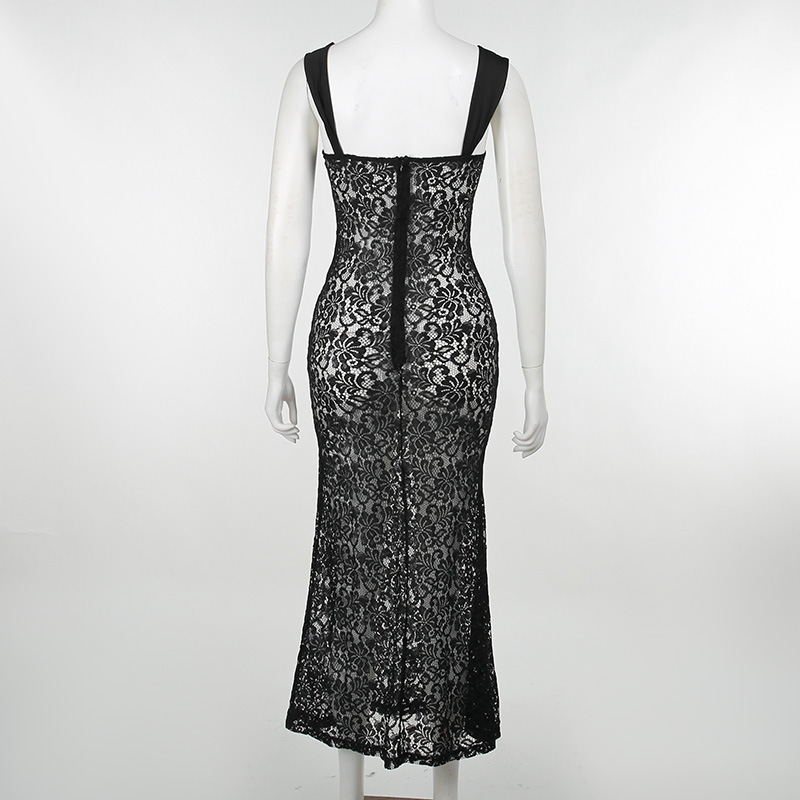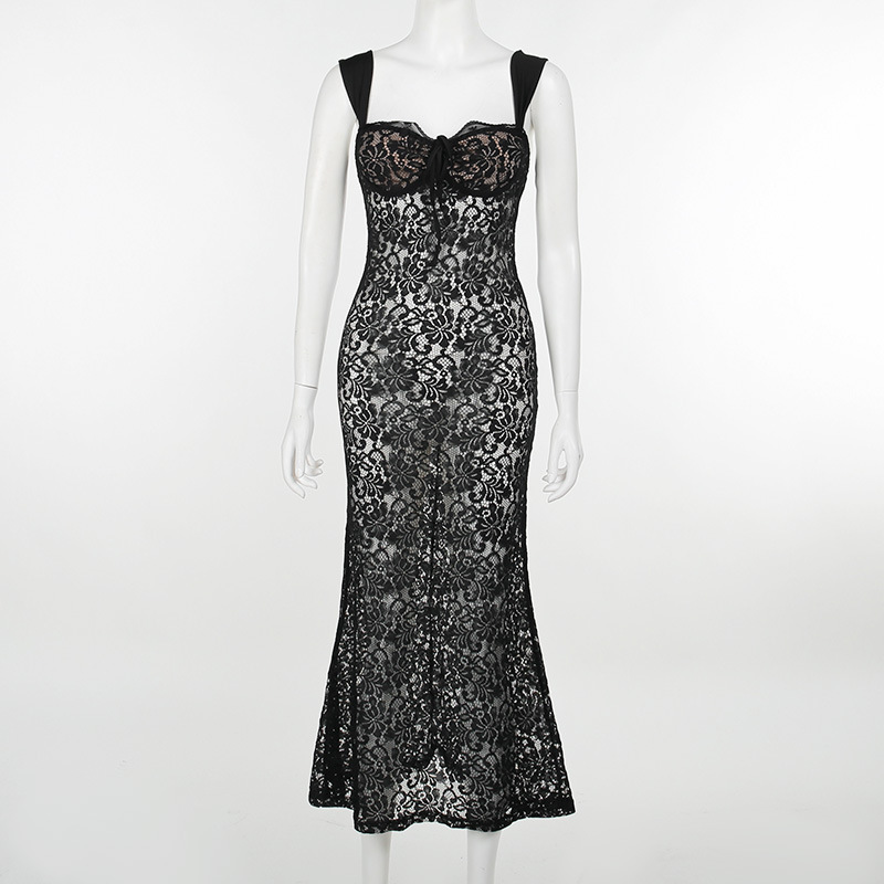 Sling Lace Sexy See through Slim Fit Dress Sexy Fishtail Dress Women