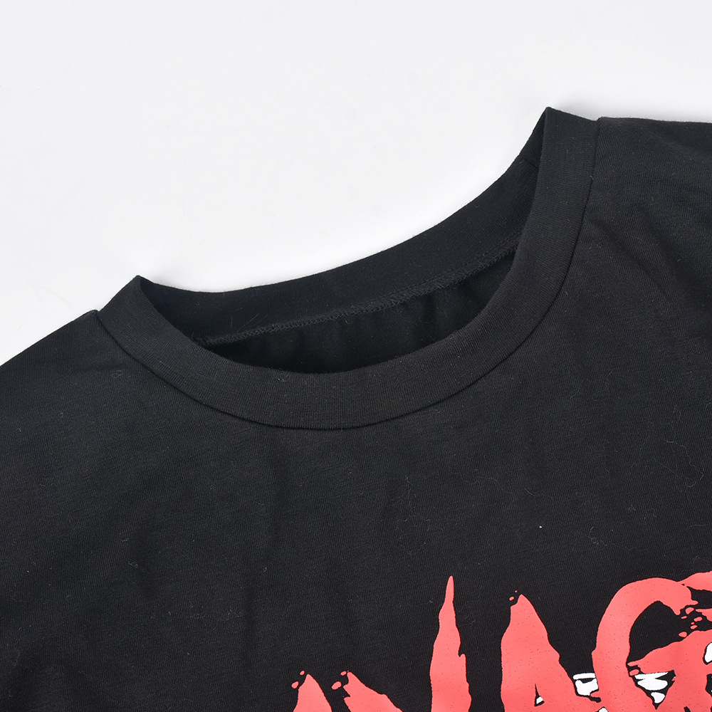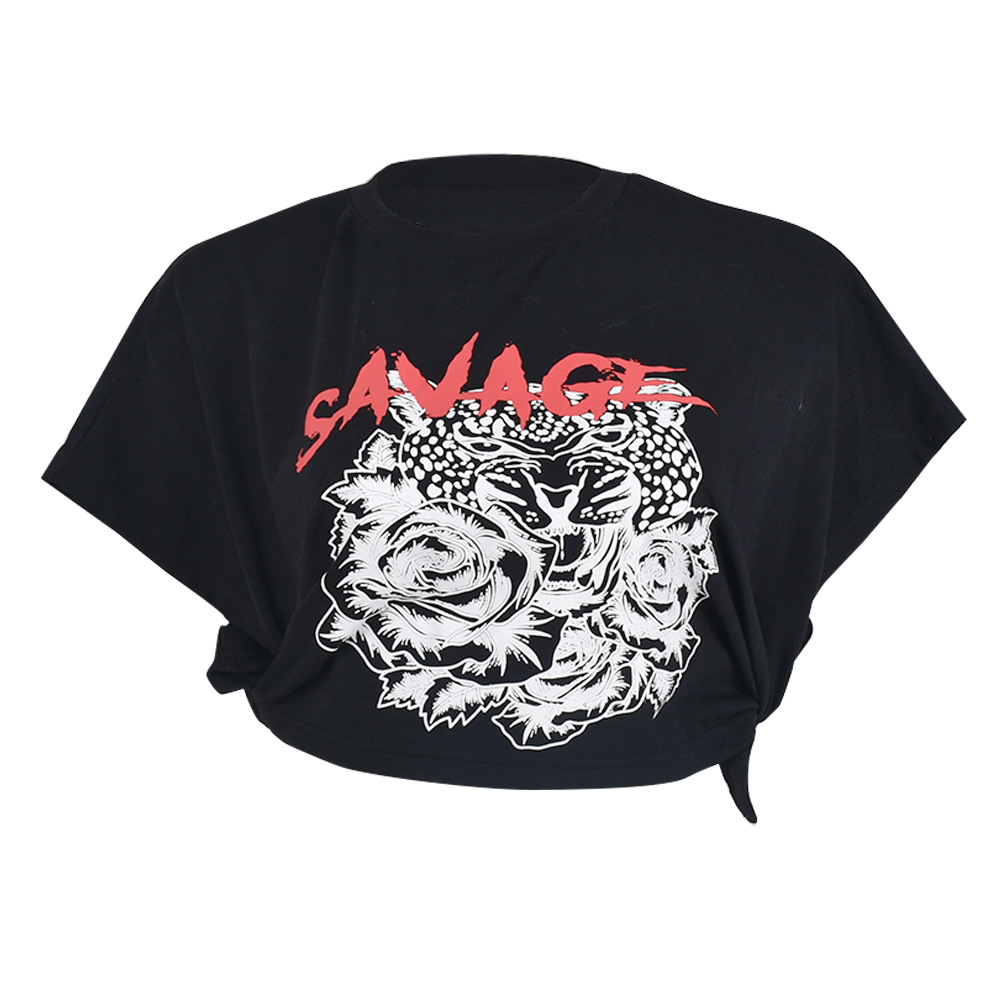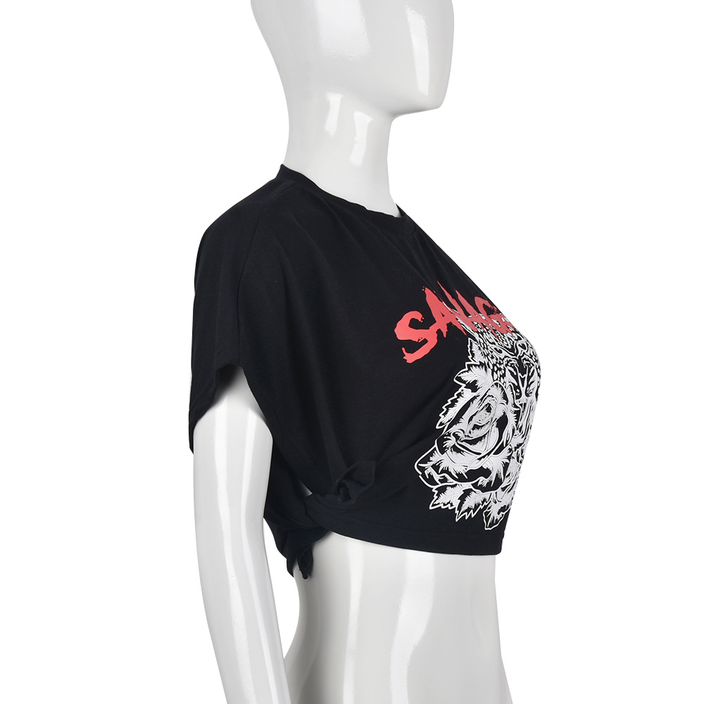 Spring Summer Women Clothing Sexy Short Sleeve Adhesive Cement Printed Short T shirt
