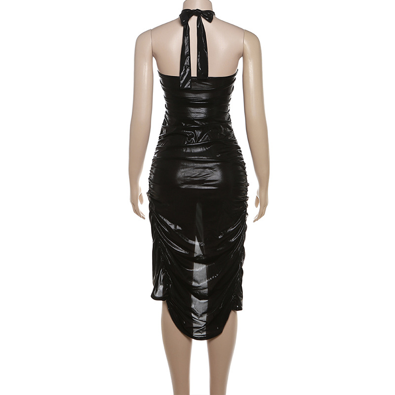 Spring Women Clothing Sexy Bright Color Halter Lace up Hollow Out Cutout Split Sheath Dress for Women
