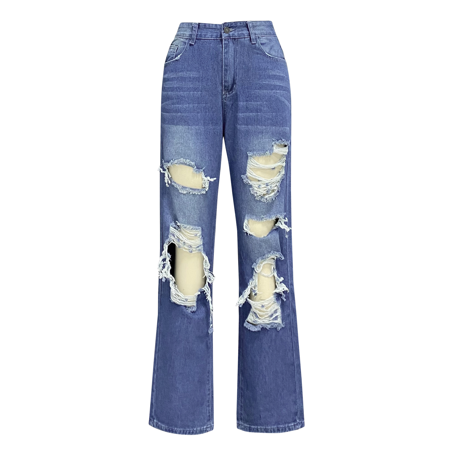 Straight Women Jeans High Waist Slimming Ripped Jeans