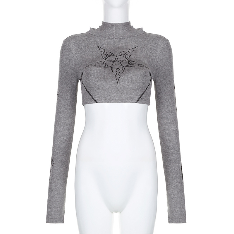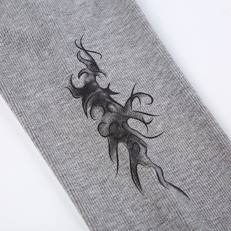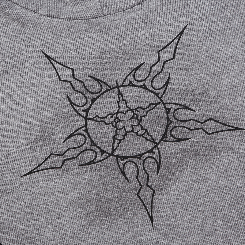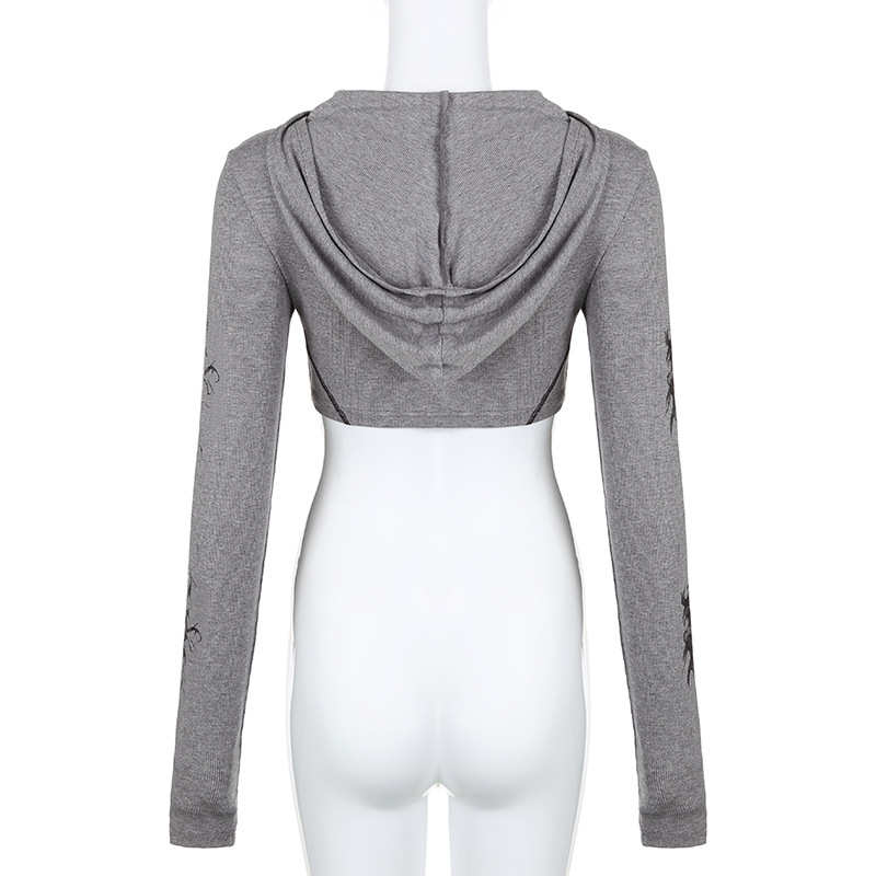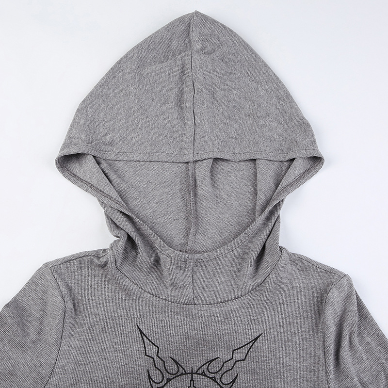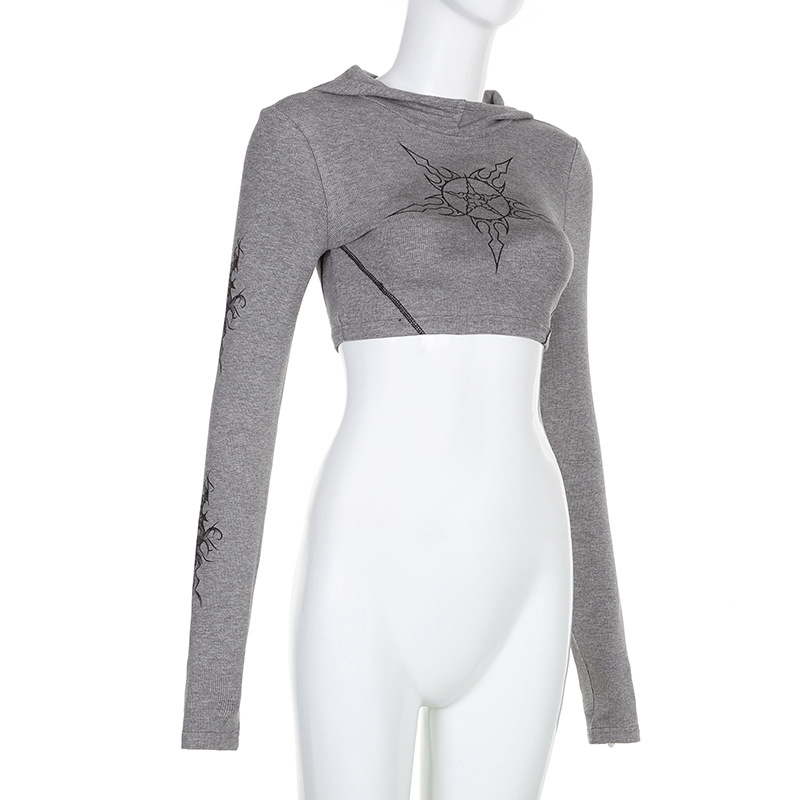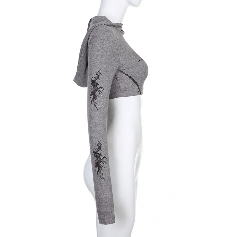 Street Cool Retro Abstract Print Long Sleeve T shirt Personality Hipster Short Hood Autumn Top