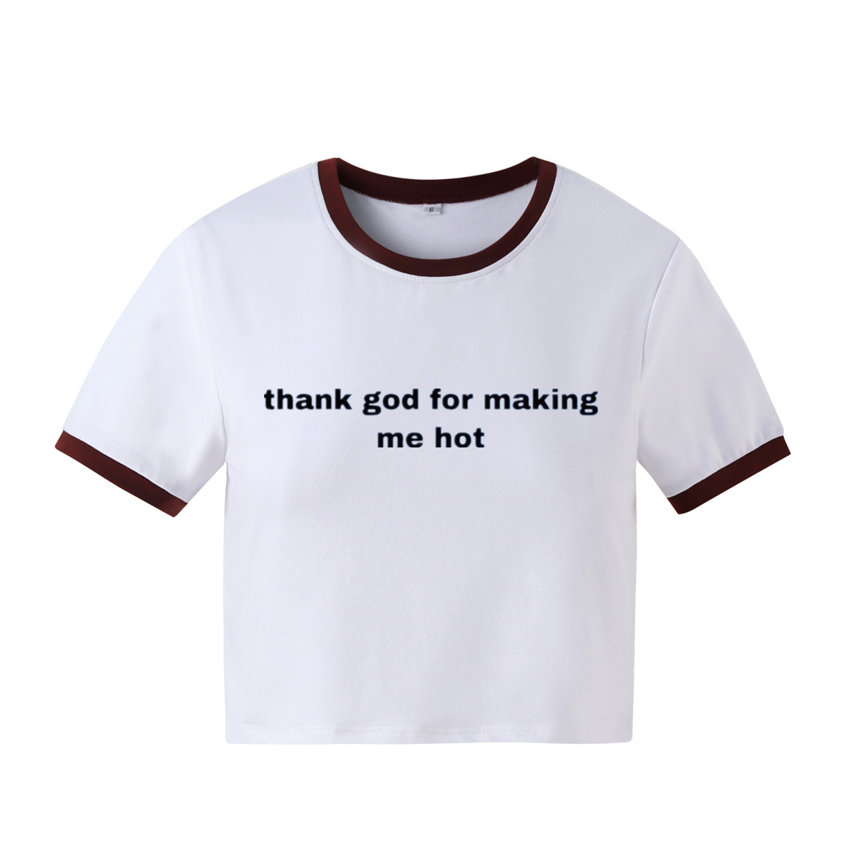 Street Trendy English Letter Graphic Printing Short Slim Fit Short Sleeve T Shirt Top Women