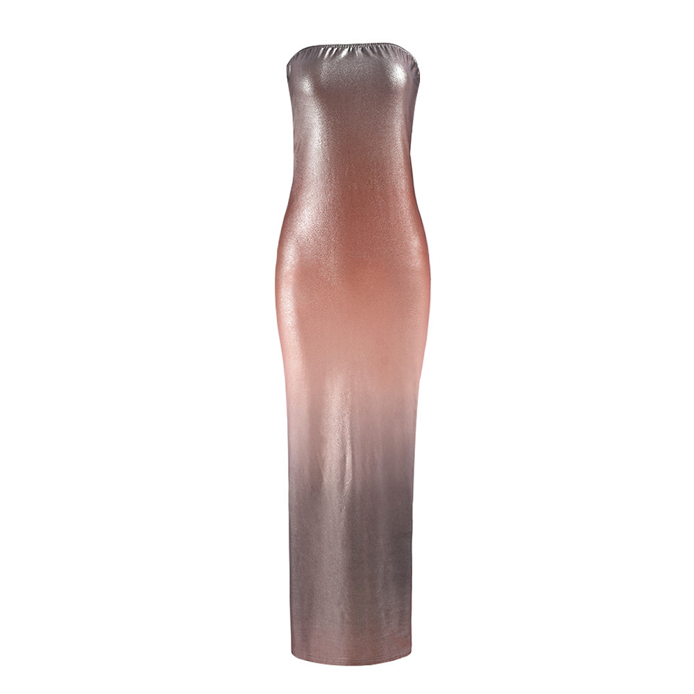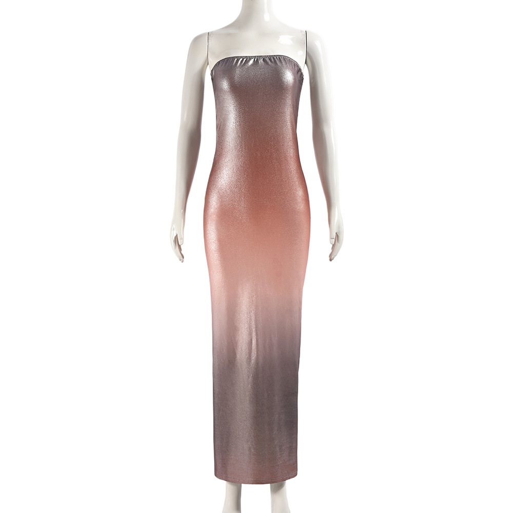Summer Backless Sleeveless Contrast Color Gradient Color Tube Top Dress Women