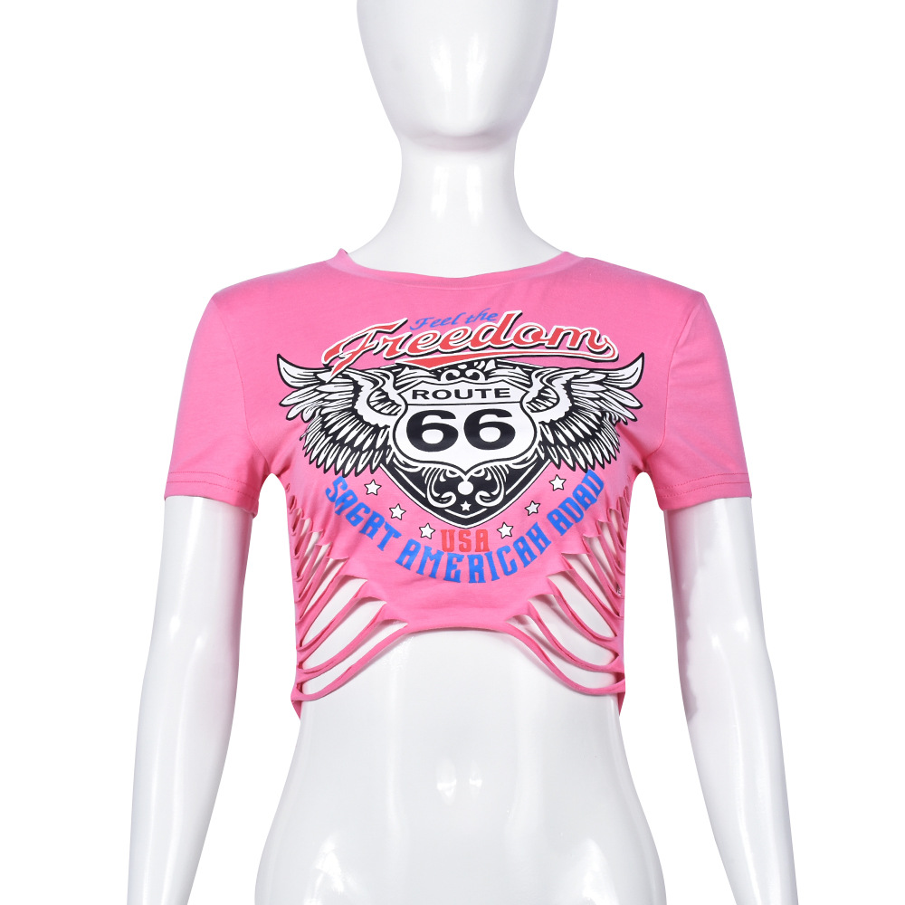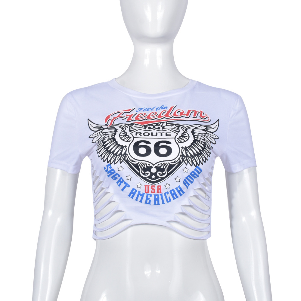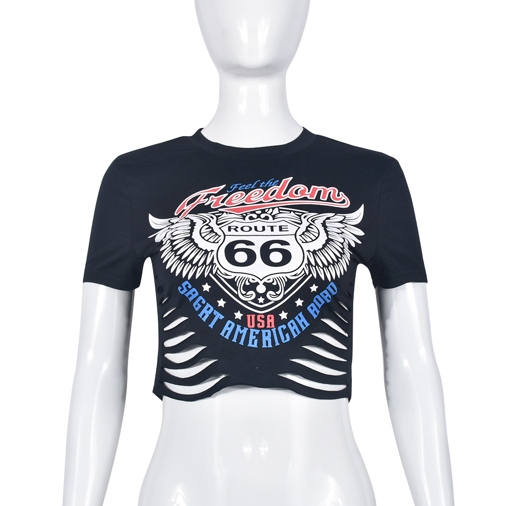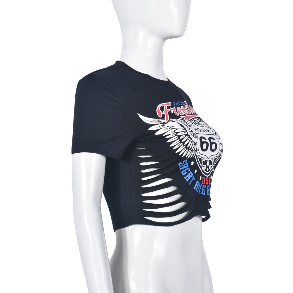 Summer round Neck Cropped Women T shirt Tight Ripped Short Sleeve Top