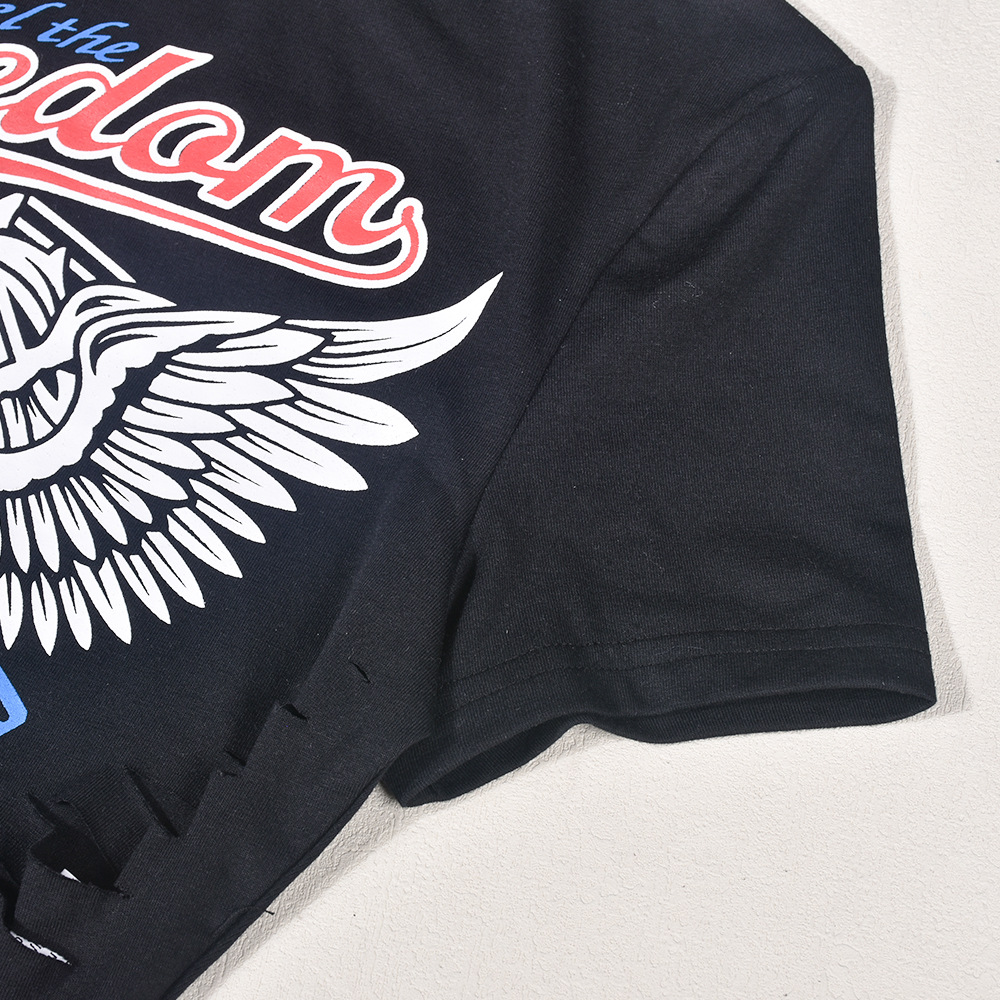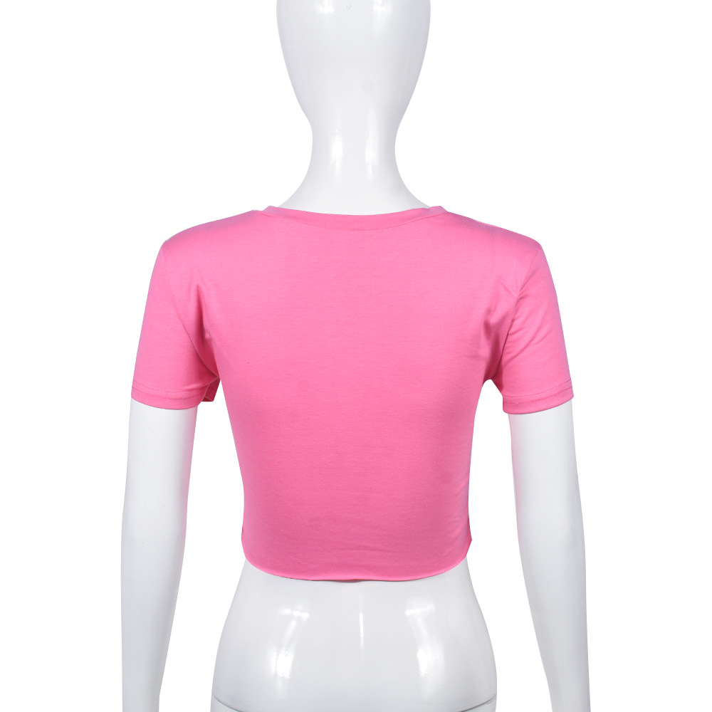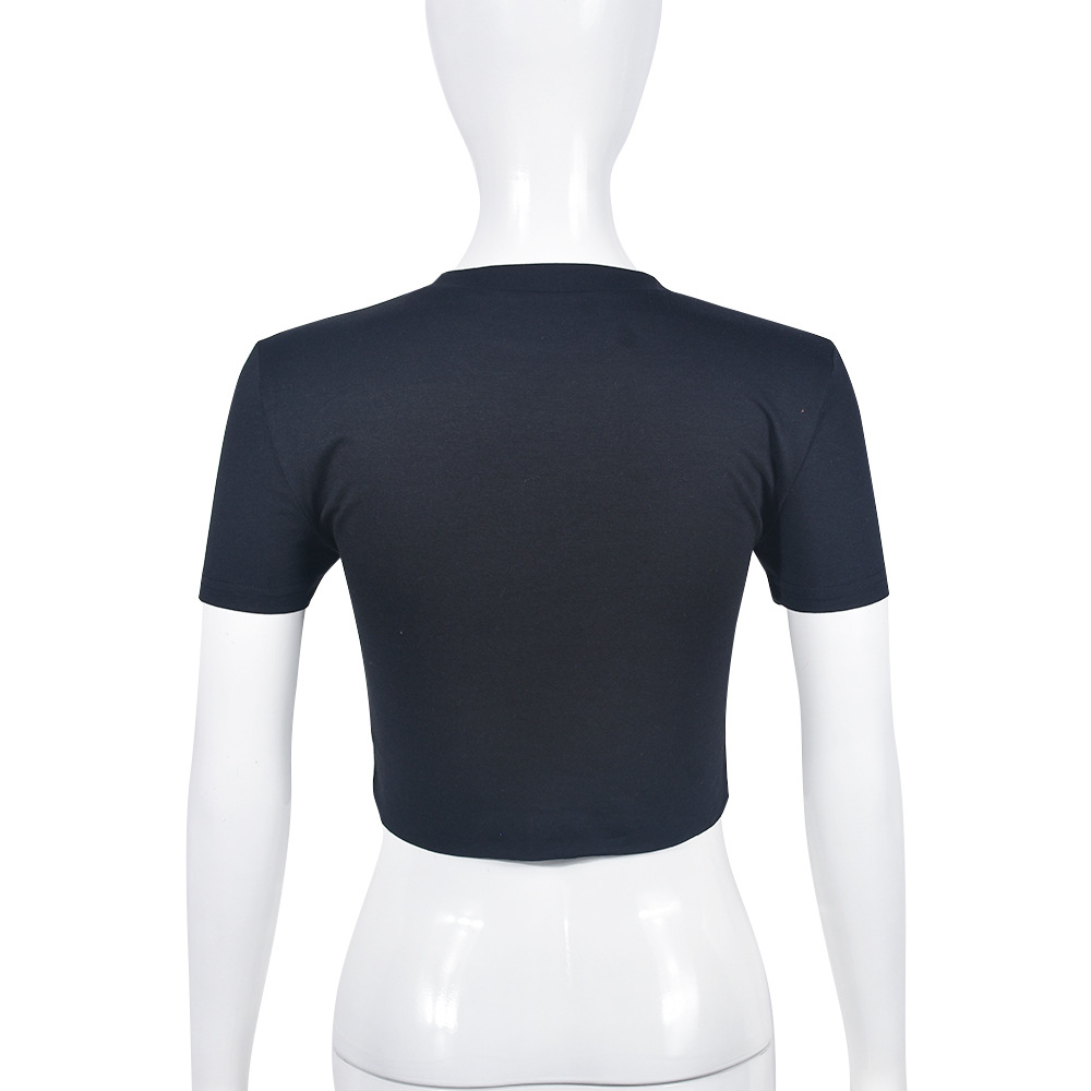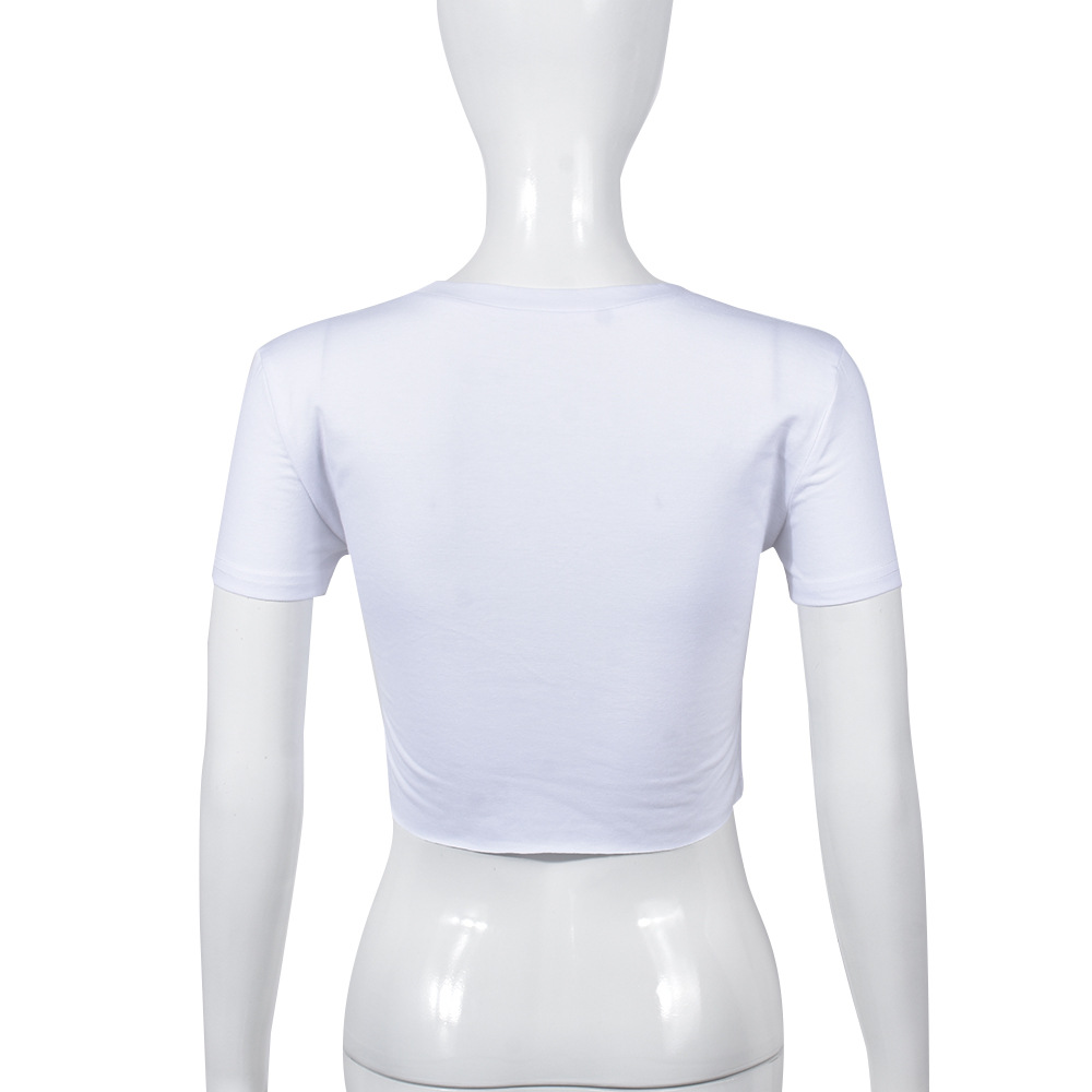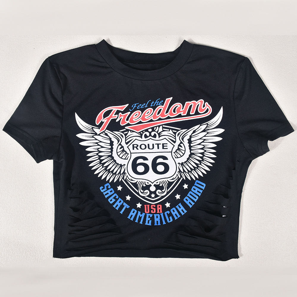 Summer round Neck Cropped Women T shirt Tight Ripped Short Sleeve Top