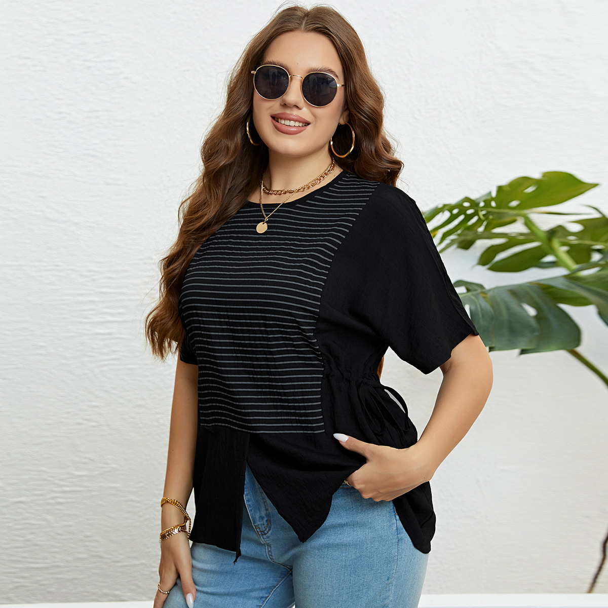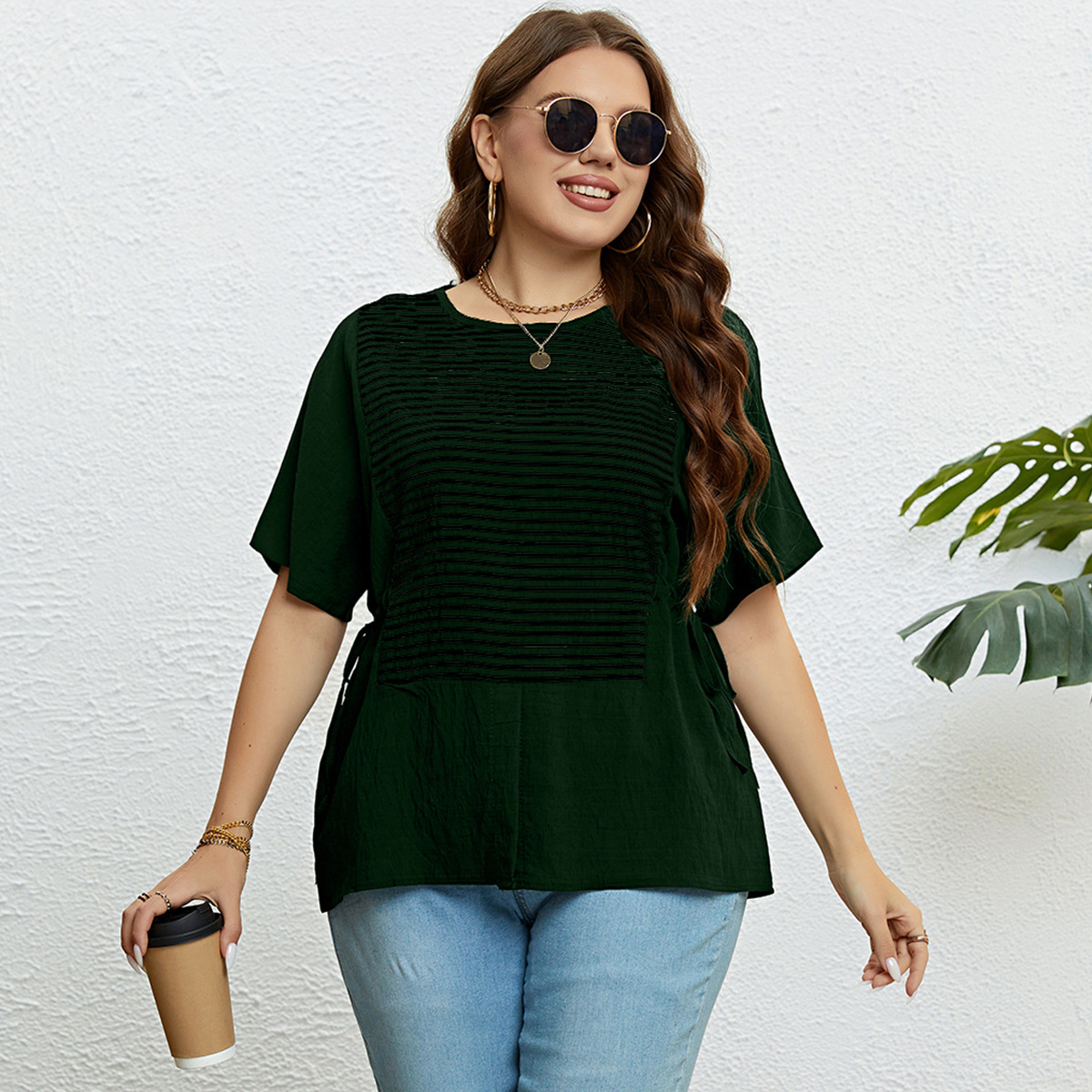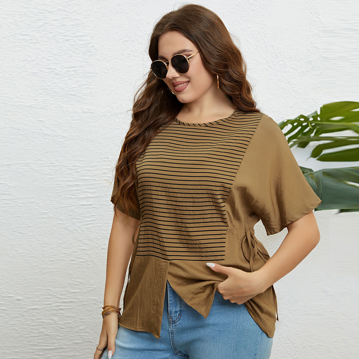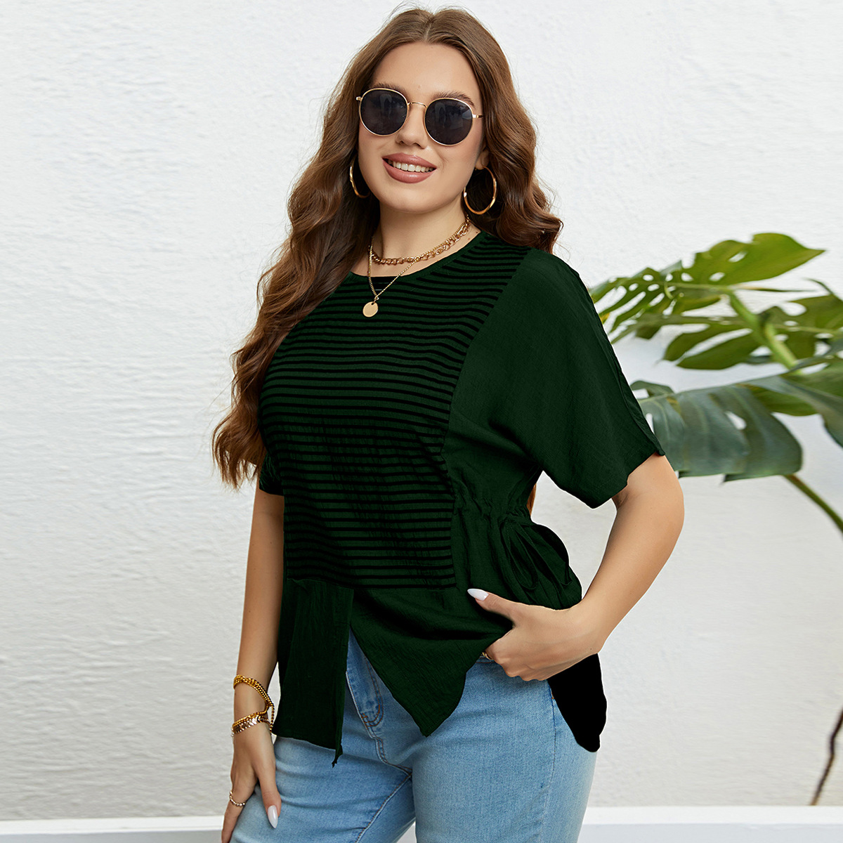 Summer round Neck Plus Size Girl Short Sleeve Slit Hemline Top