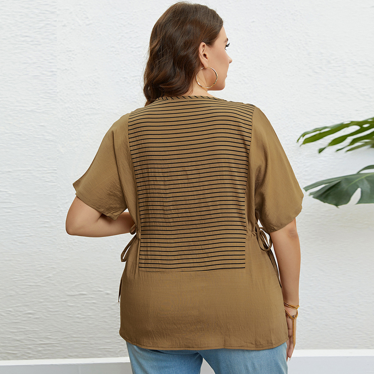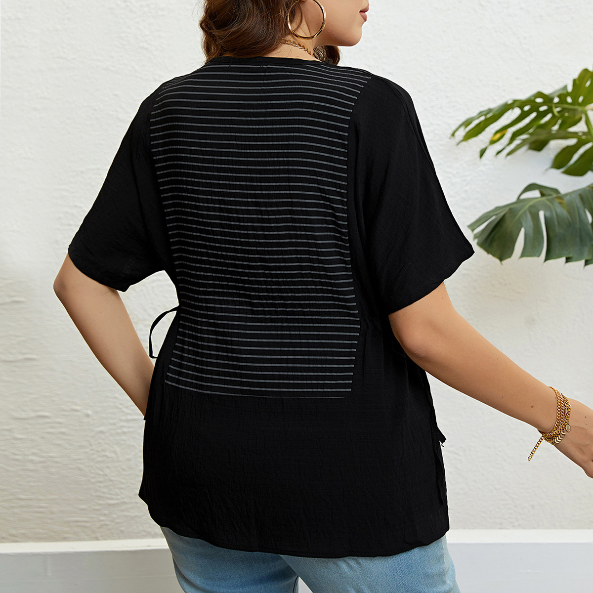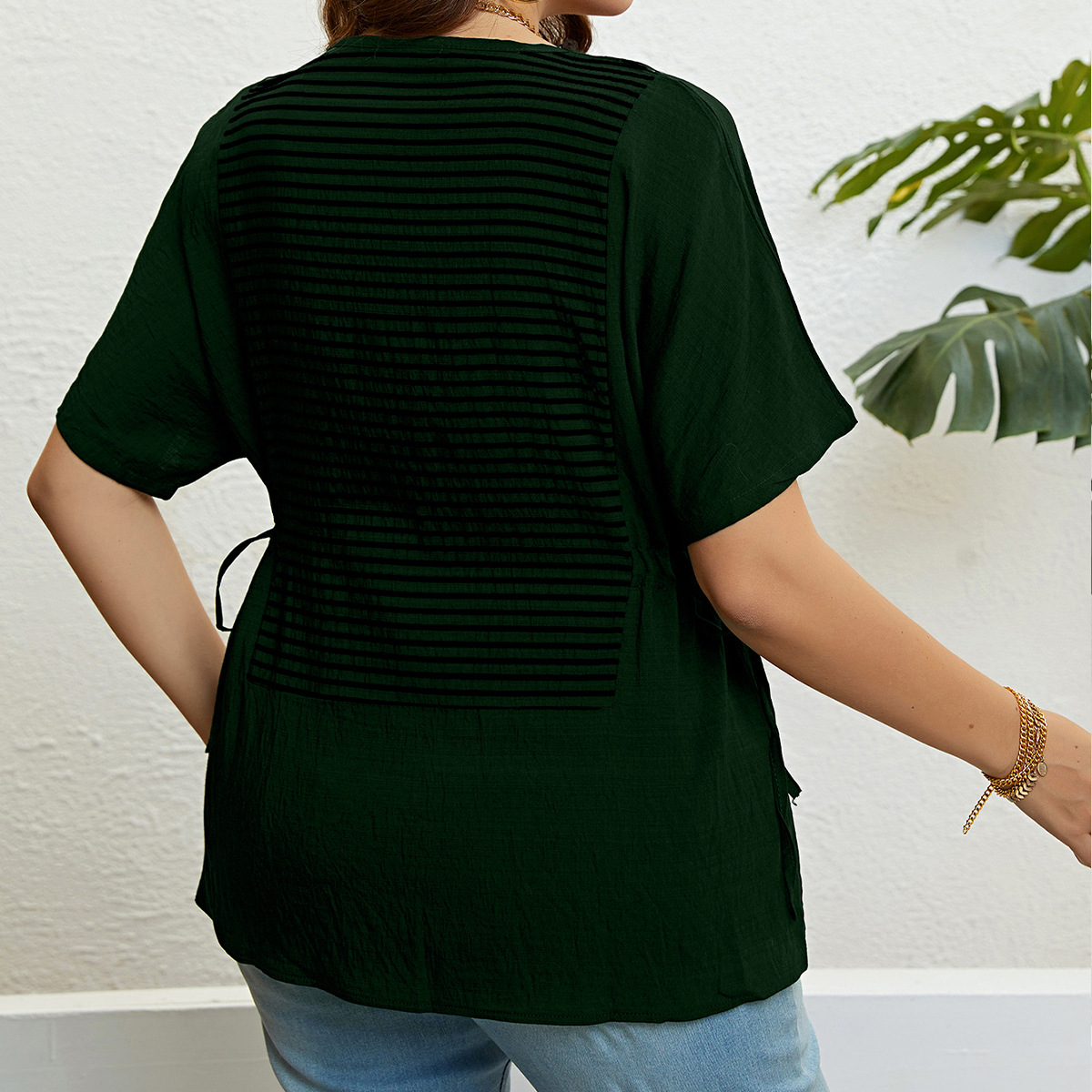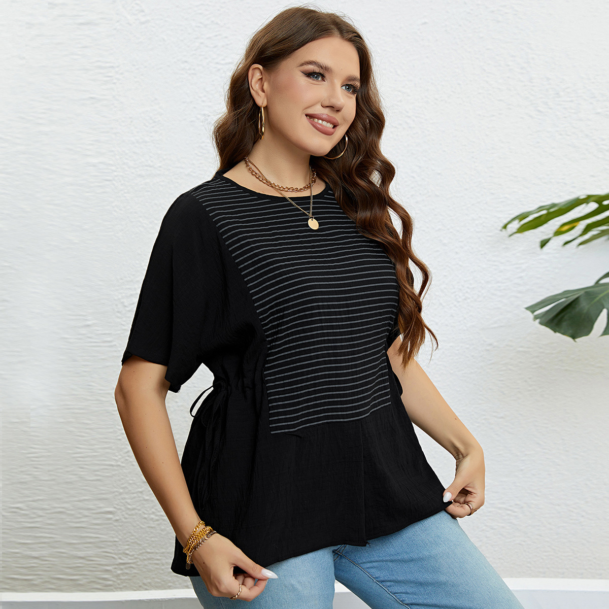 Summer round Neck Plus Size Girl Short Sleeve Slit Hemline Top