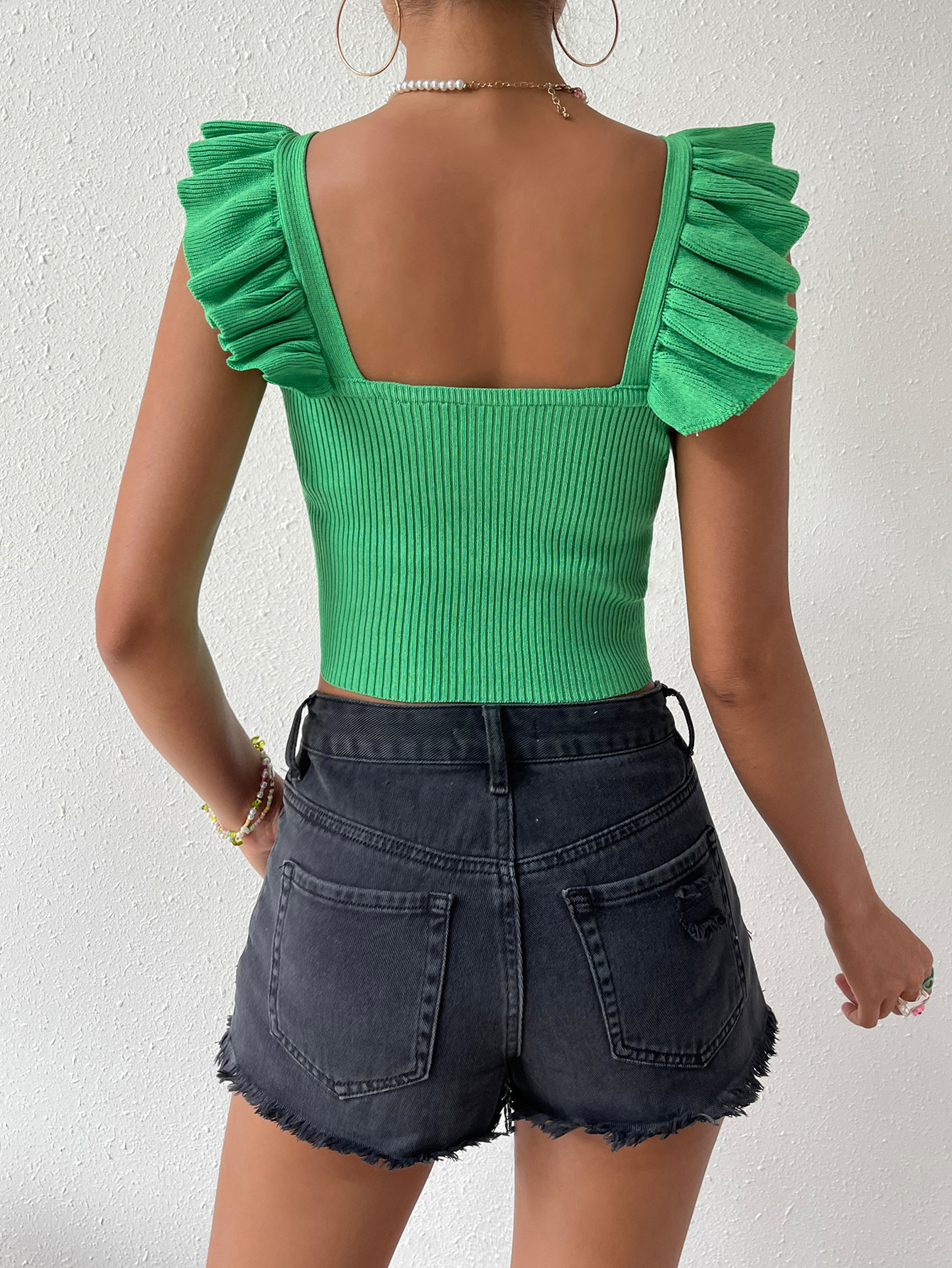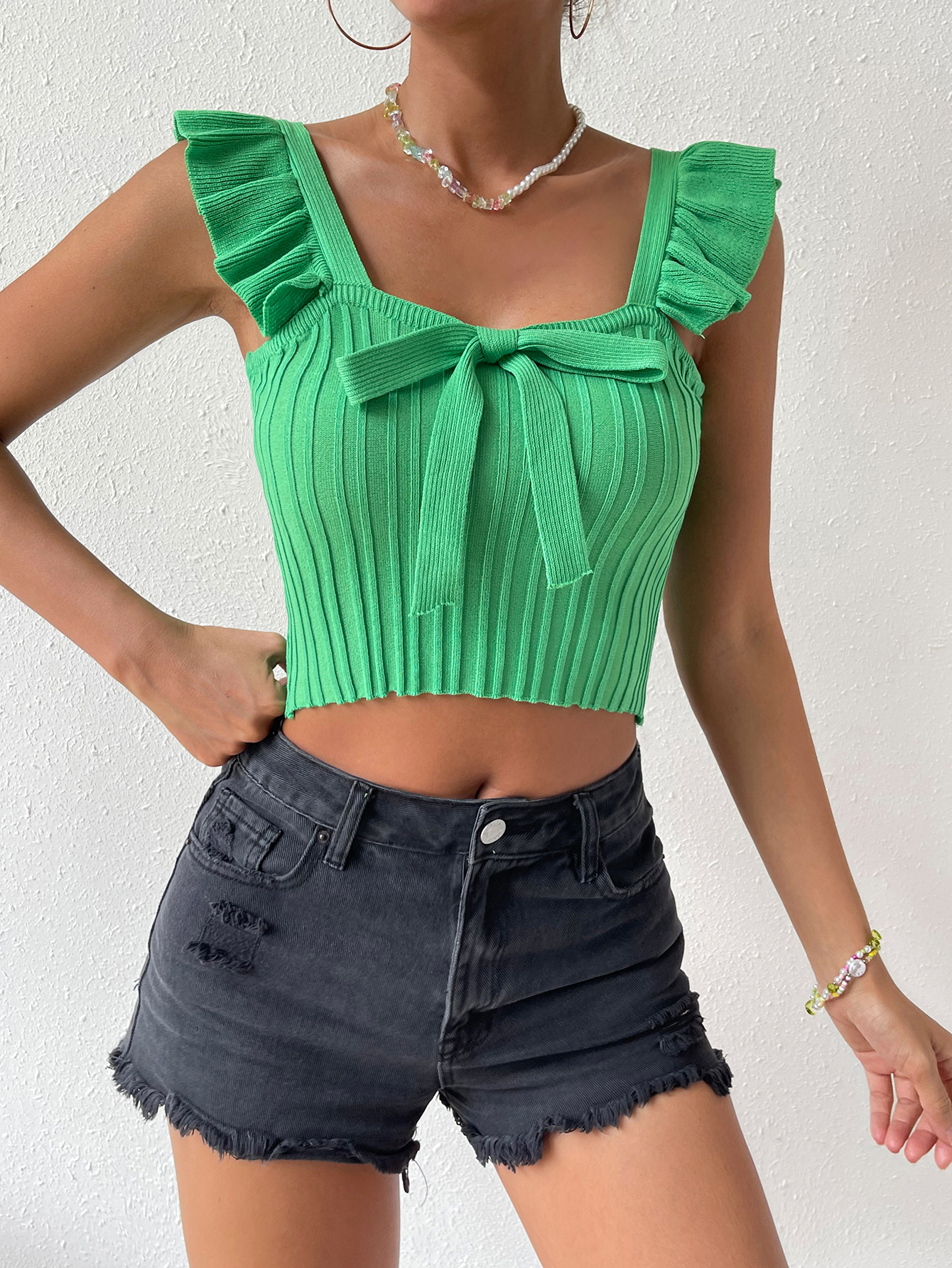 Summer Ruffled Flying Sleeve Bow Cropped T shirt Slim Top