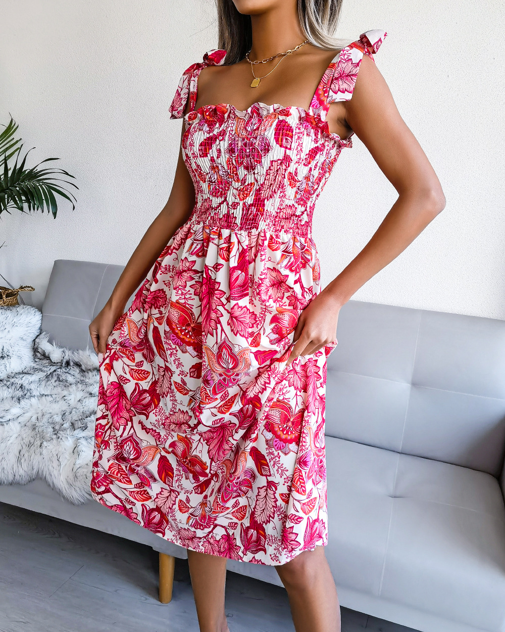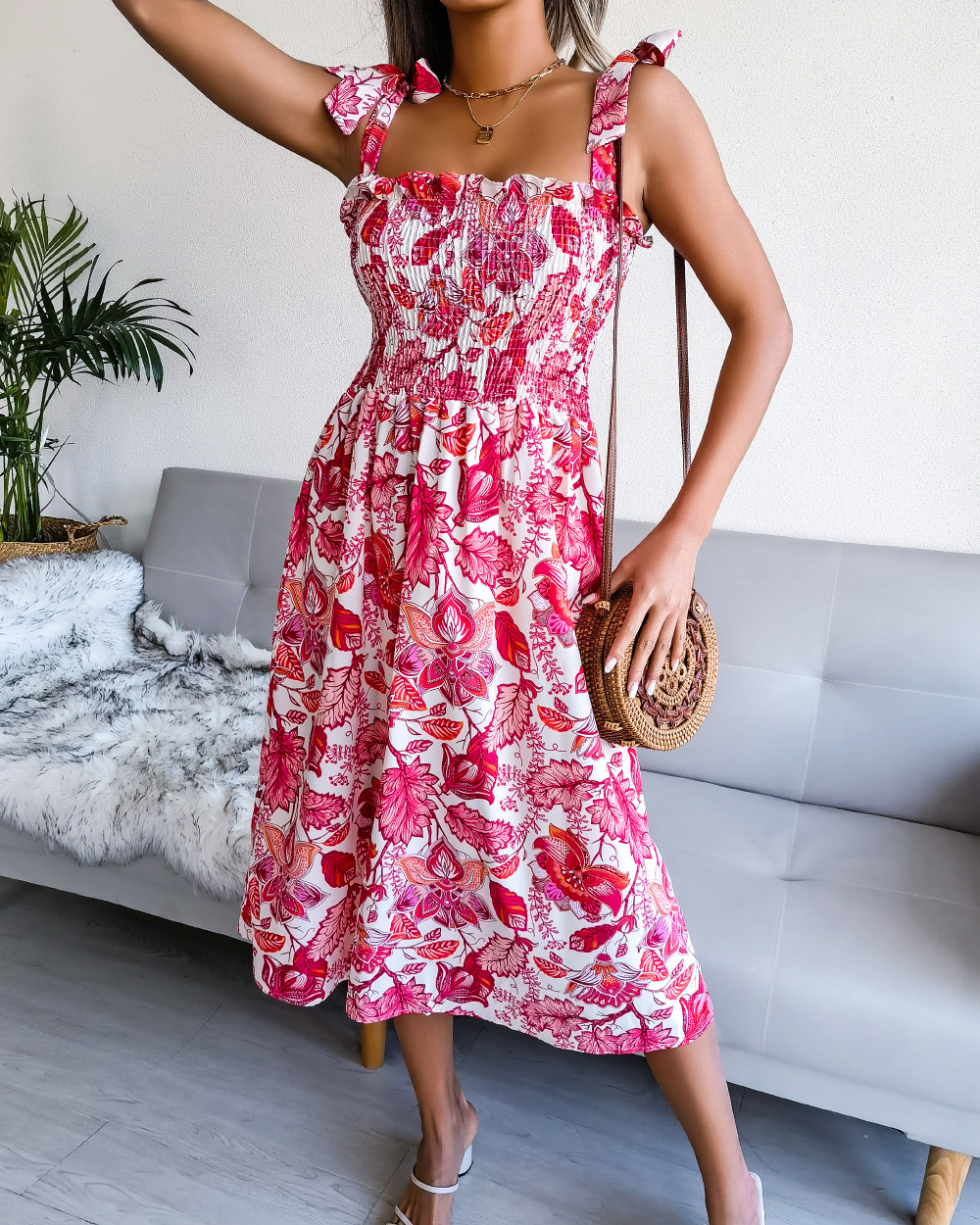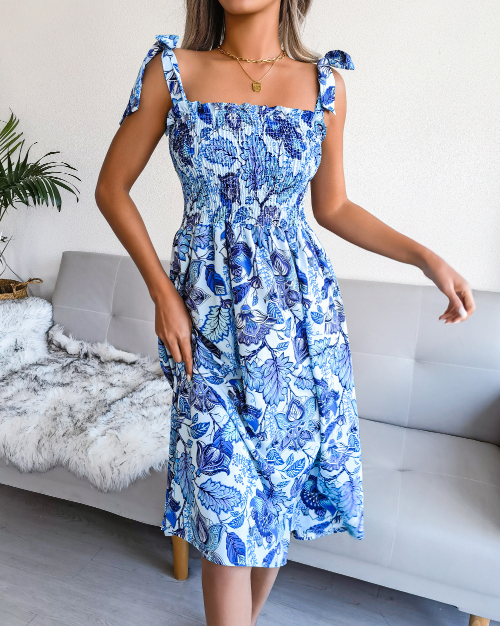Sundress Spring Summer Sleeveless Strap Printing Midi Dress Holiday Dress Women Clothing